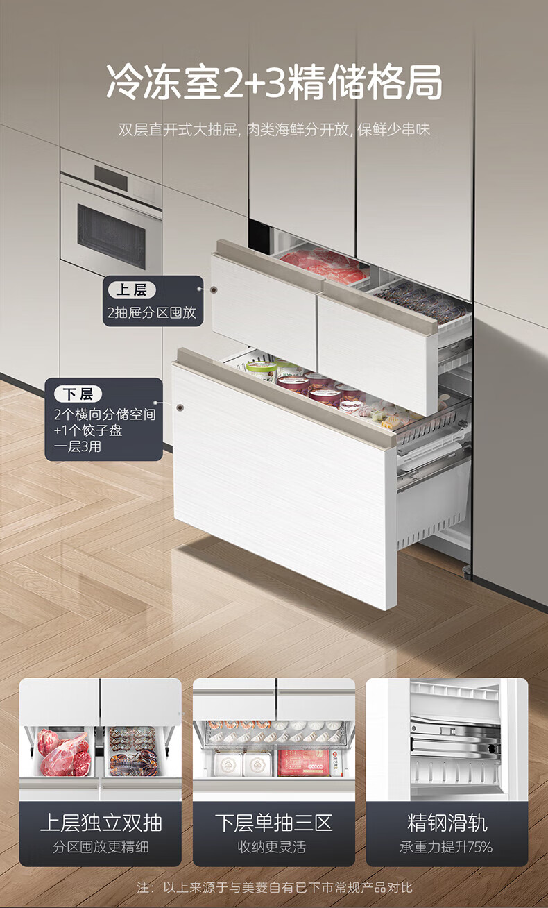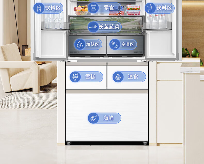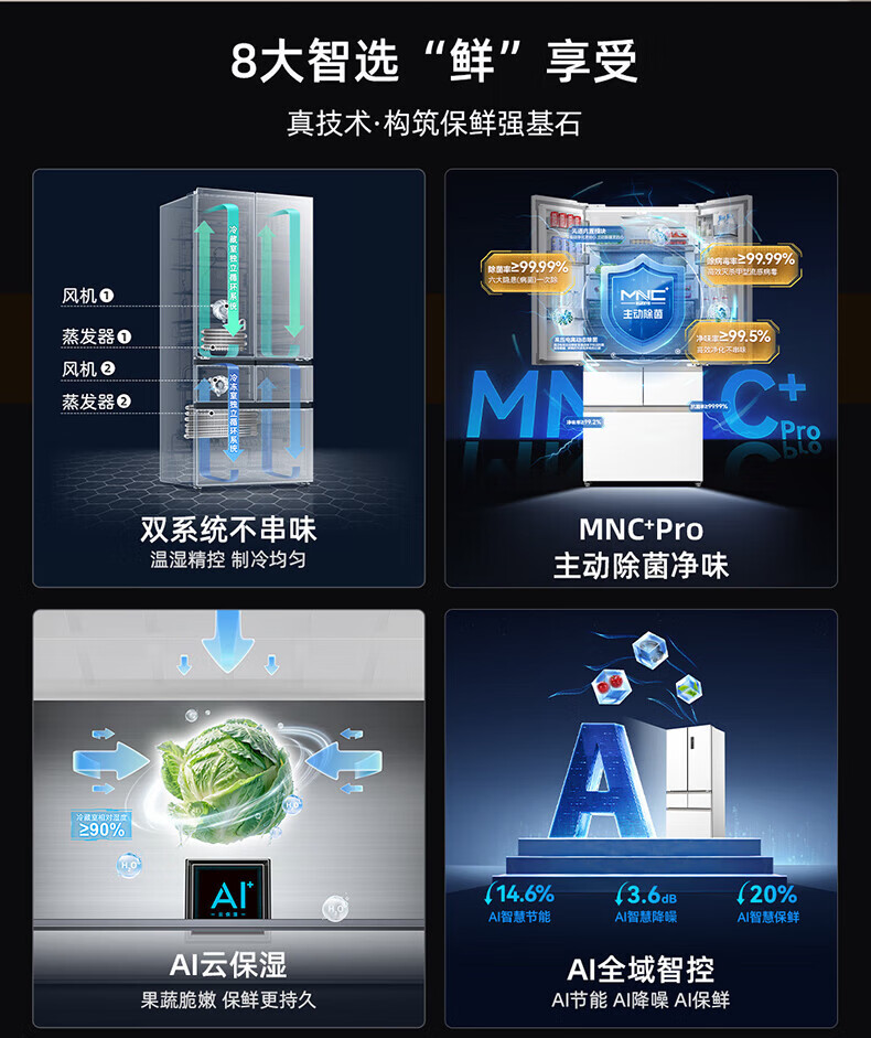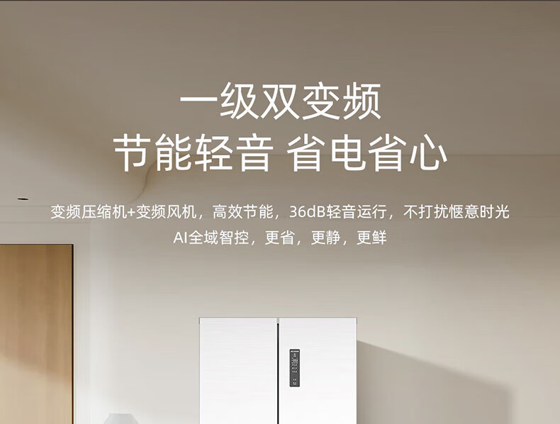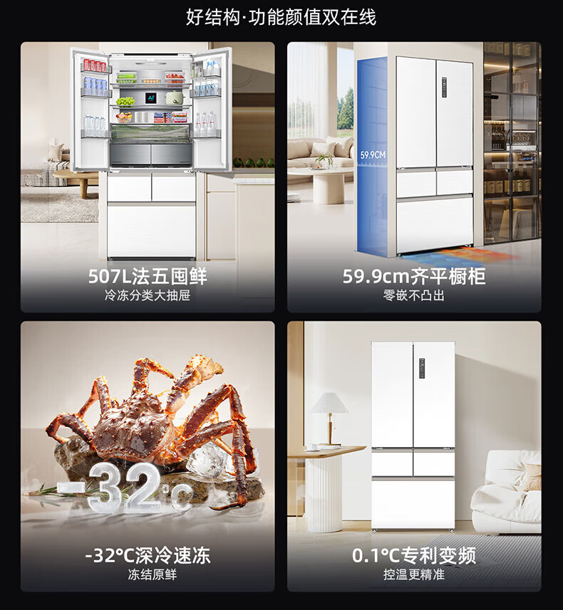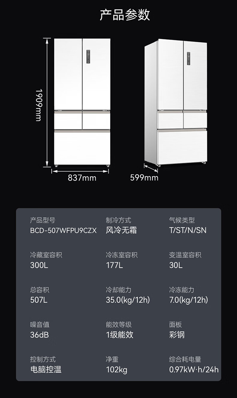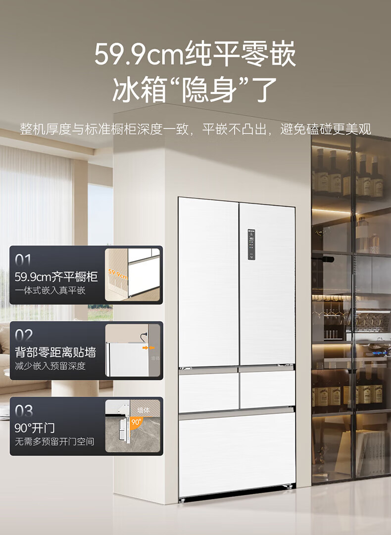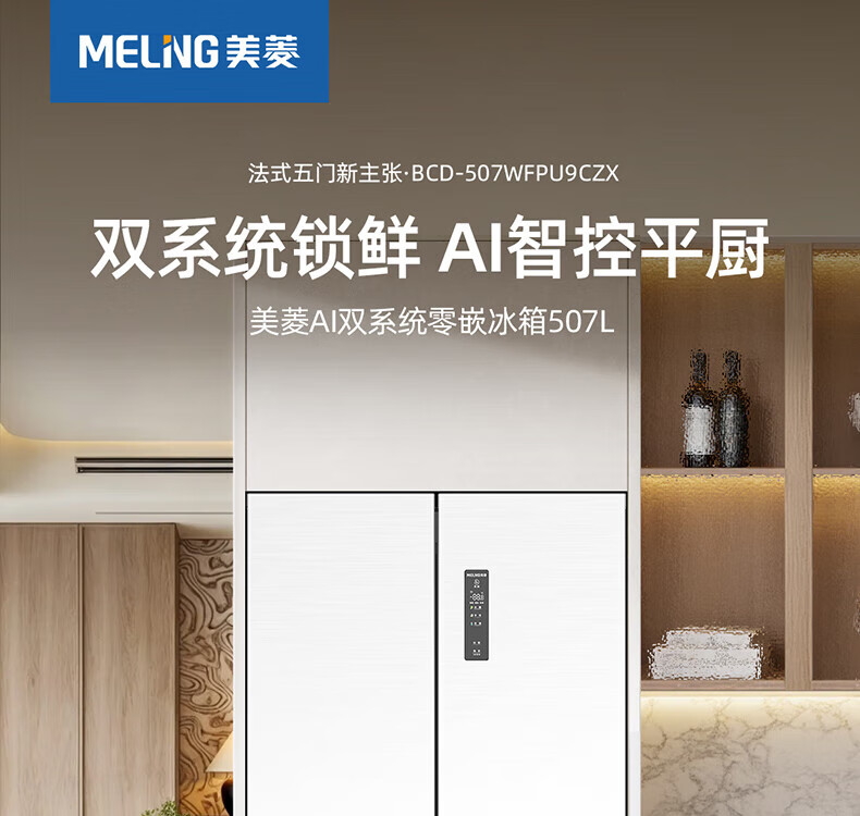Meiling MELNG AI smart 507-liter French door ultra-thin zero-level embedded dual-system dual-cycle active sterilization and deodorization first-class air-cooled refrigerator BCD-507WFPU9CZX white