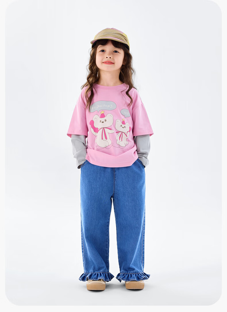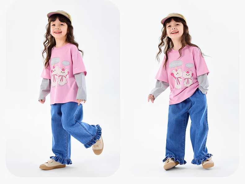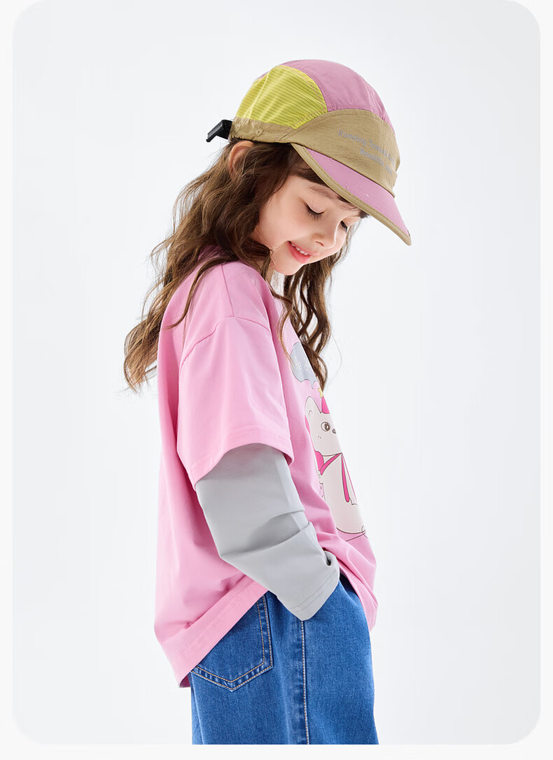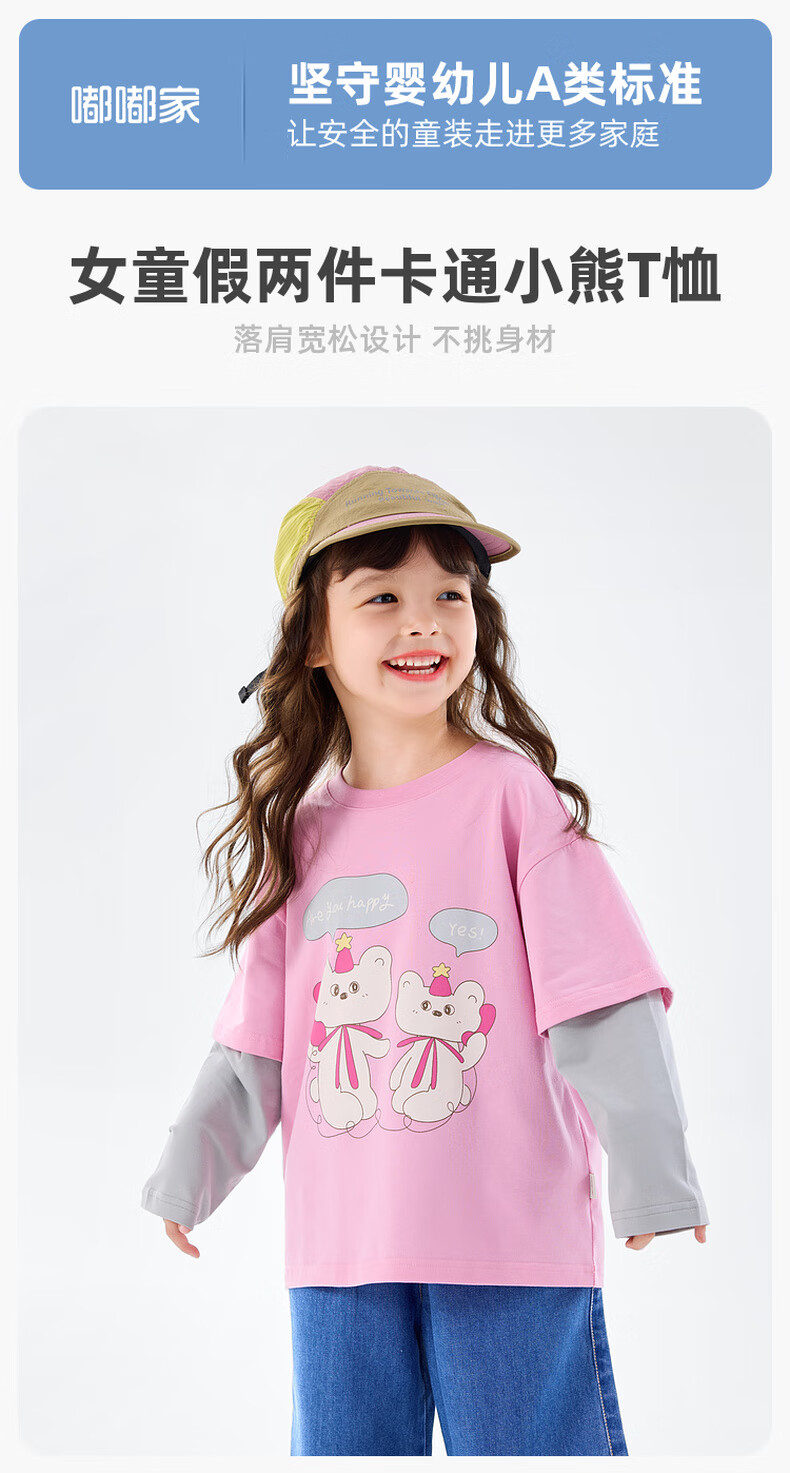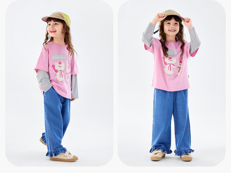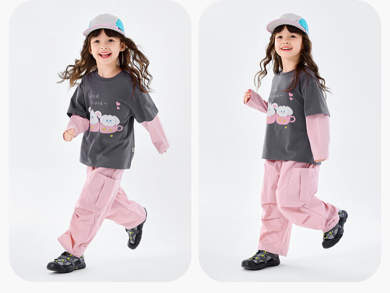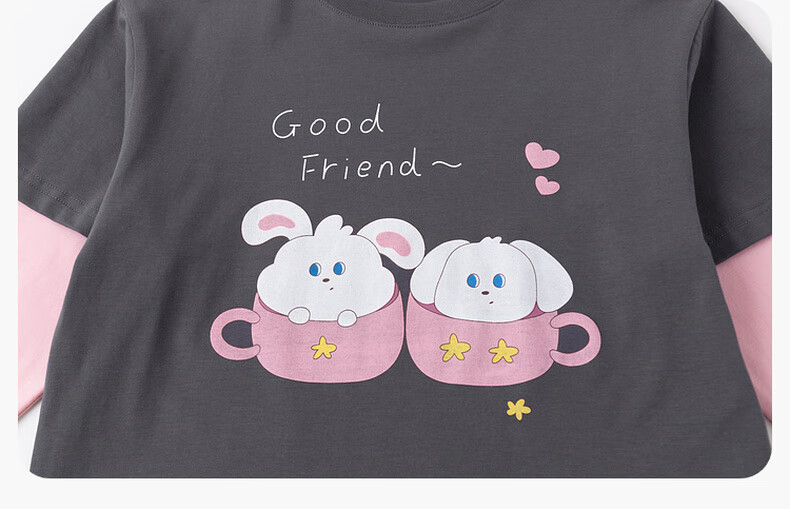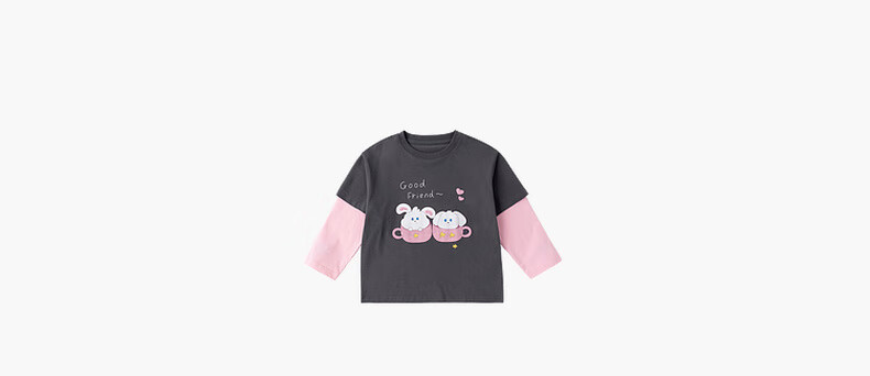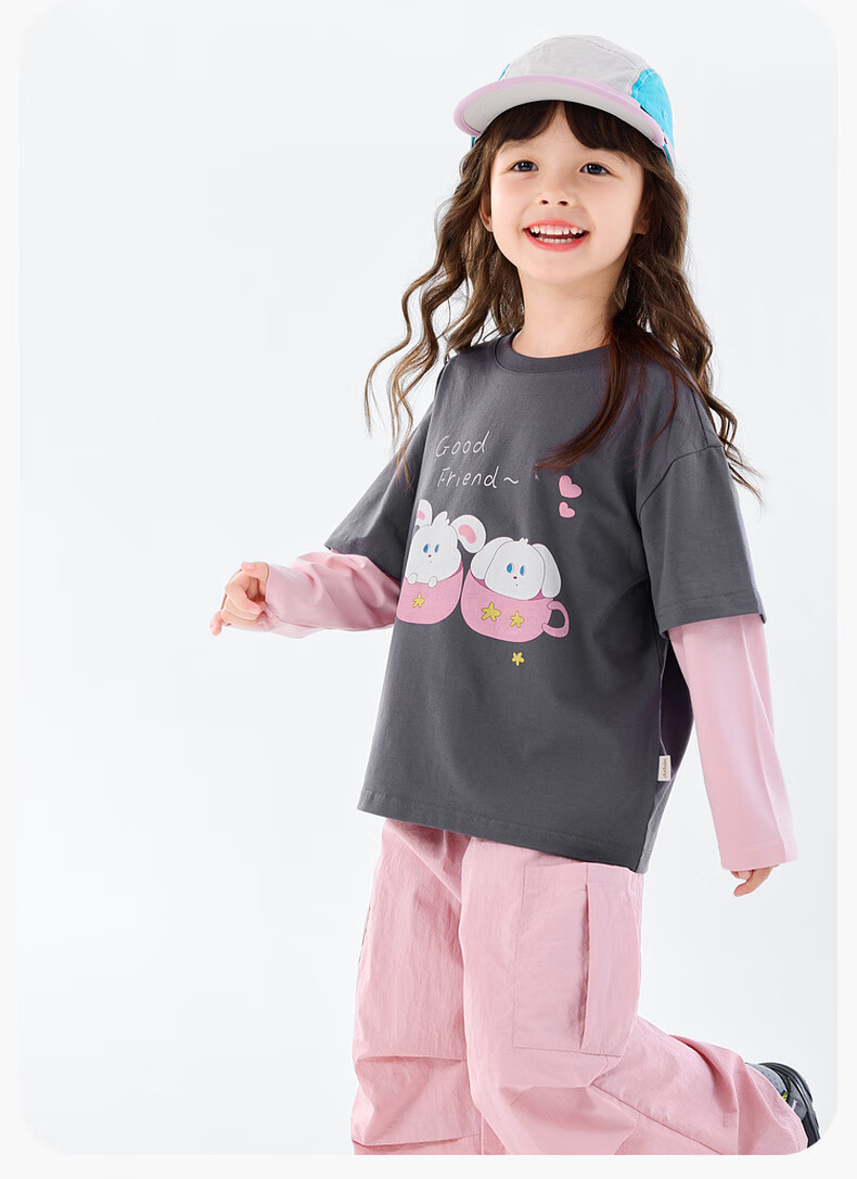 Dudujia 7A antibacterial girls fake two-piece T-shirt spring clothing children's skin-friendly long-sleeved tops for girls casual versatile children's clothing cloud gray 80