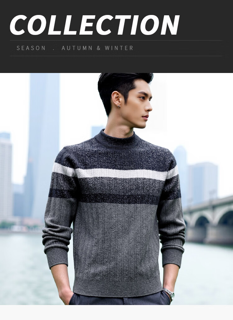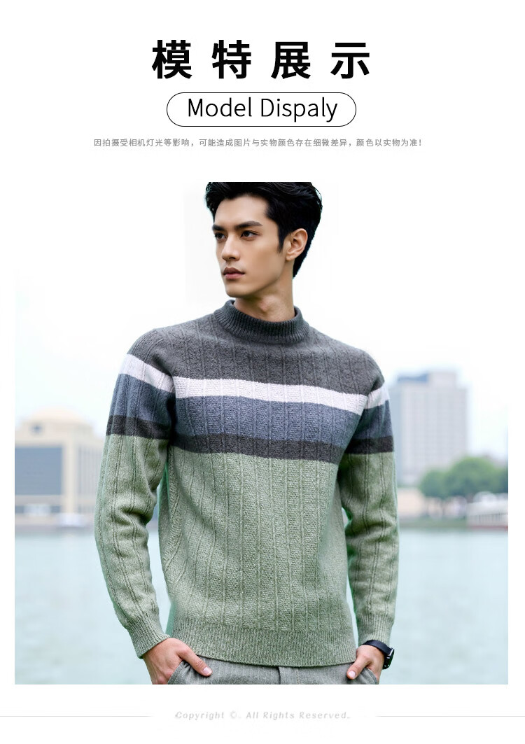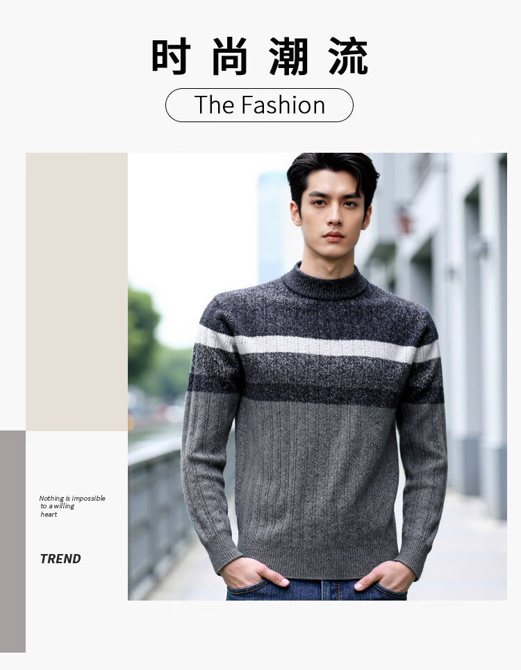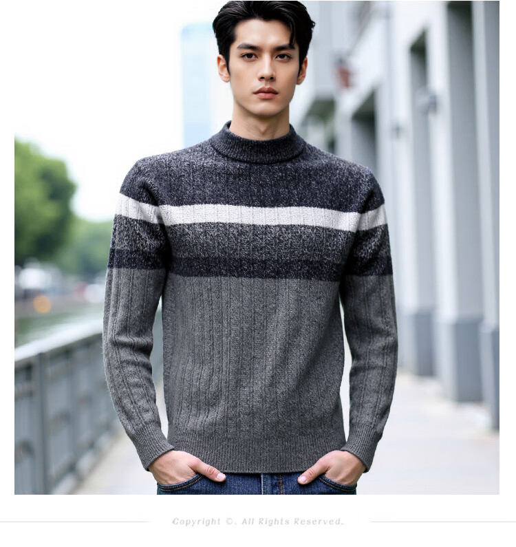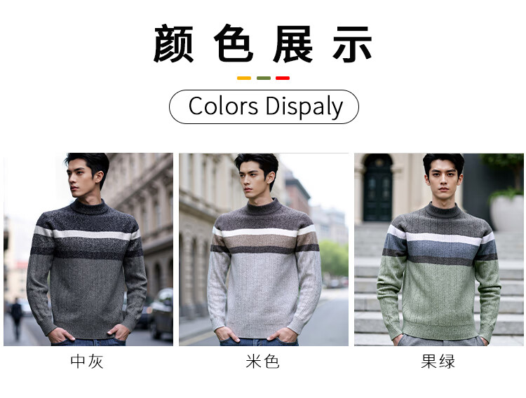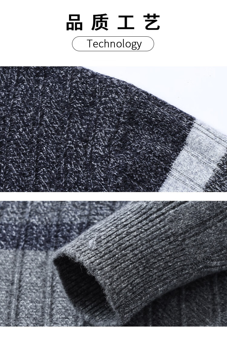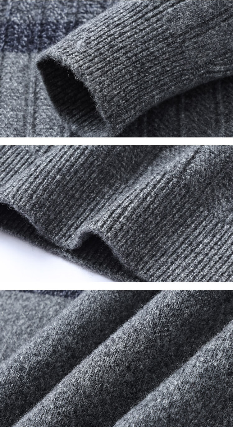 Hengyuanxiang 100% pure wool sweater winter warm thickened men's sweater 2025 new style striped 100% pure wool bottoming sweater trendy beige M 105