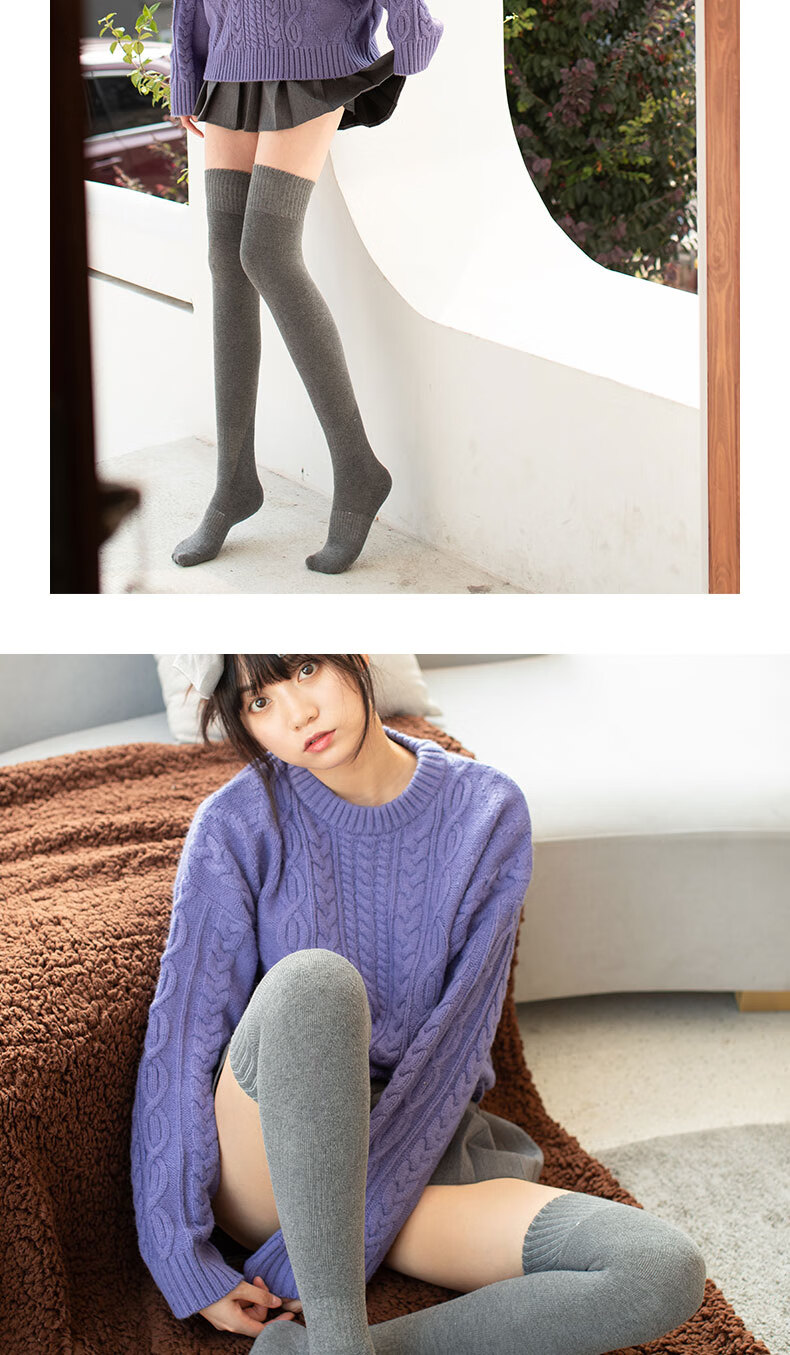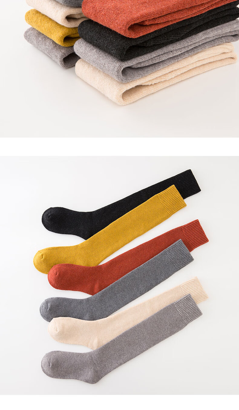 Shi Socks Calf Socks Women's Long-Tube Autumn and Winter Knee-High Cotton Socks Thickened and Warm Black Tall Terry Socks Solid Color Solid Color Terry Calf Socks 33cm Camel 1 Pair One Size
