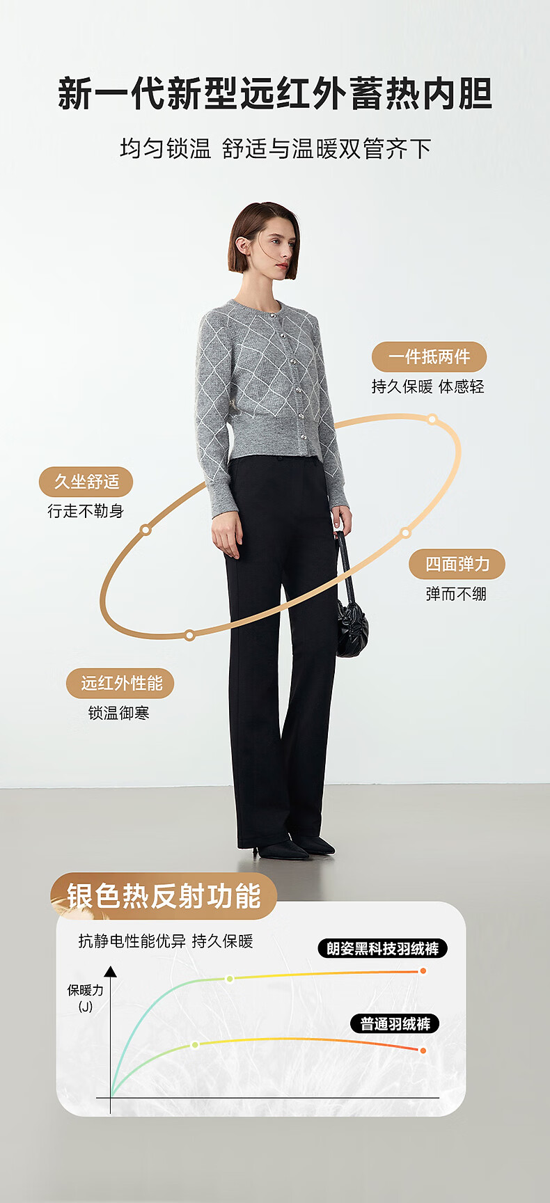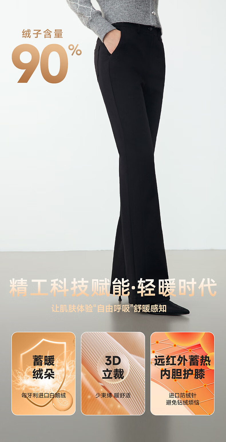Langzi Holdobagi white goose down design plus velvet warm pants for women winter new down pants black 2 S