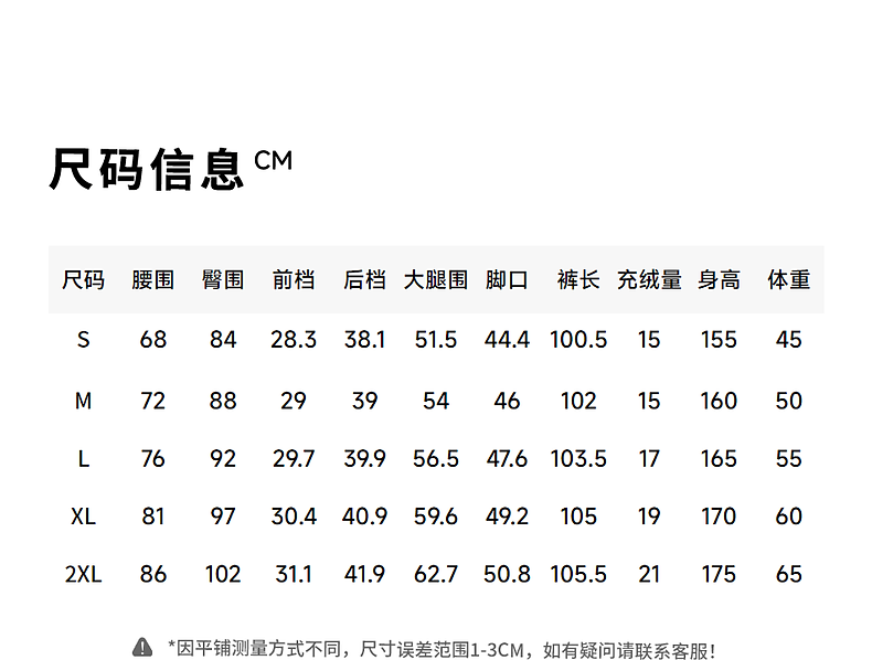 Outseam (cm) 99 cm 101.5 cm 104 cm 106.5 cm 109 cm
