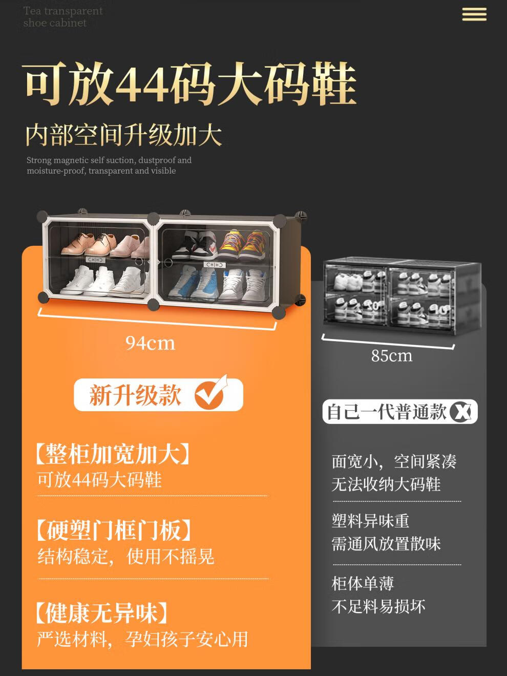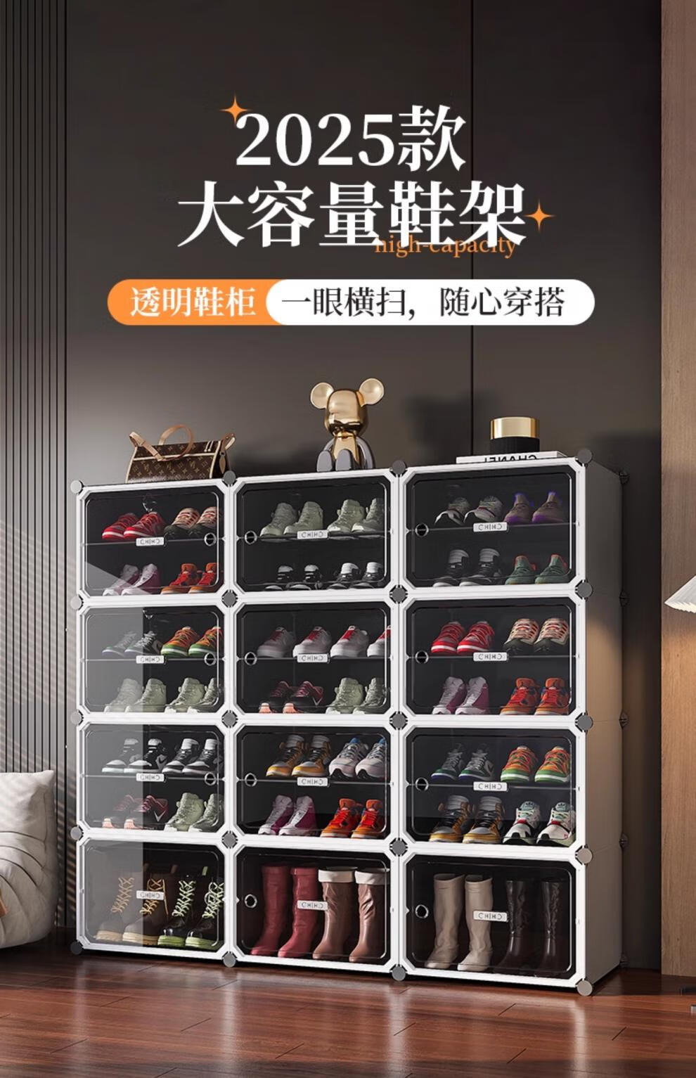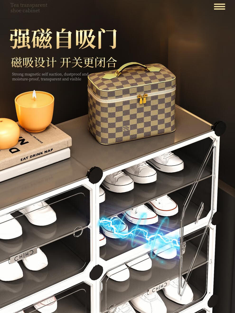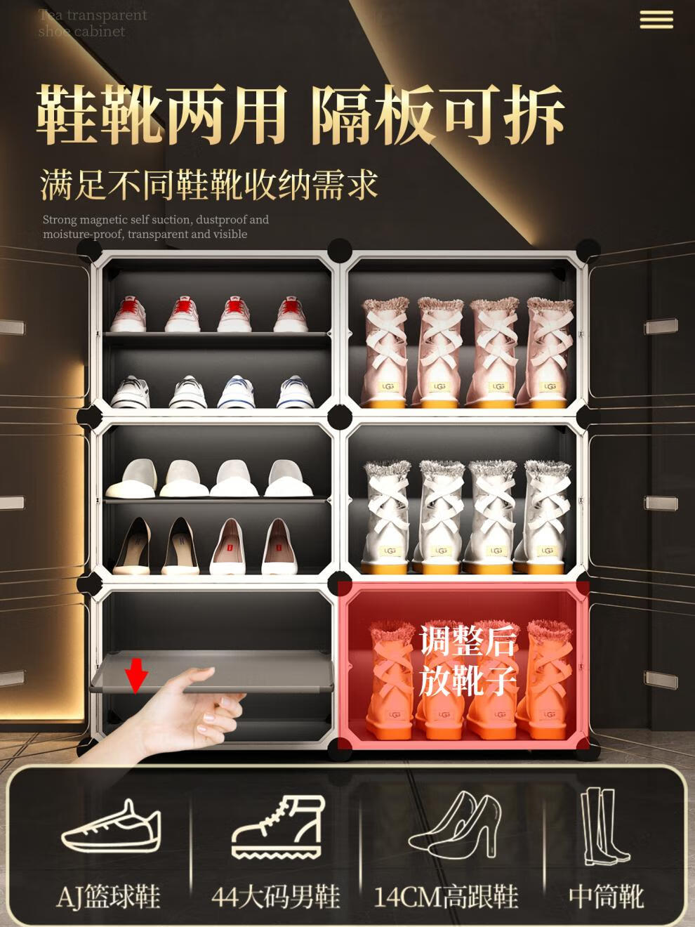 Shoe box storage shoe cabinet 2025 new storage artifact at the entrance to the home large-capacity multi-layer shoe shelf transparent magnetic high-transparent door thickened 1 row 6 layers - about 12 pairs can be placed for boots