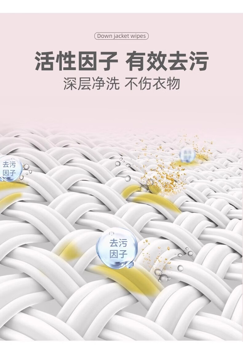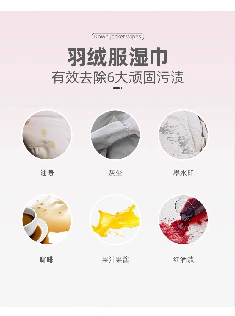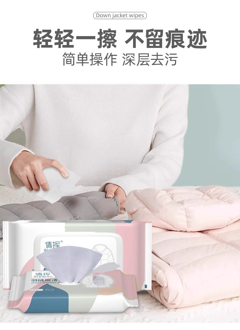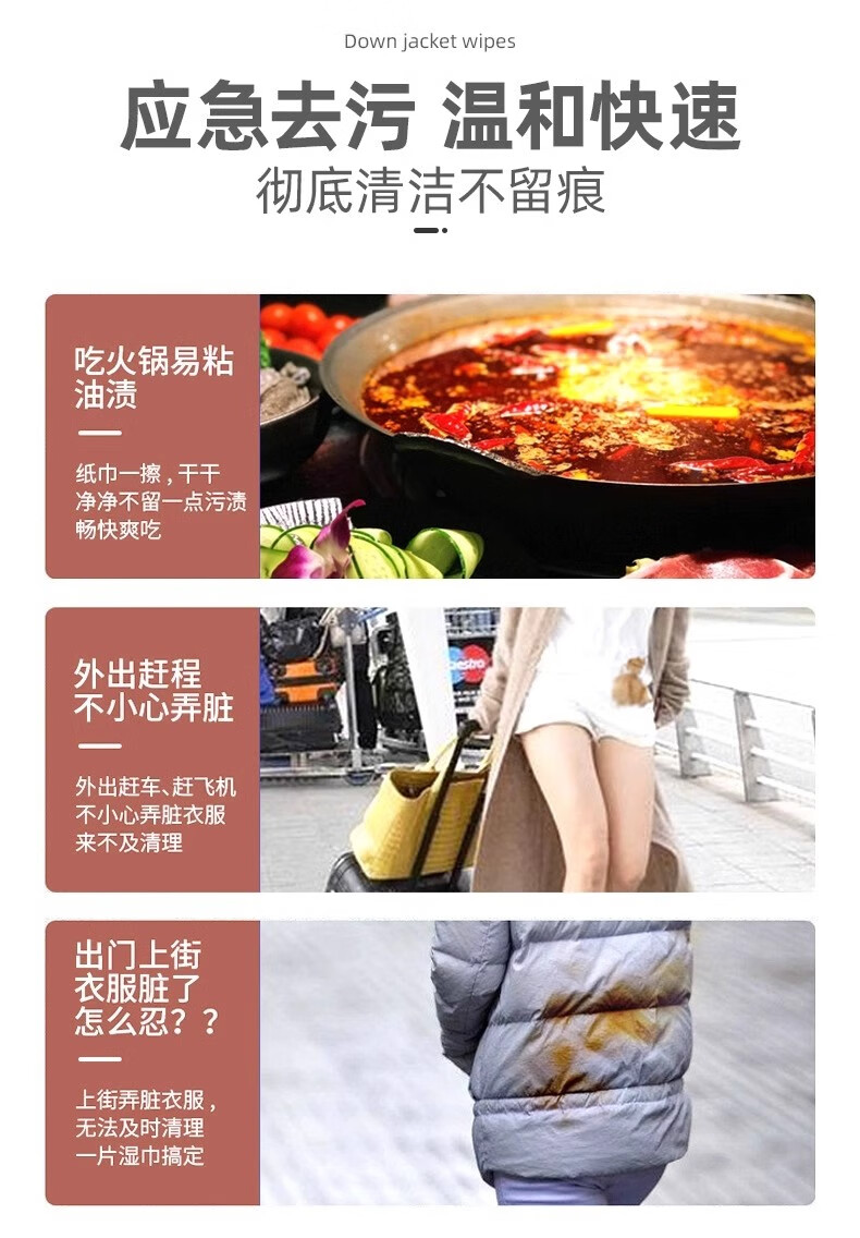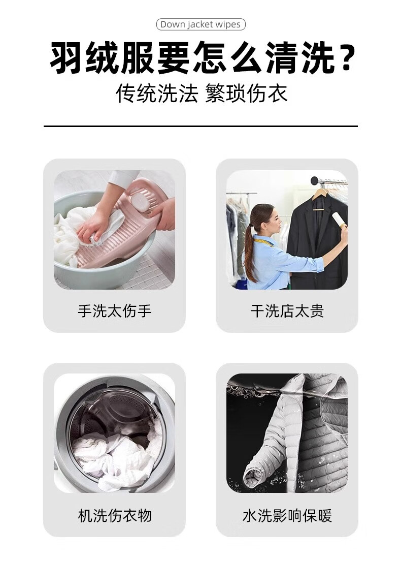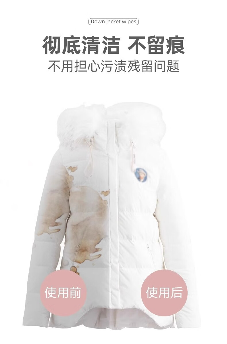 Travel accessories, down jacket cleaning wipes, dry cleaning agent, wash-free, powerful removal of oil stains, clothing, home use, down wipes, 1 package