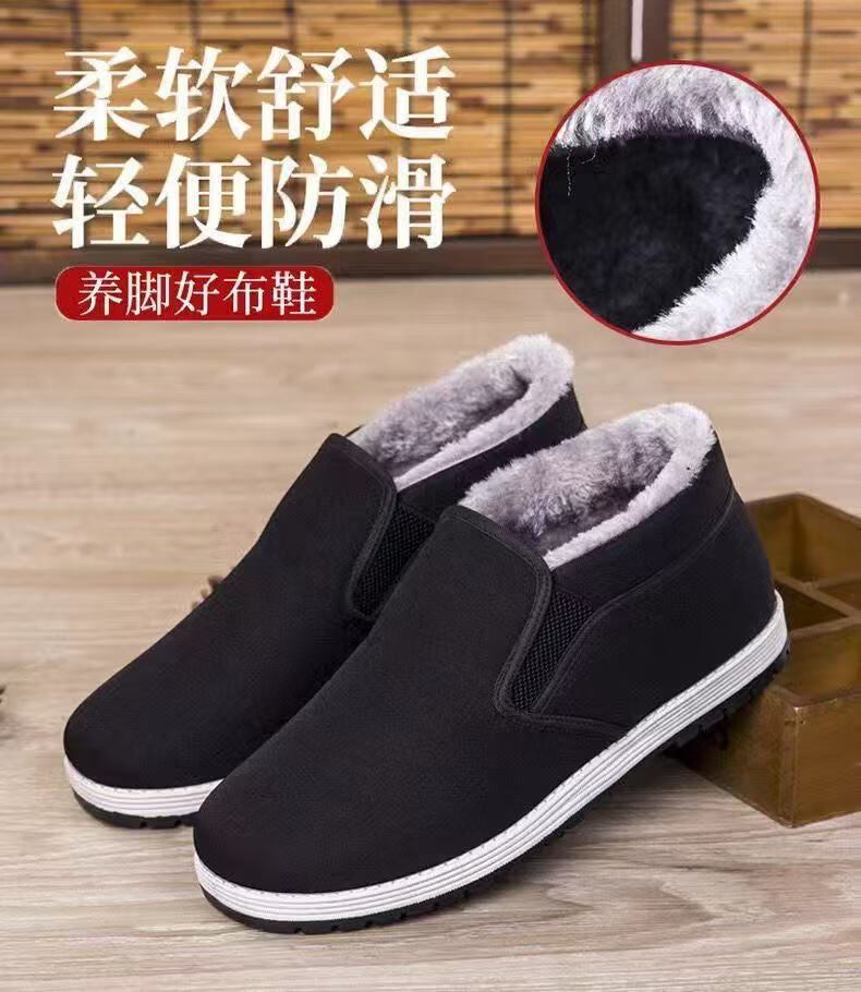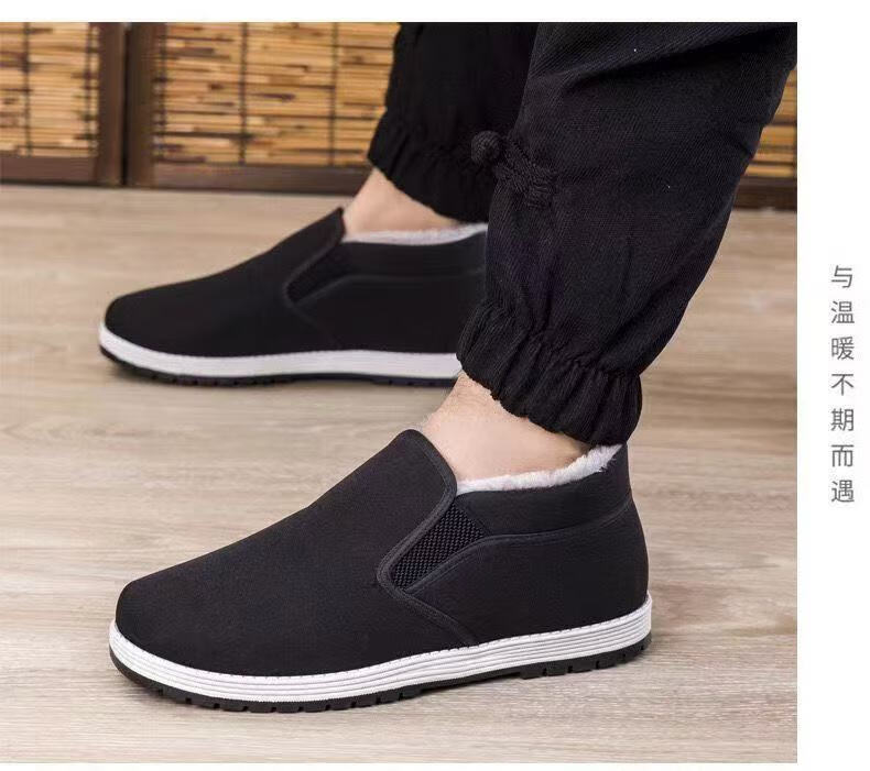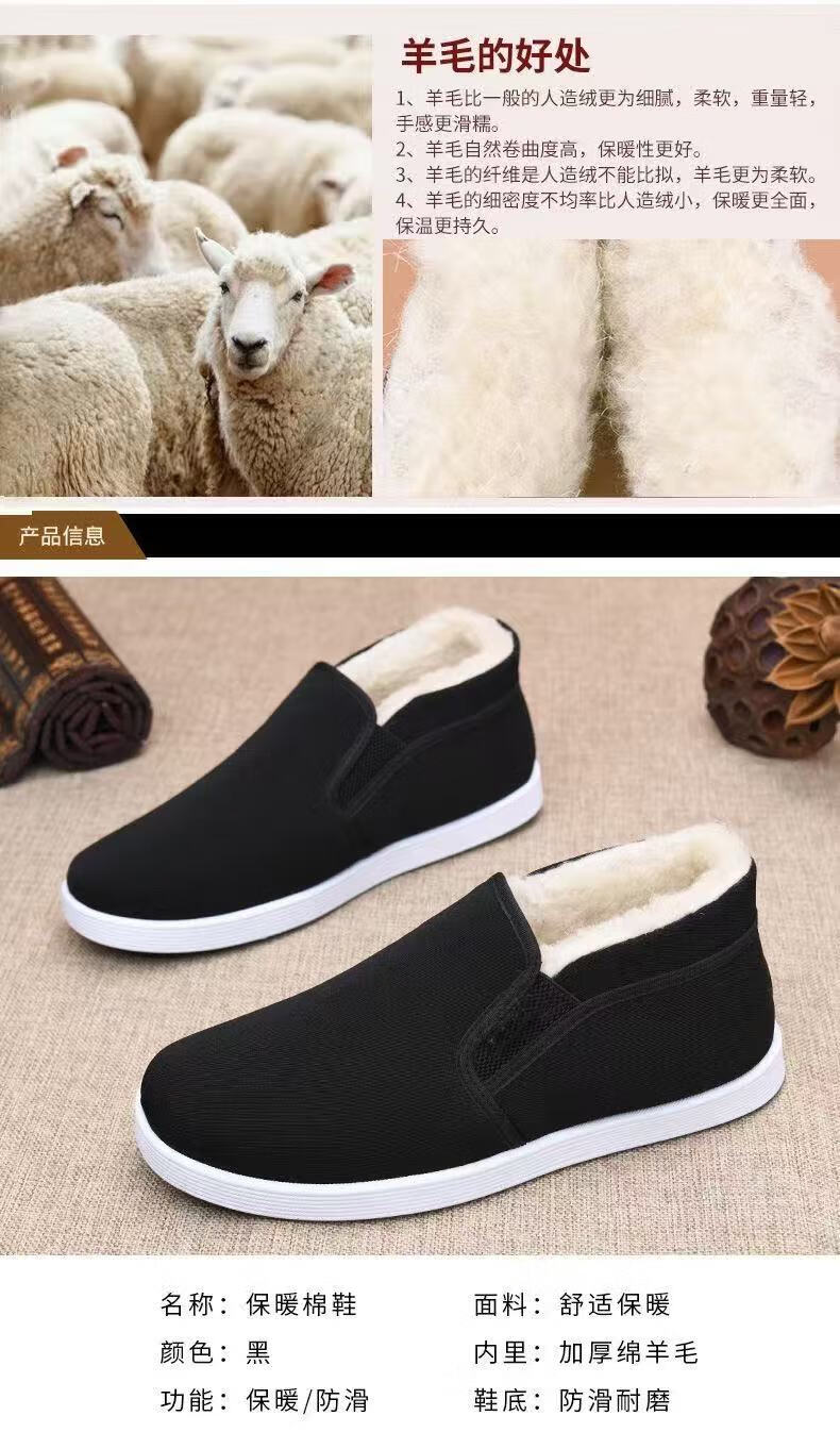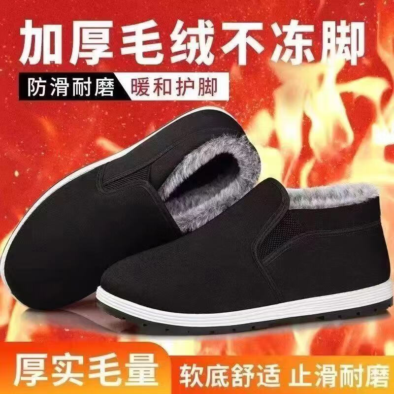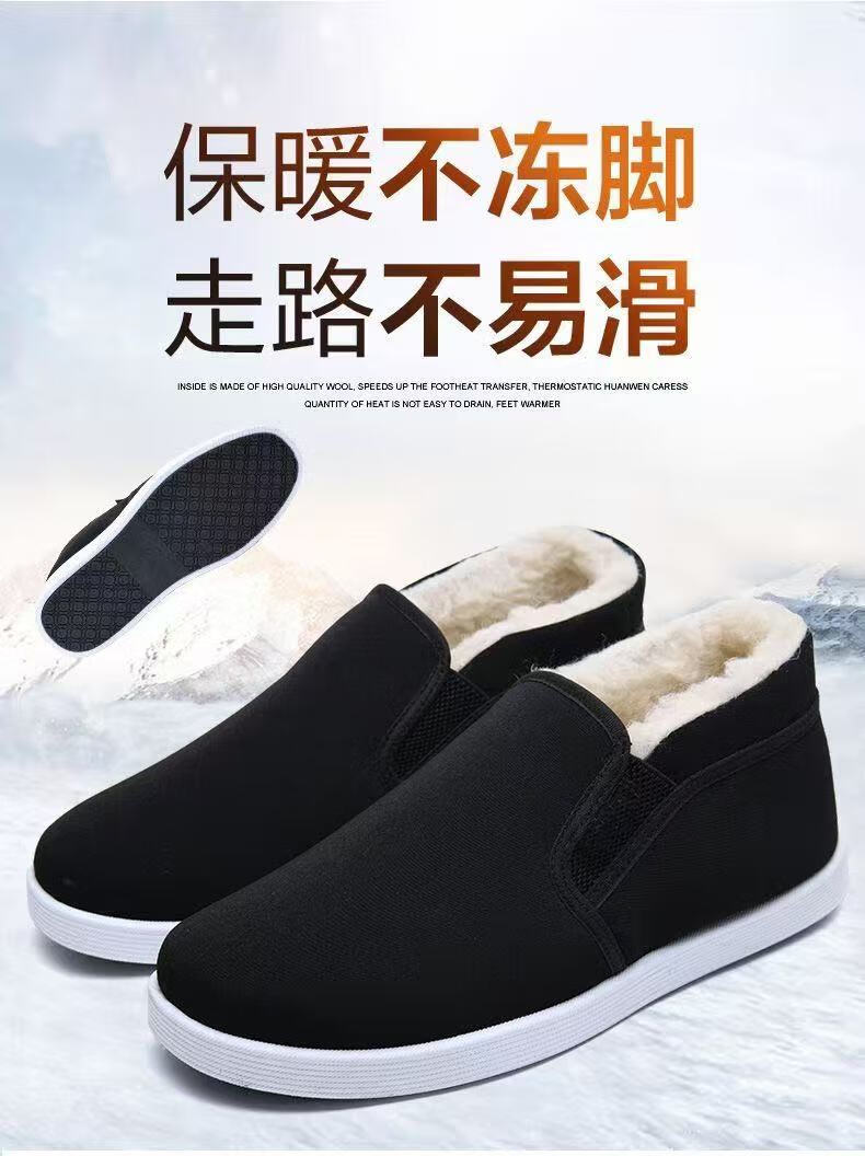 2025 winter old Beijing high-top wool large cotton shoes non-slip plus velvet thickened popular wear-resistant casual work shoes men's large cotton-2 white wool 360 warm and cold-resistant 42 (260mm)