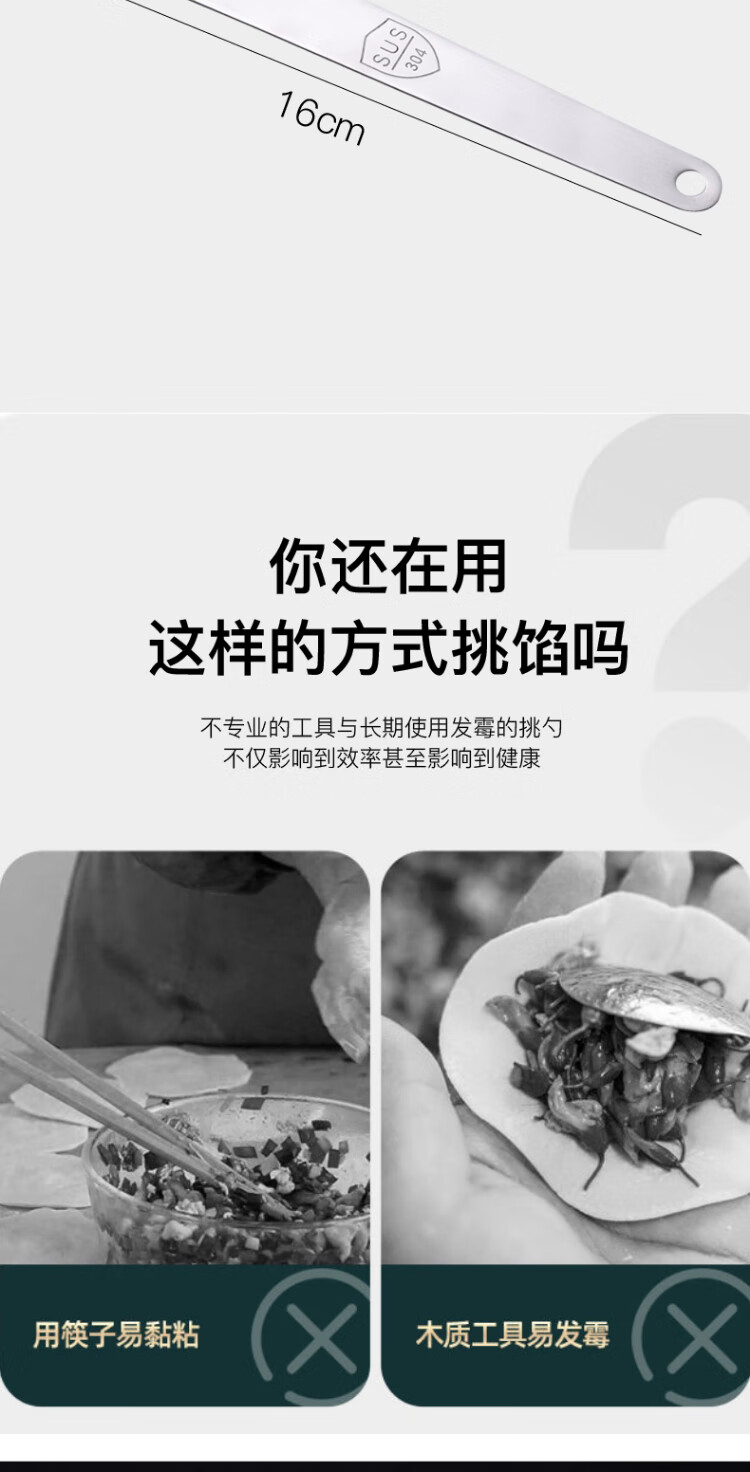 Zhewei 304 stainless steel filling spoon for dumplings, filling spoon, wonton dumpling tool, filling stirring spoon, filling pick, mixing spoon for filling