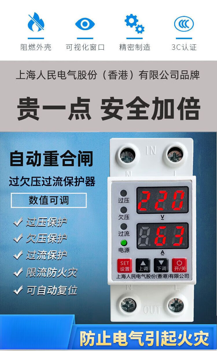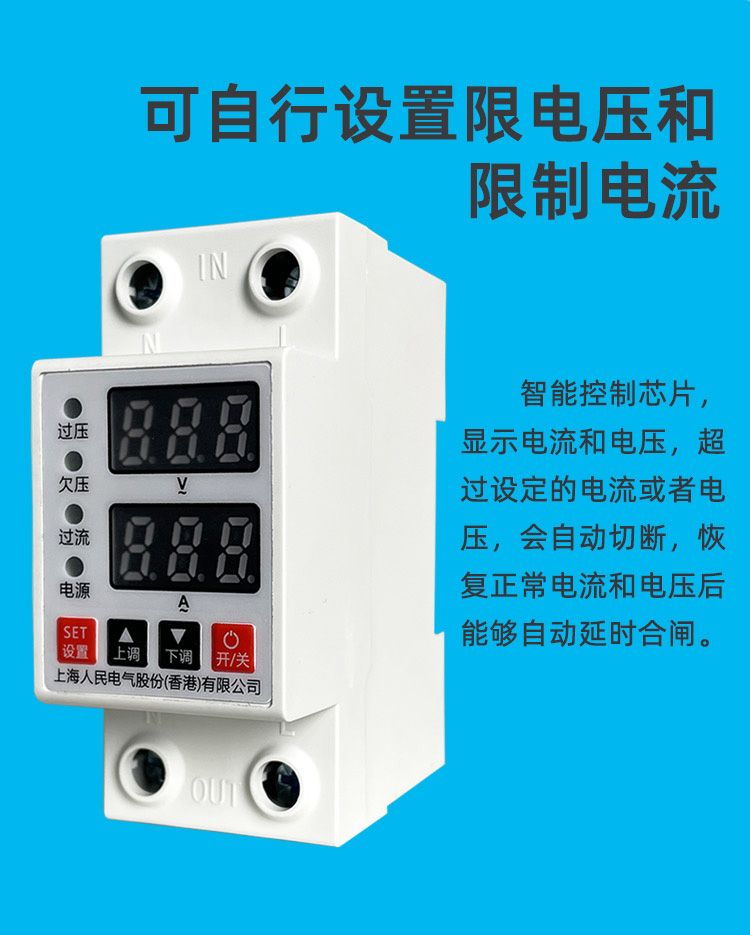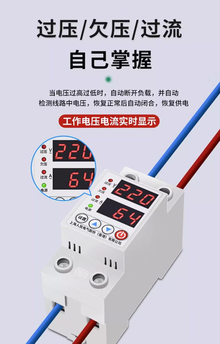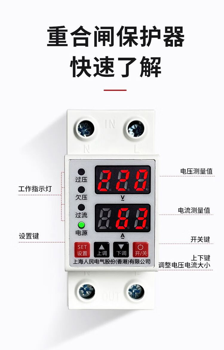 Current limiting automatic controller Shanghai People's self-complex digital display over-under voltage and over-current protection voltage limit current limit reclosing common through under-voltage (lower in and upper out) 1A-63A