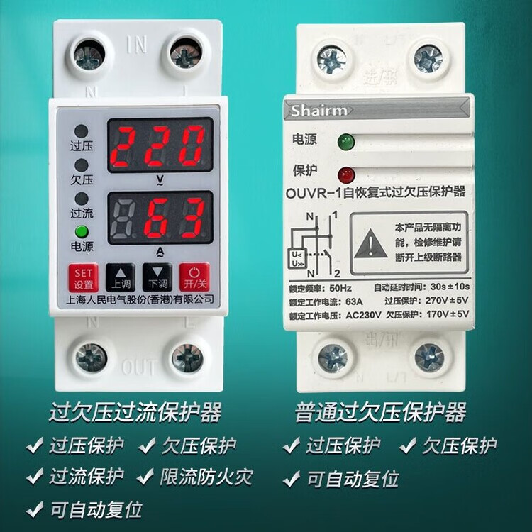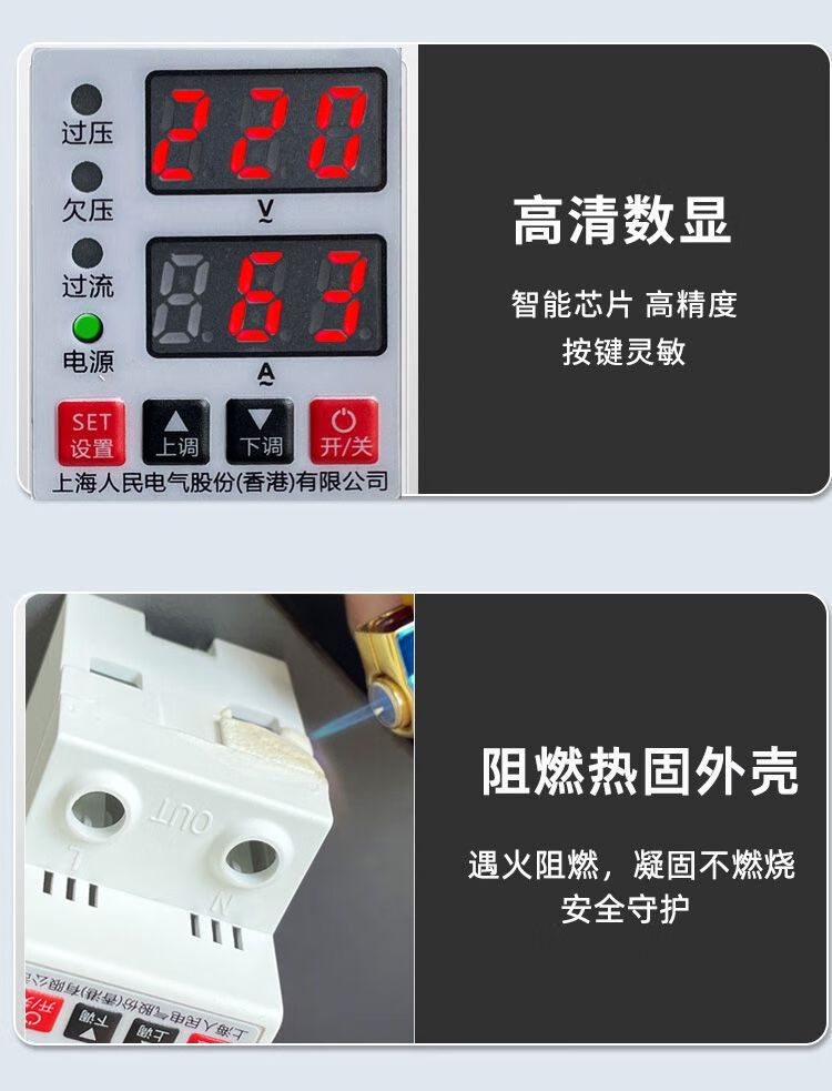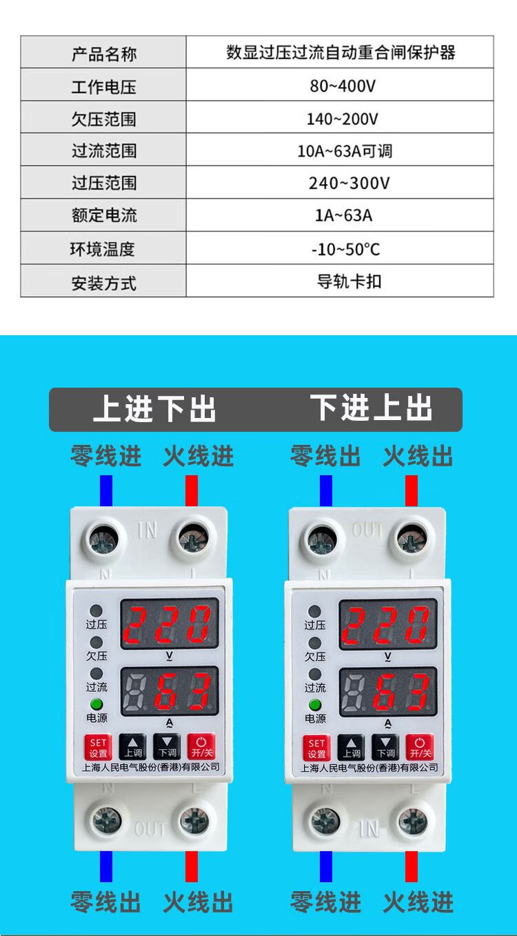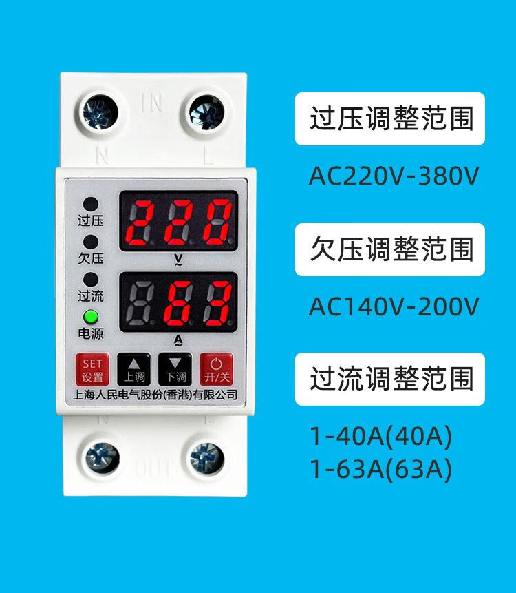 Current limiting automatic controller Shanghai People's self-complex digital display over-under voltage and over-current protection voltage limit current limit reclosing common through under-voltage (lower in and upper out) 1A-63A