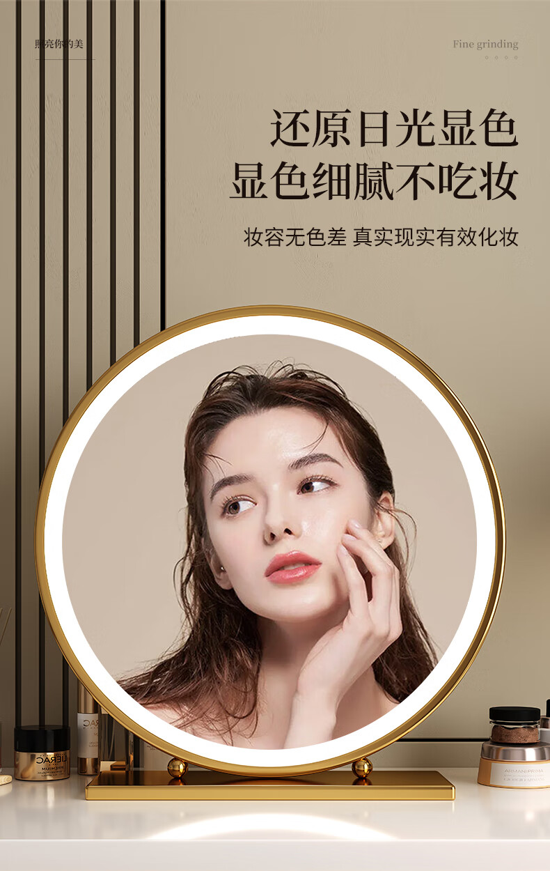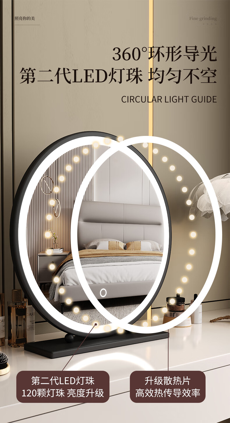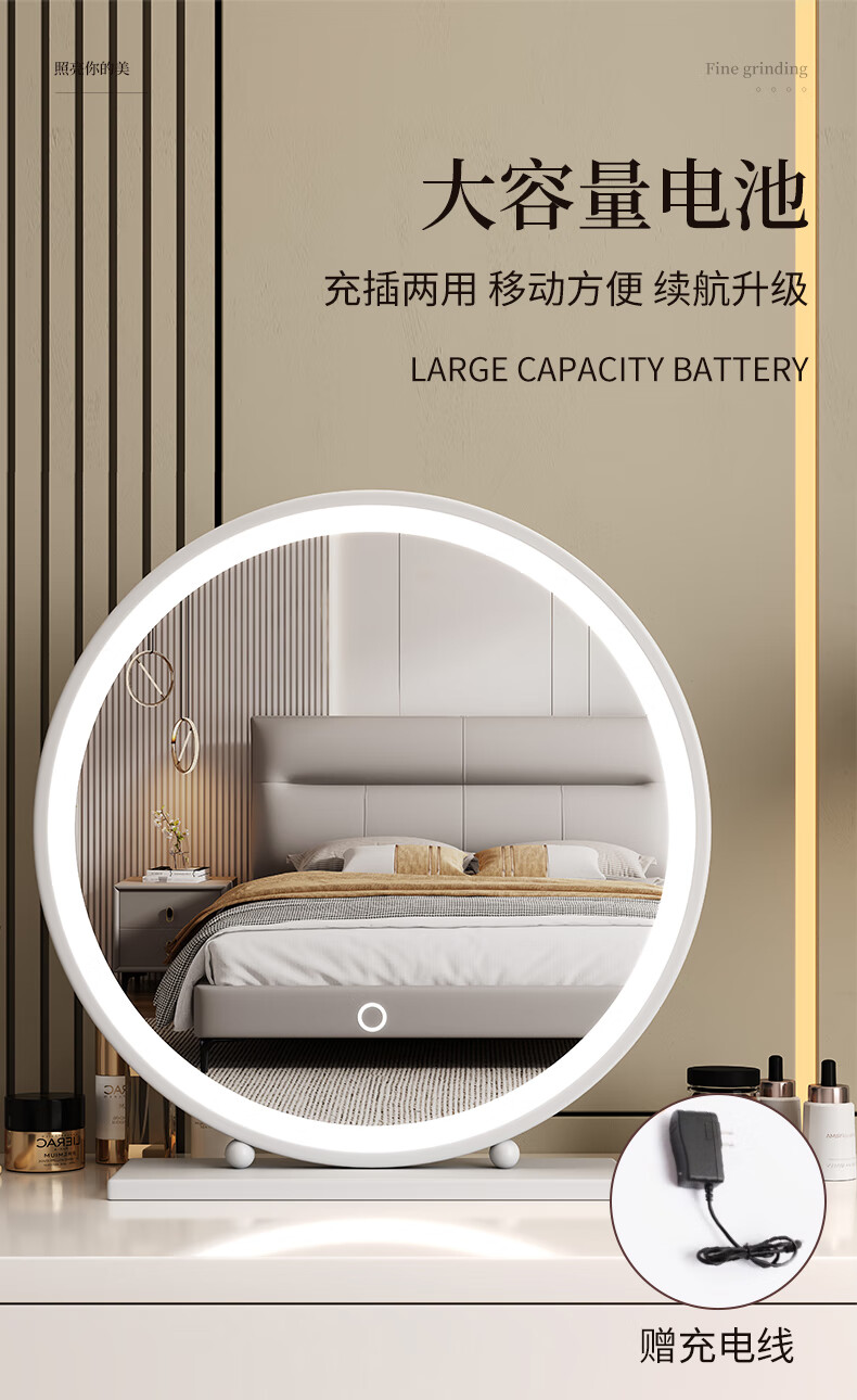Master bedroom smart mirror 2025 new LED dressing table makeup mirror with light fill light desktop desktop dressing mirror 60 fashion white square round beads rechargeable and plug-in dual-use model