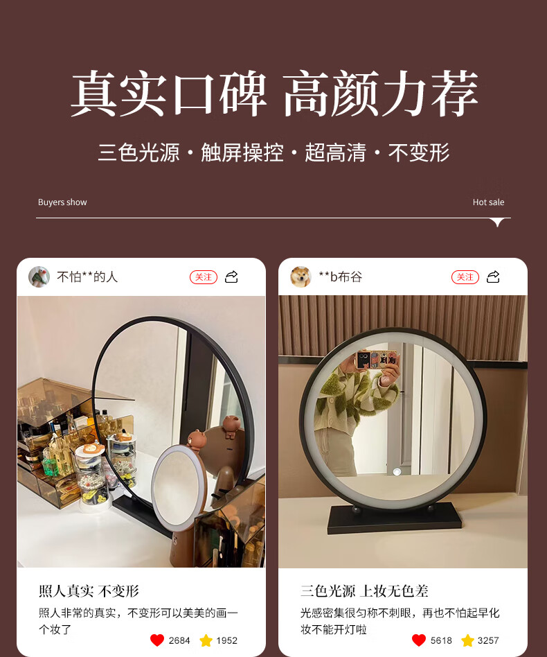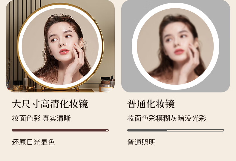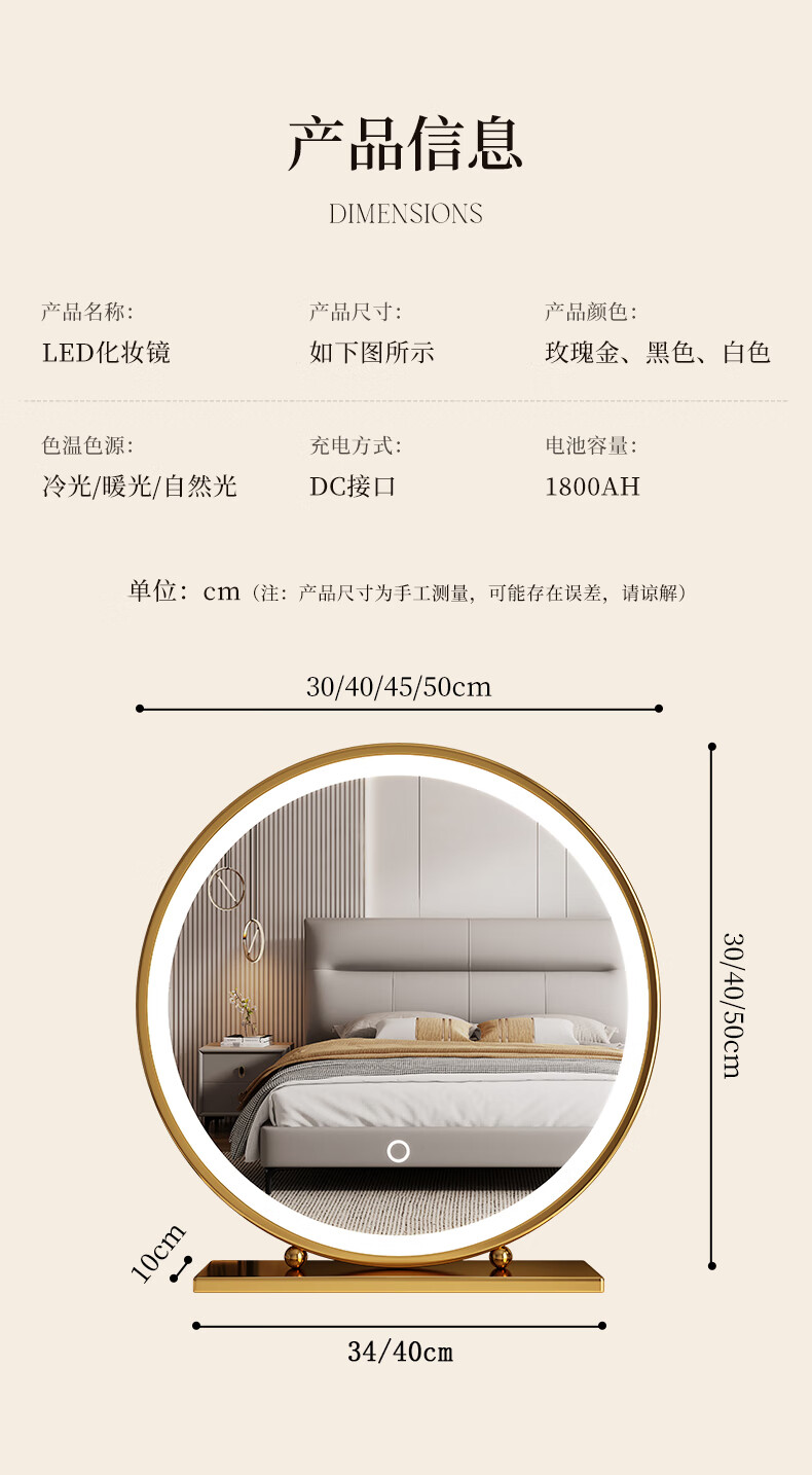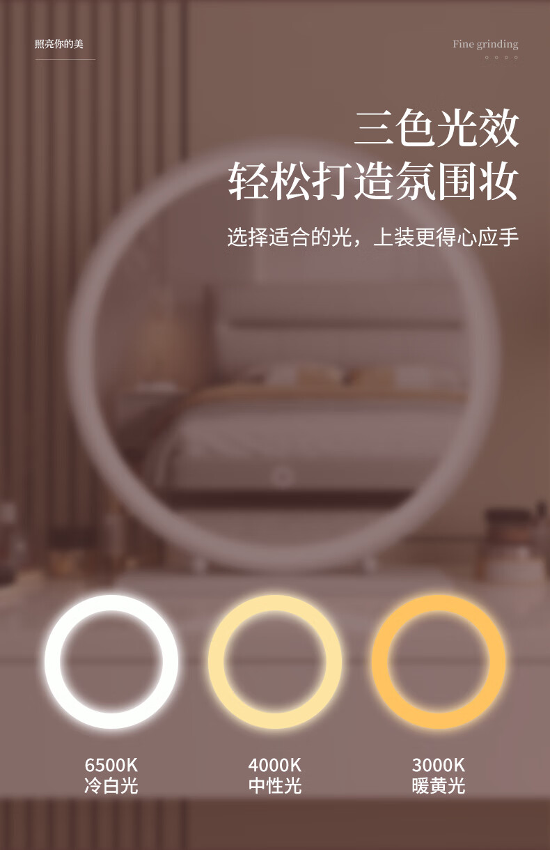 Master bedroom smart mirror 2025 new LED dressing table makeup mirror with light fill light desktop desktop dressing mirror 60 fashion white square round beads rechargeable and plug-in dual-use model