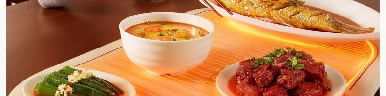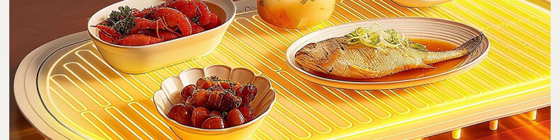 Qiaran Japan ai fresh-locking hot dish warming cutting board placemat foldable smart electric heating 2025 new home heating dish ai fast heating fresh-locking oval gray-67 38cm smart folding 80/120 degrees + partition independent temperature control