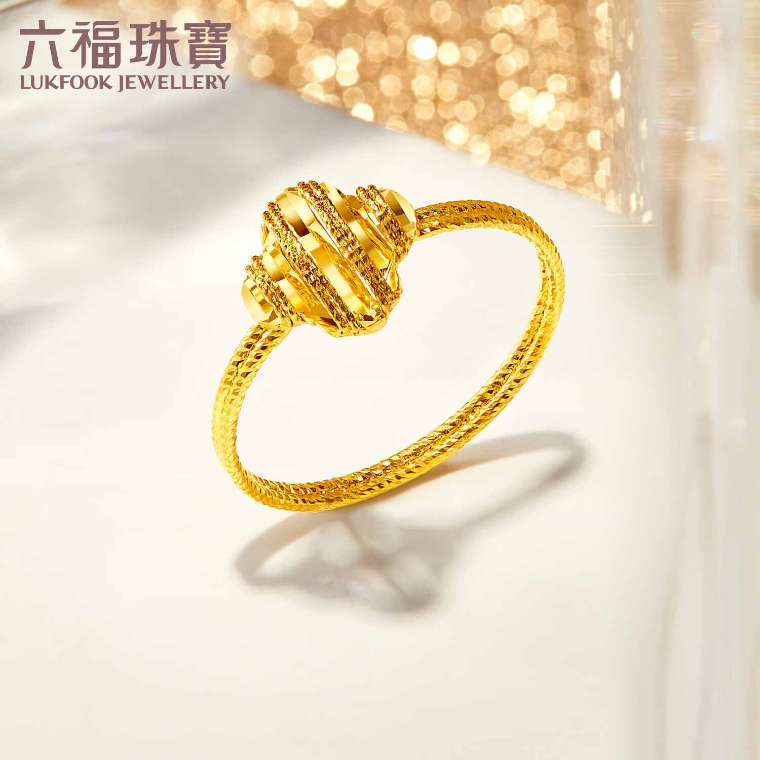 Lukfook Jewelry Light and Shadow Gold Pure Gold Four-leaf Clover hand-wound gold wire craft solid gold ring priced GJG0187DS No. 11-1.35g (including labor cost 207 yuan)