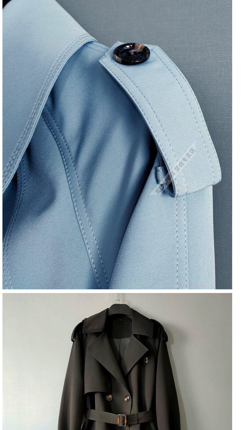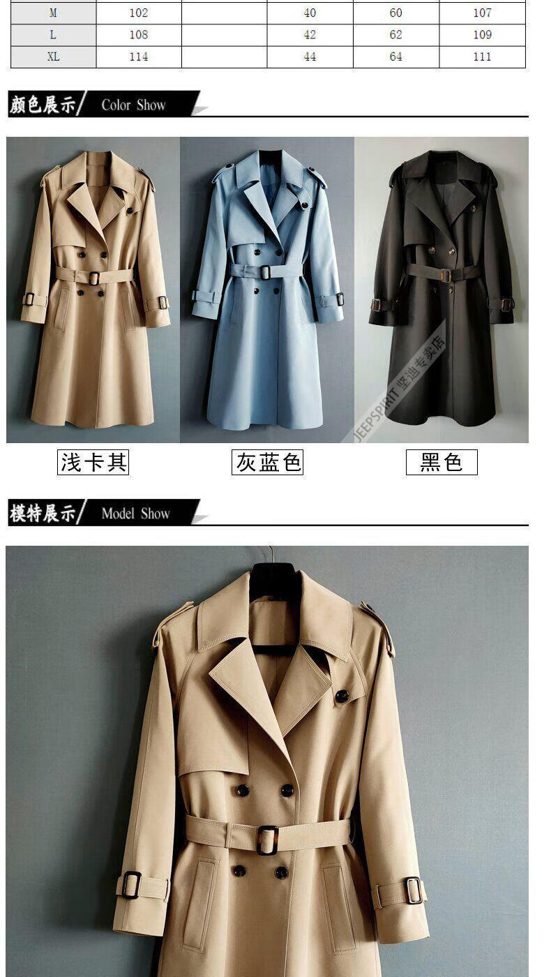 JEEP SPIRIT loose long windbreaker over the knee men's 2026 autumn and winter new style raglan fashion and exquisite commuter double row lengthened versatile jacket gray blue men's 2XL