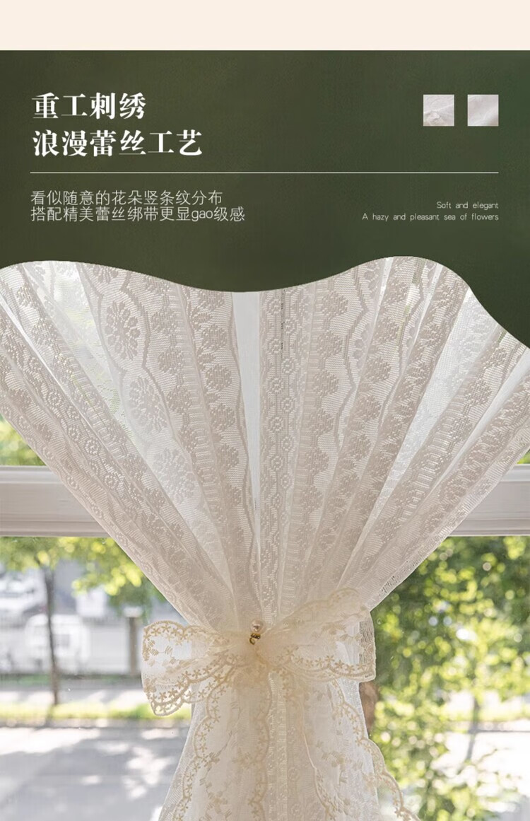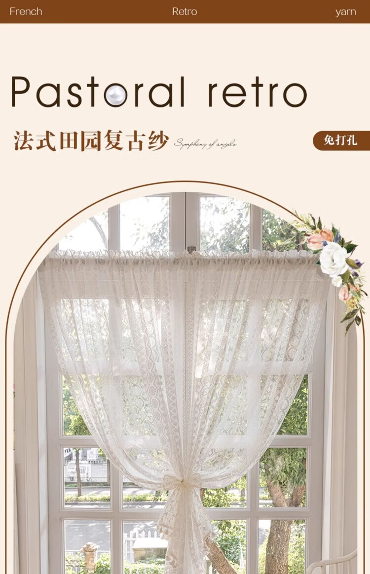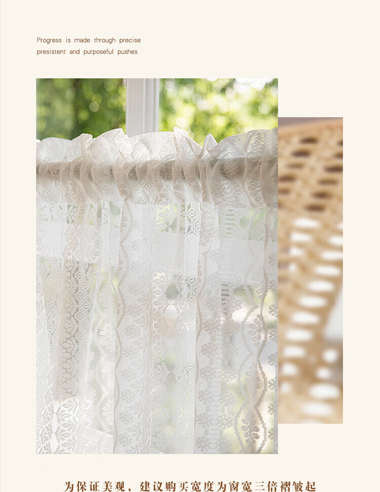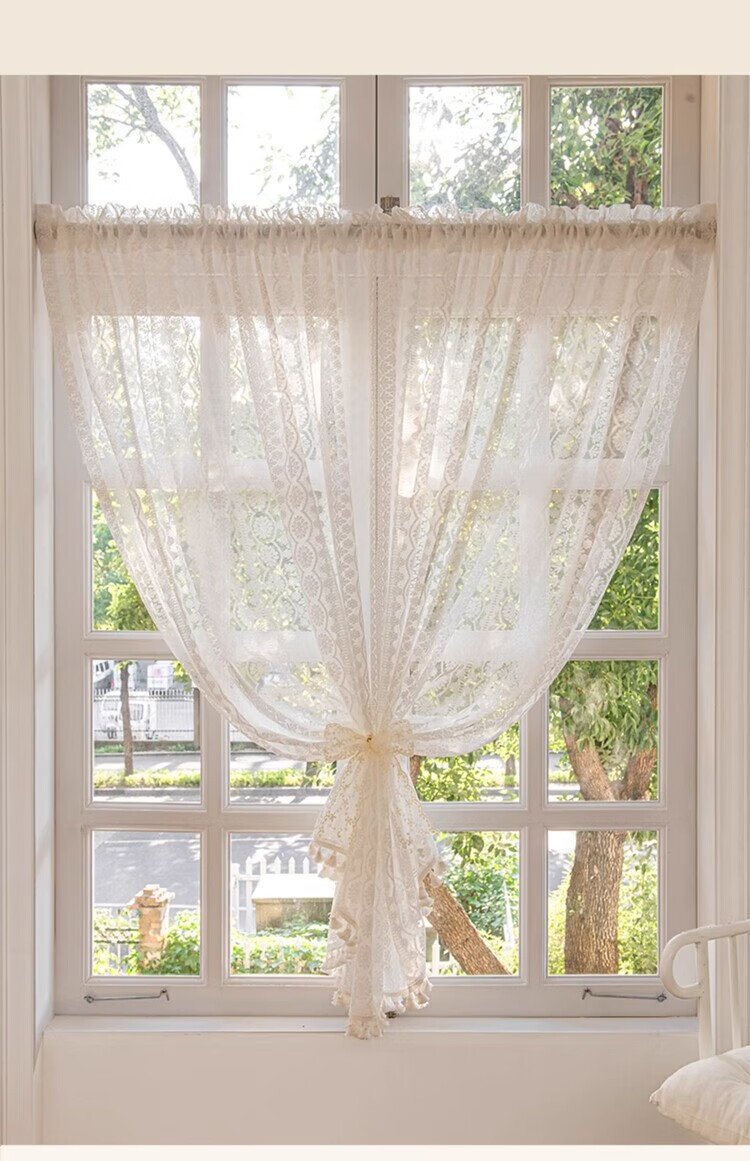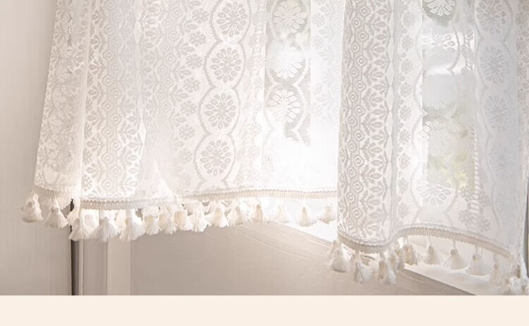 BEAN VINES HOME French lace gauze curtain American bedroom kitchen window bay window toilet half curtain short curtain door curtain partition golden cicada curtain Wan Kui yarn (rod type) tile 150 width * 80cm high one piece