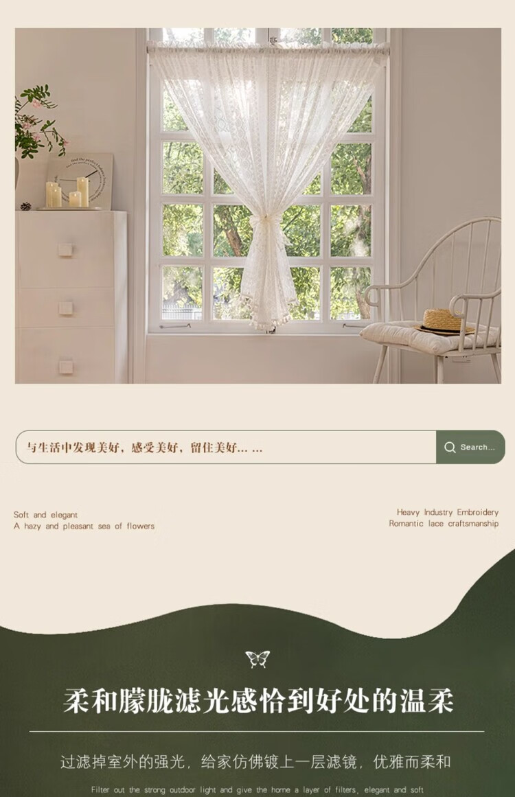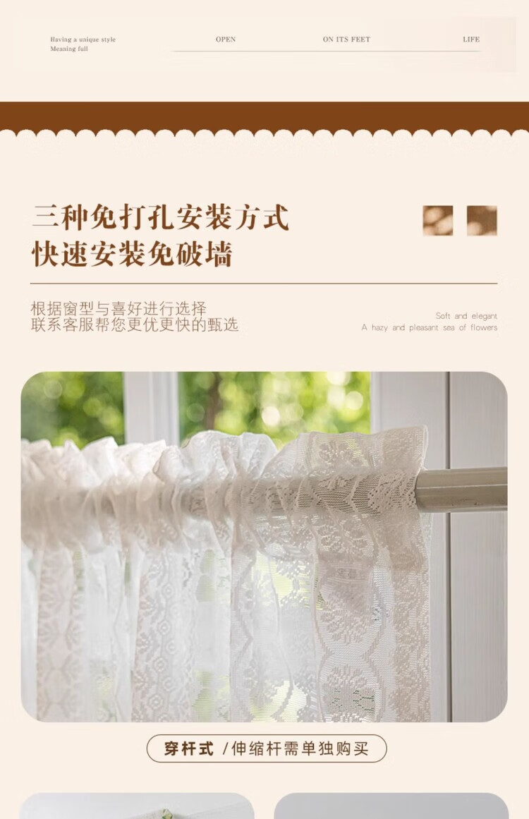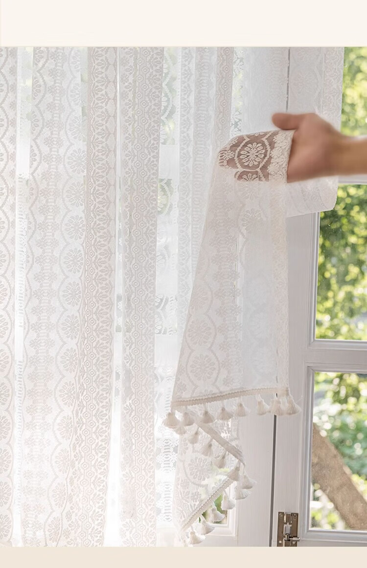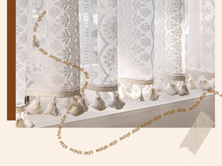 BEAN VINES HOME French lace gauze curtain American bedroom kitchen window bay window toilet half curtain short curtain door curtain partition golden cicada curtain Wan Kui yarn (rod type) tile 150 width * 80cm high one piece