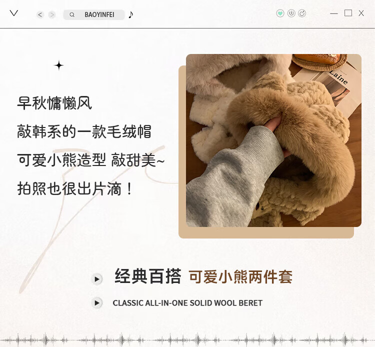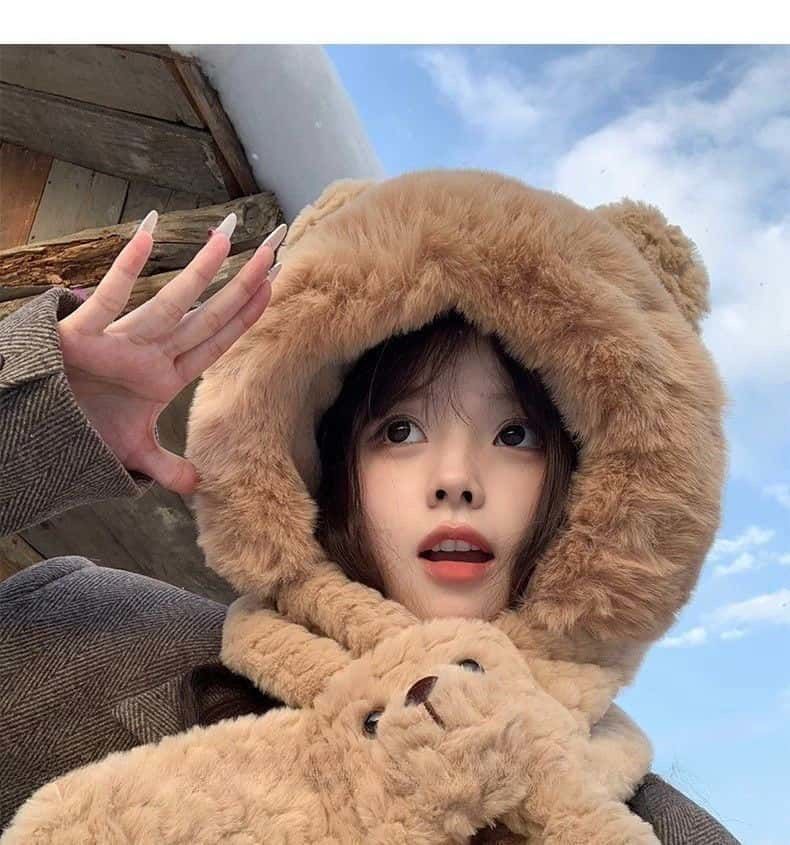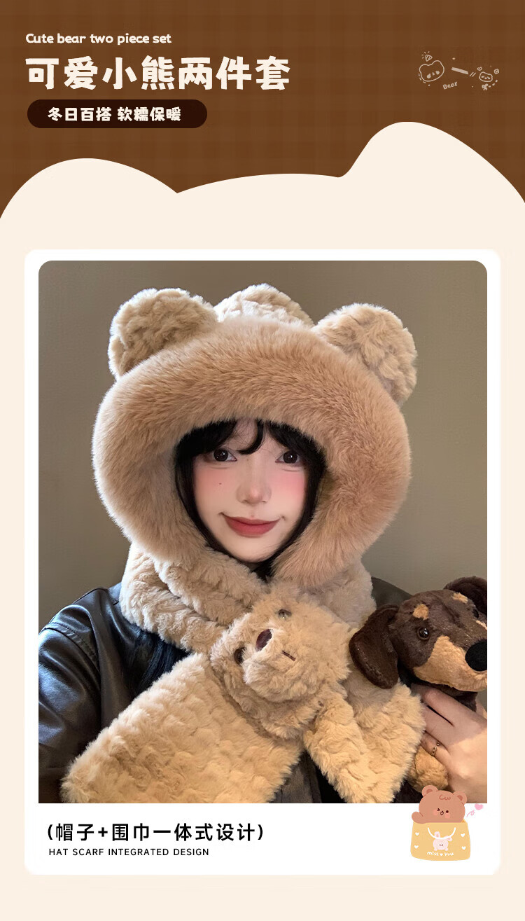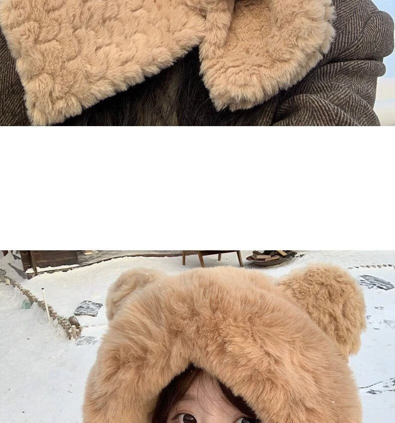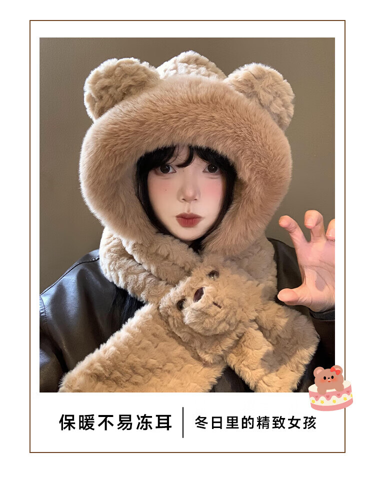 Luge Li Bear Ears Hat Scarf All-in-one Women's Winter Warmth Versatile Windproof Plus Velvet Thickened Plush Scarf Lei Feng Hat Bear Scarf Hat Beige