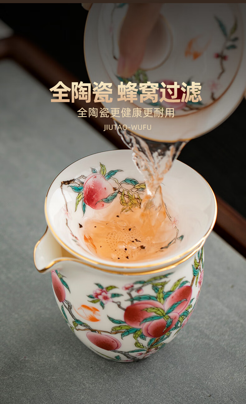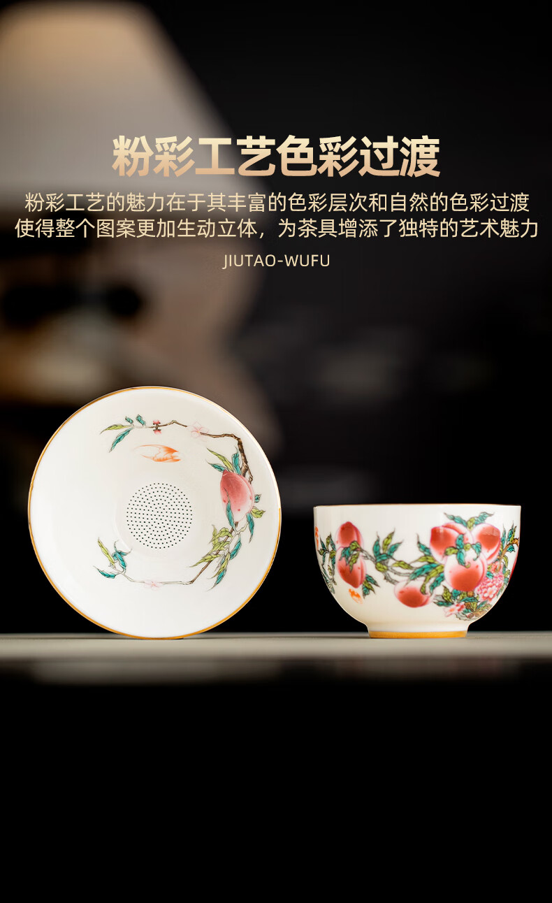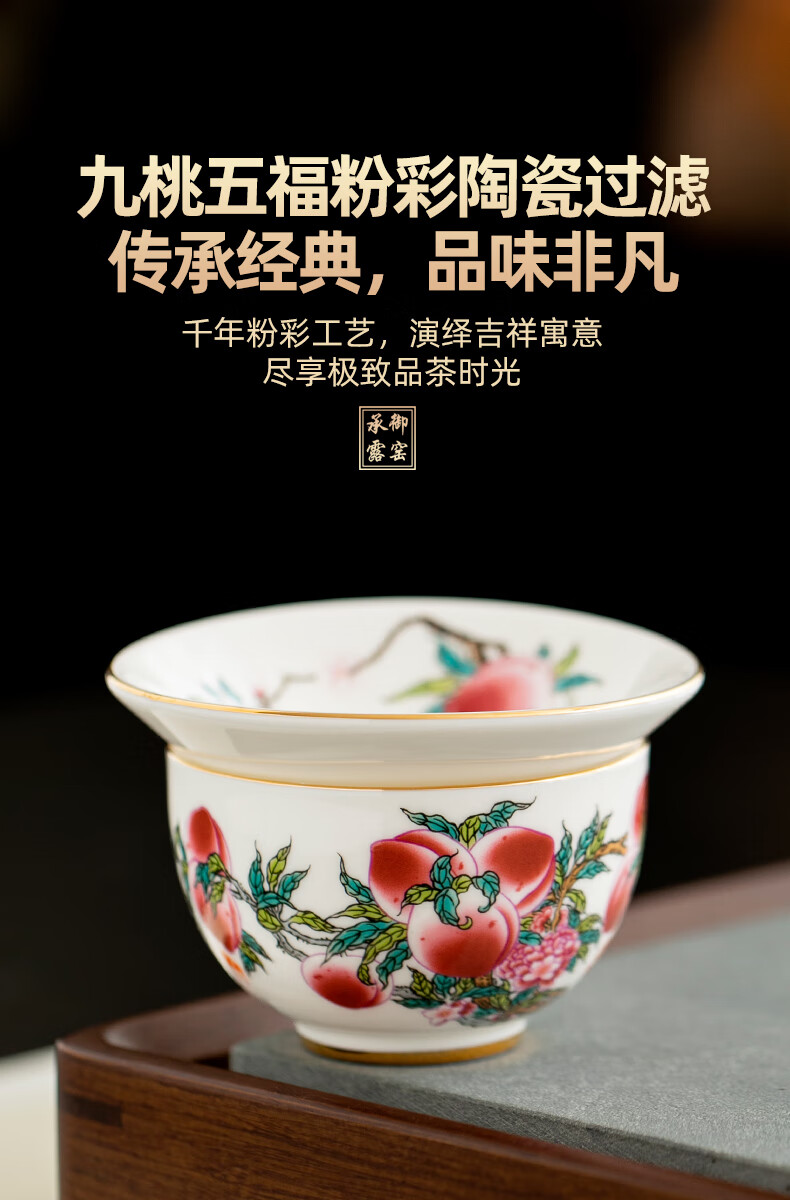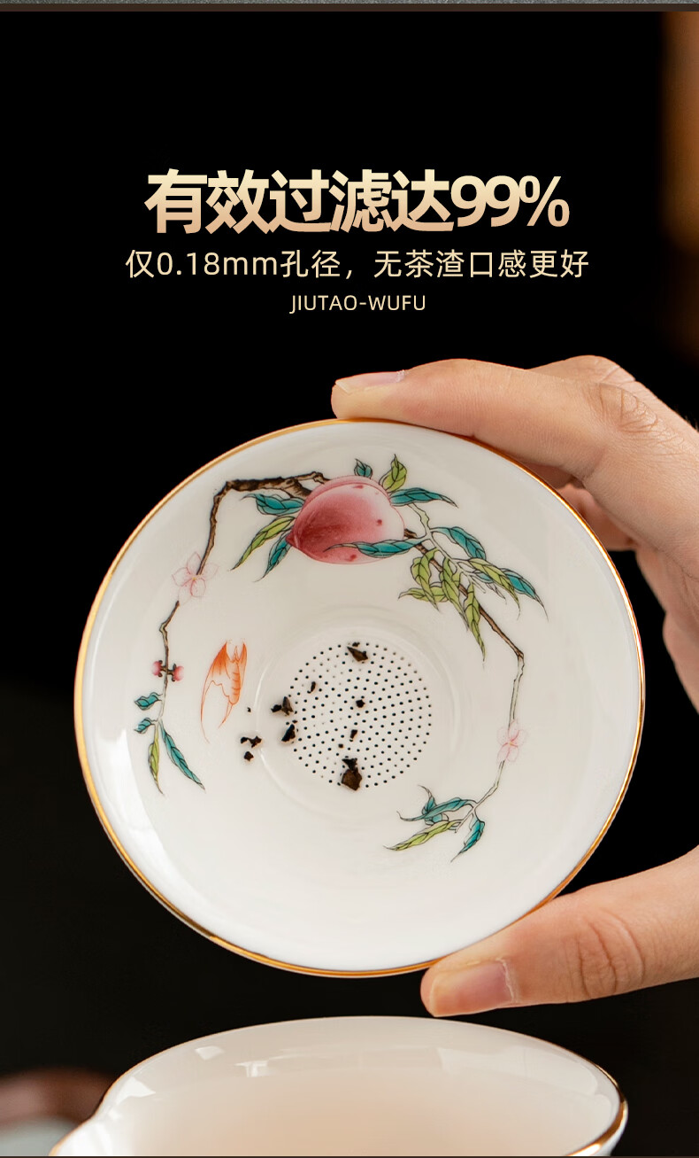 Tao Fuqi Jiu Tao Wu Fu Chinese retro pastel ceramic tea leakage tea filter ceramic tea set with separate tea filter Jiu Tao Wufu tea filter set