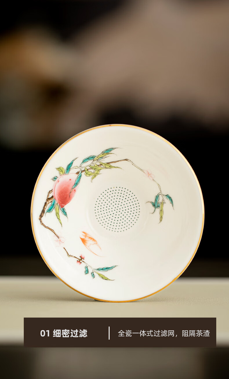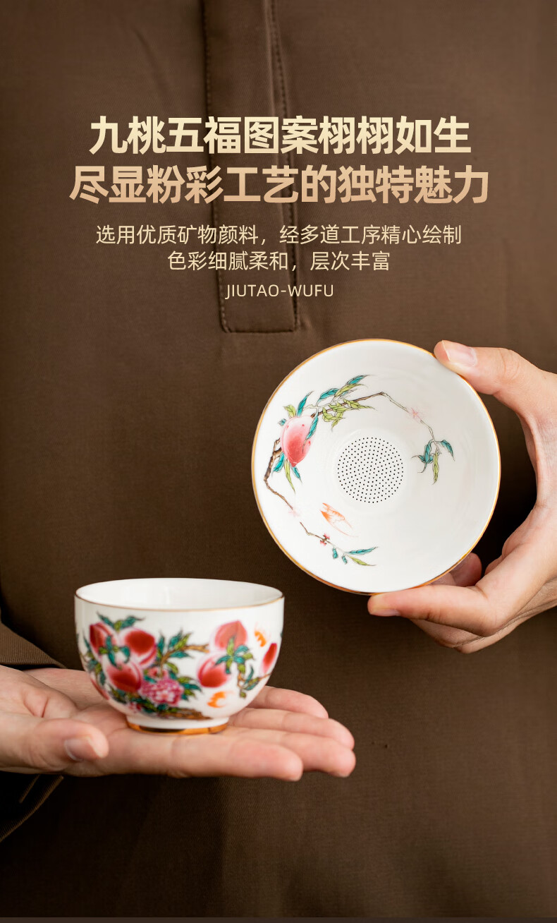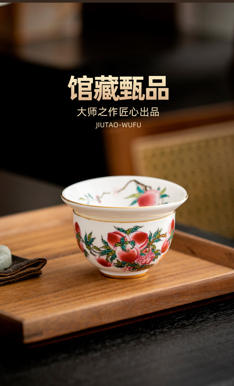 Tao Fuqi Jiu Tao Wu Fu Chinese retro pastel ceramic tea leakage tea filter ceramic tea set with separate tea filter Jiu Tao Wufu tea filter set