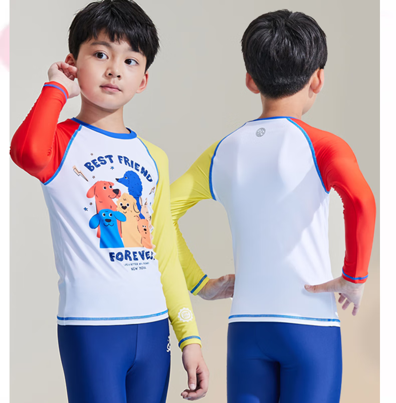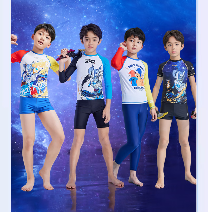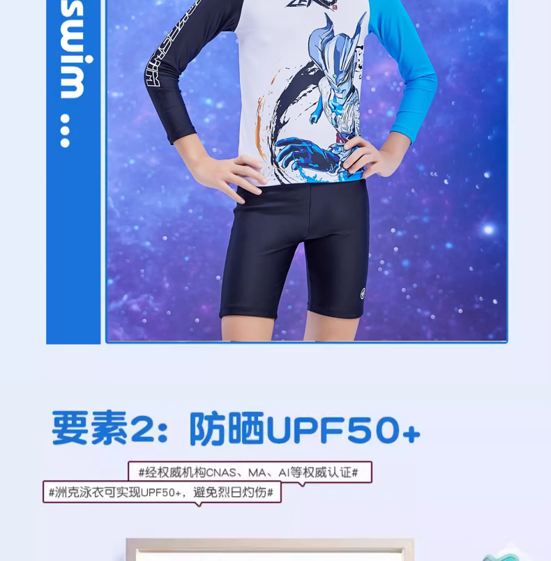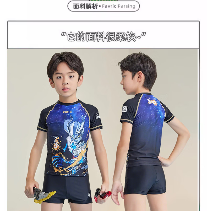 ZOKE children's swimsuit boy's split sunscreen long-sleeved quick-drying swimsuit boy Ultraman zoke2025 new swimsuit fluorescent green top 125610501-1 130