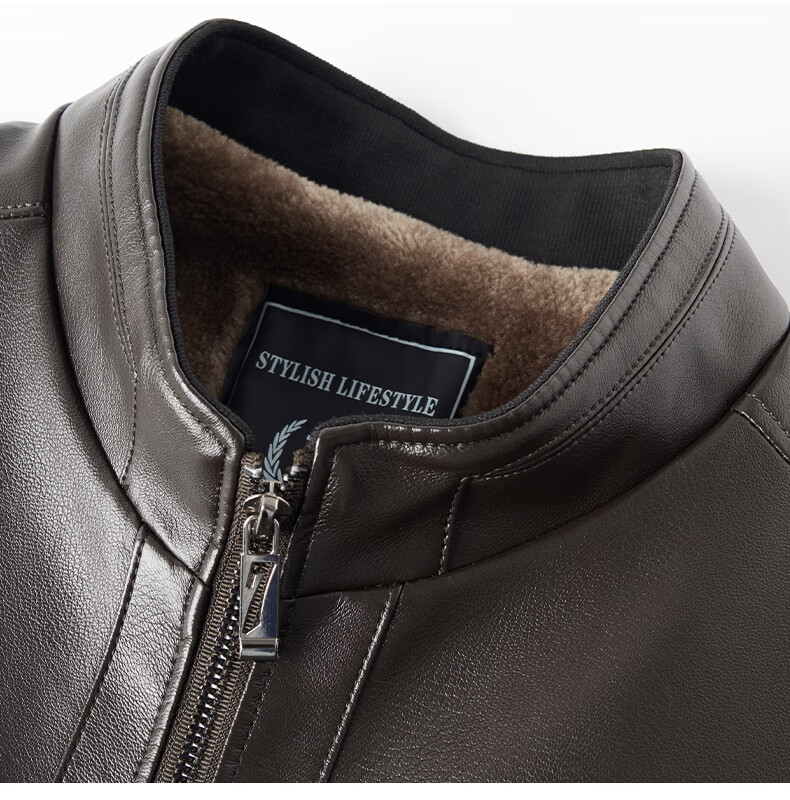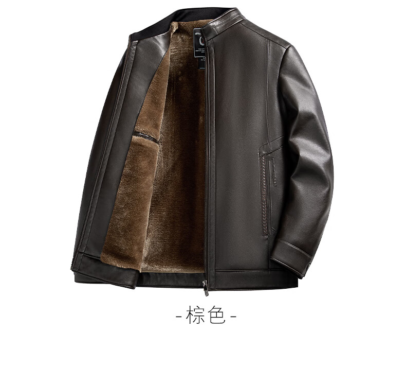 Woodpecker 2025 New Dad Winter Leather Jacket Men's Velvet Thickened Middle-aged and Elderly Men's New Warm Leather Jacket Brown L (180) Recommended 110-130Jin Jin equals 0.5 kg