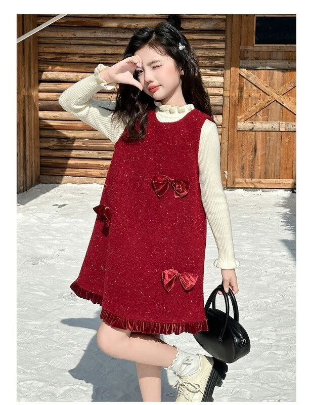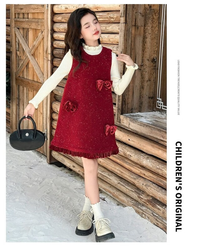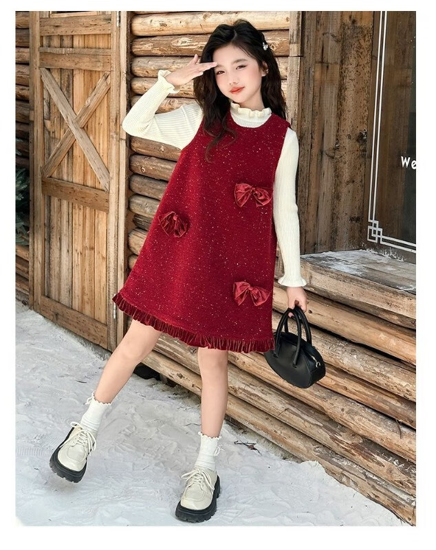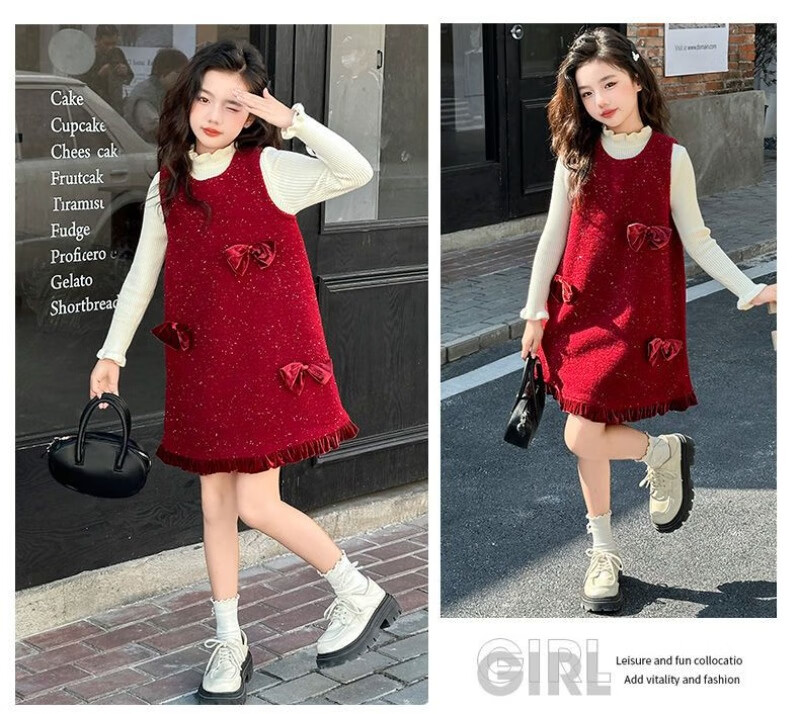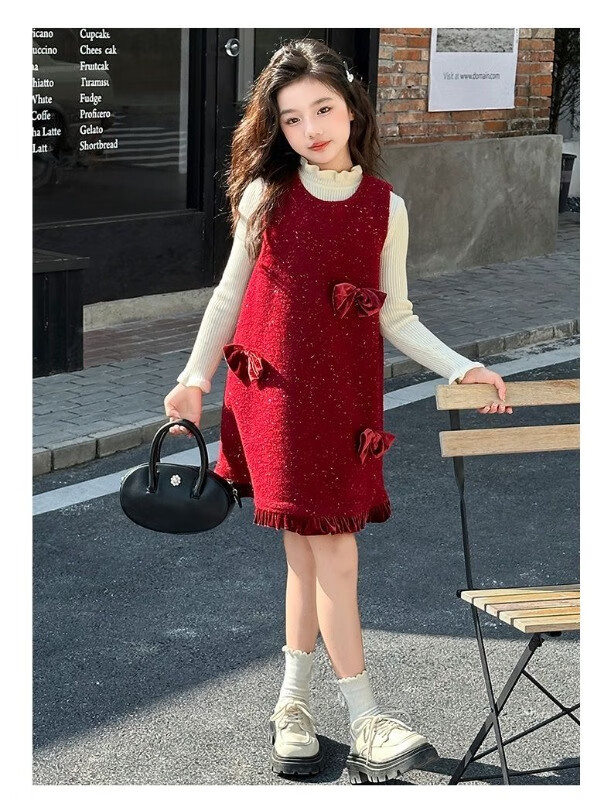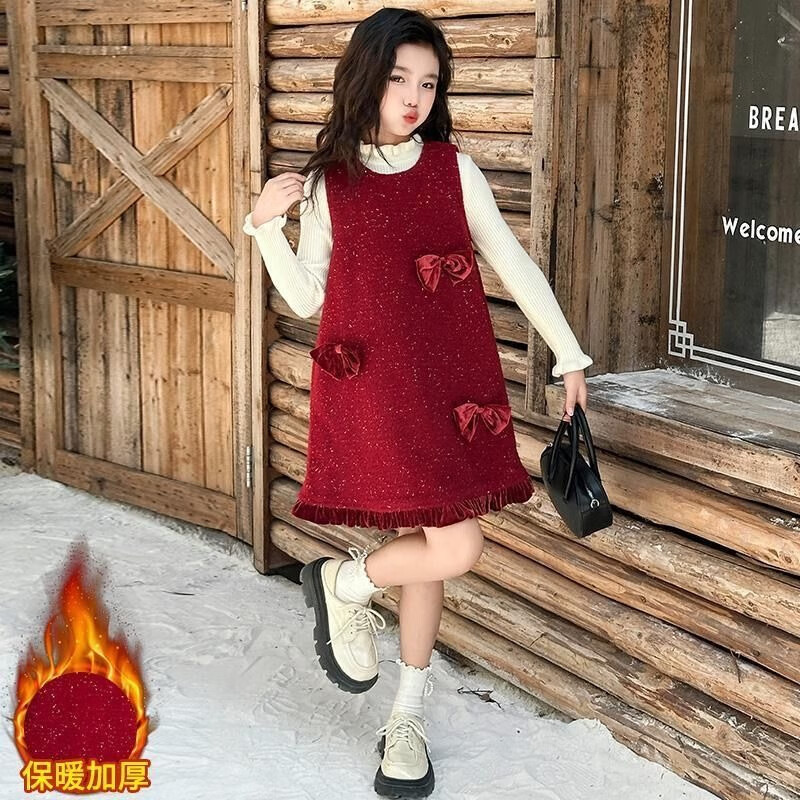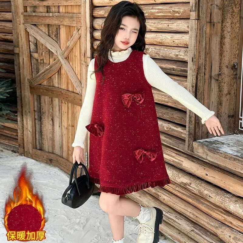JD Logistics Trendy and cool girls autumn and winter dress two-piece set new style children's sundress suit picture color 170
