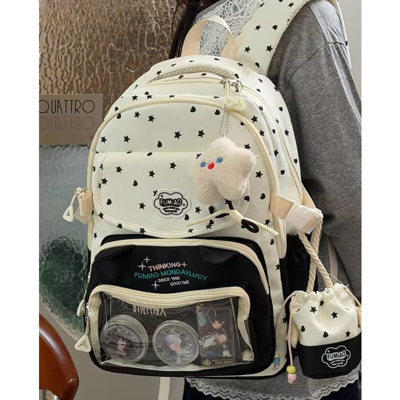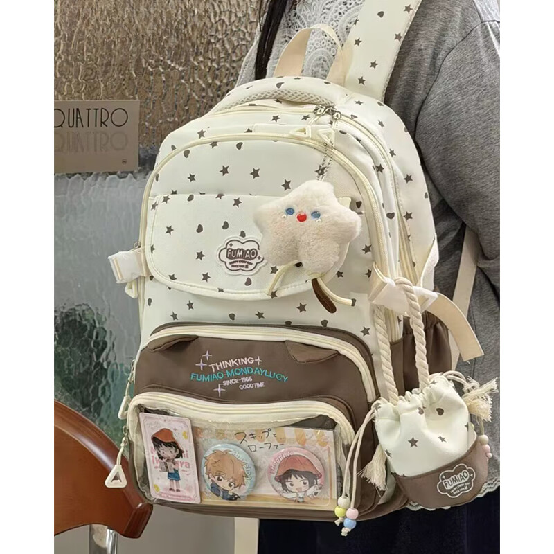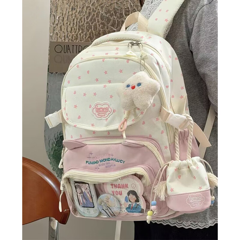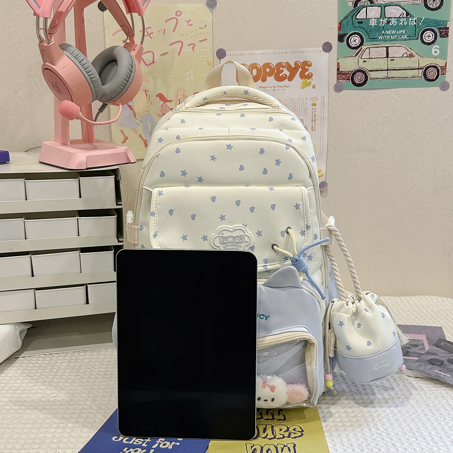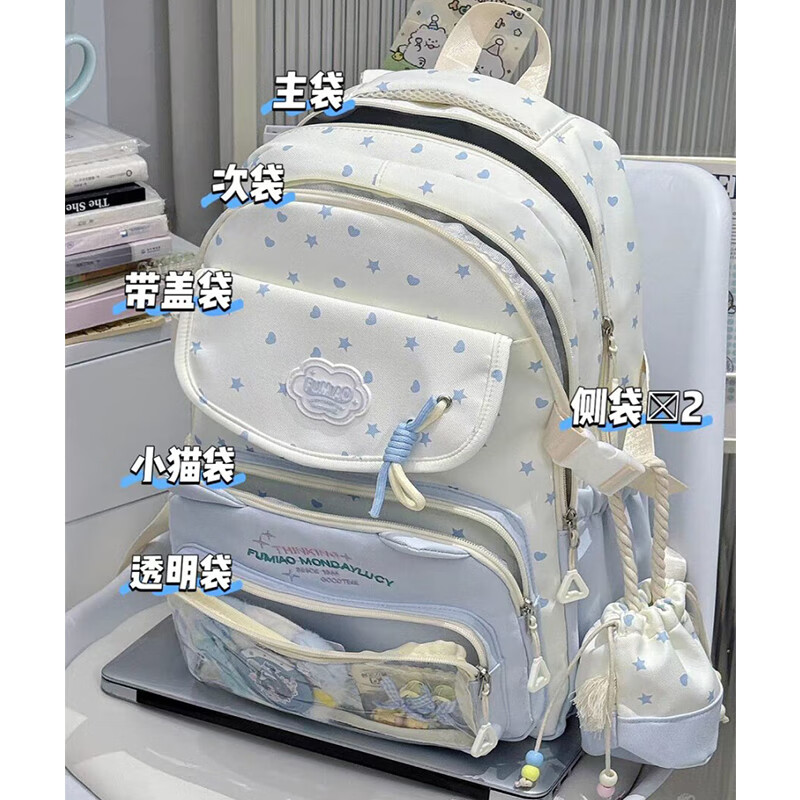 Cute Cat (Haoqimao) Cute Star Junior High School Schoolbag Female High School Student Large Capacity Backpack Small Fresh Elementary School Backpack Pain Bag Blue Contains Lucky Bag + Cute Star Pendant