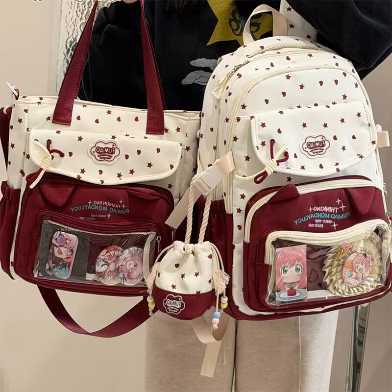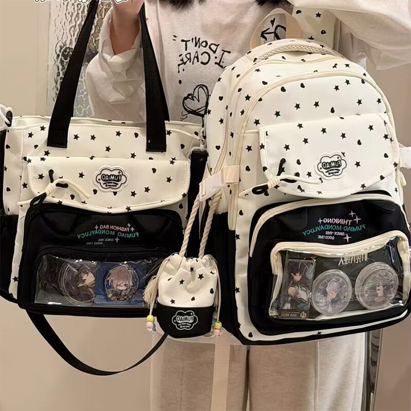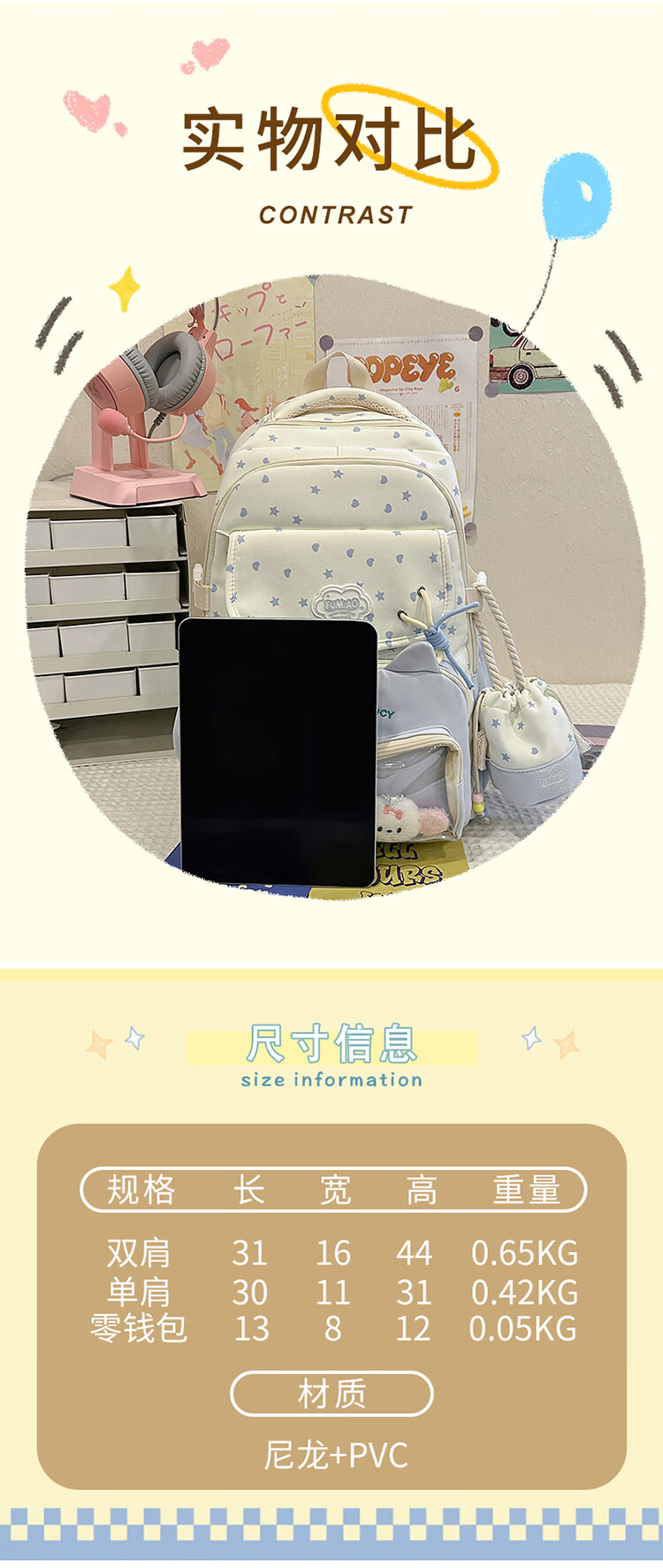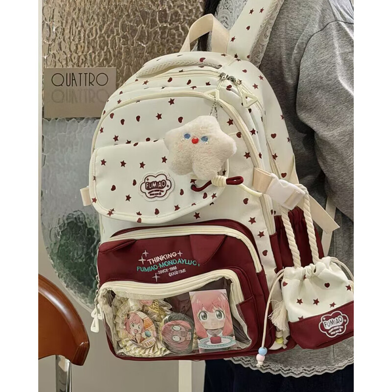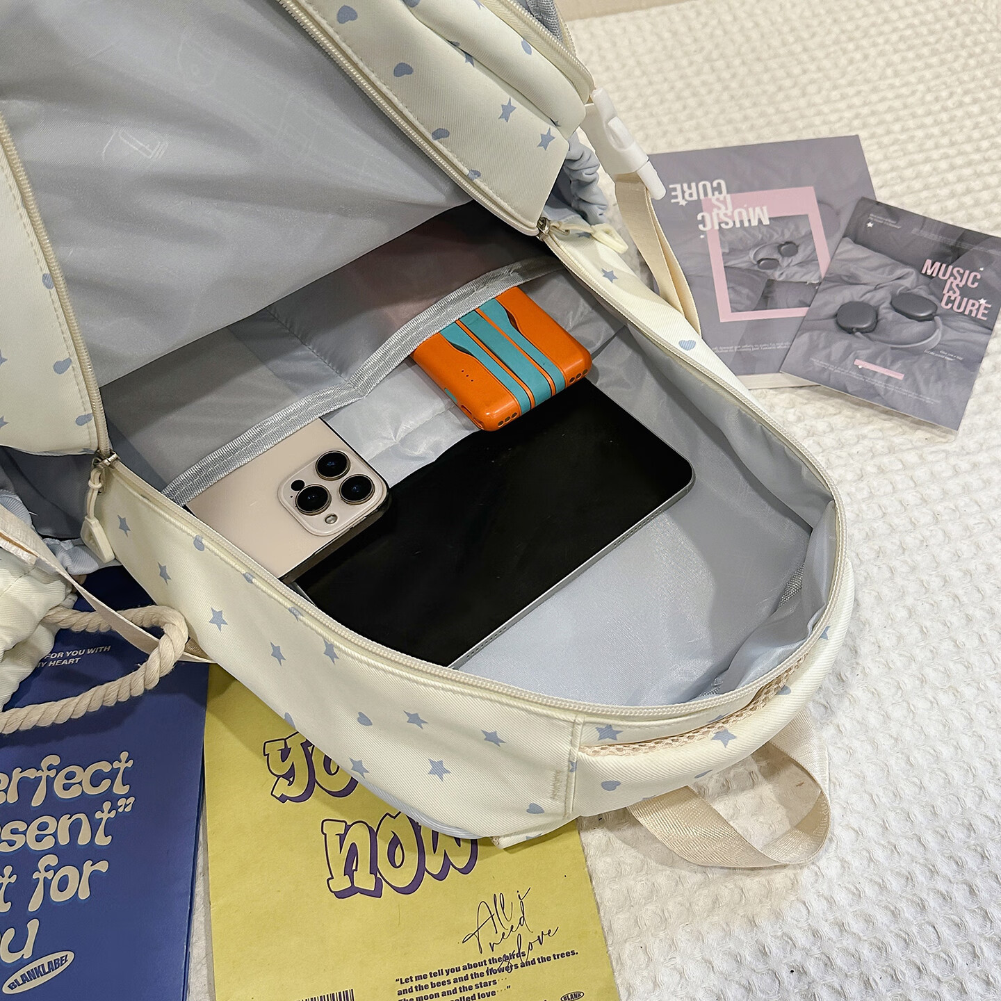 Cute Cat (Haoqimao) Cute Star Junior High School Schoolbag Female High School Student Large Capacity Backpack Small Fresh Elementary School Backpack Pain Bag Blue Contains Lucky Bag + Cute Star Pendant