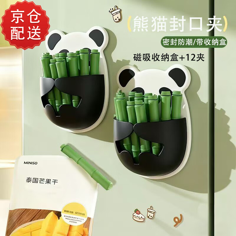 Panda magnetic sealing clip snap-on bamboo food snack bag dustproof and moisture-proof sealing clip refrigerator door magnetic box Panda magnetic box + 12 clips