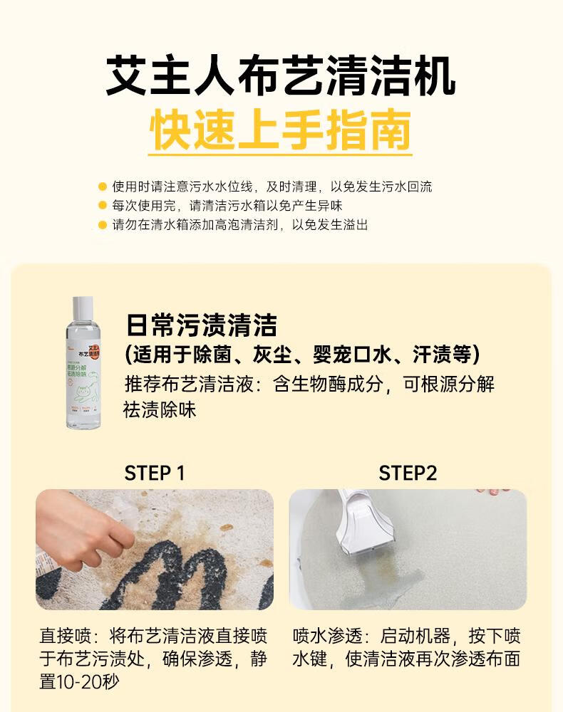 Ai Zhu sofa and fabric cleaning machine household multi-functional no-disassembly carpet mattress curtain curtain small fabric cleaning machine plus 2 bottles of cleaning liquid