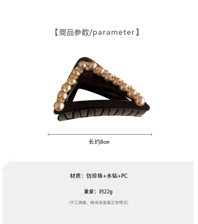Wanyao high-end imitation pearl triangle clip 2025 new hairpin back head hair shark clip high ponytail fixed clip champagne color pearl triangle clip 8cm