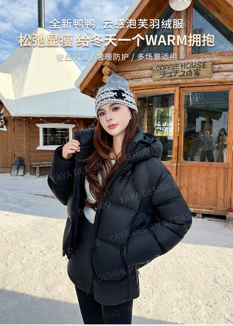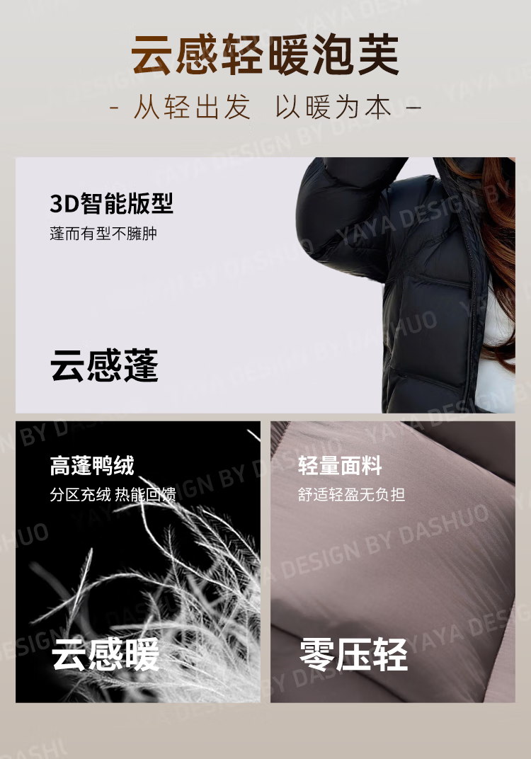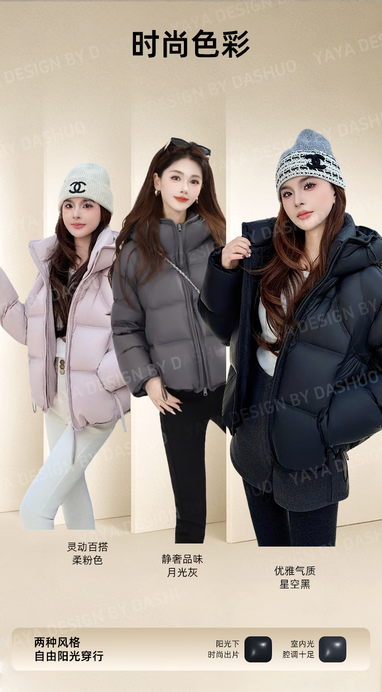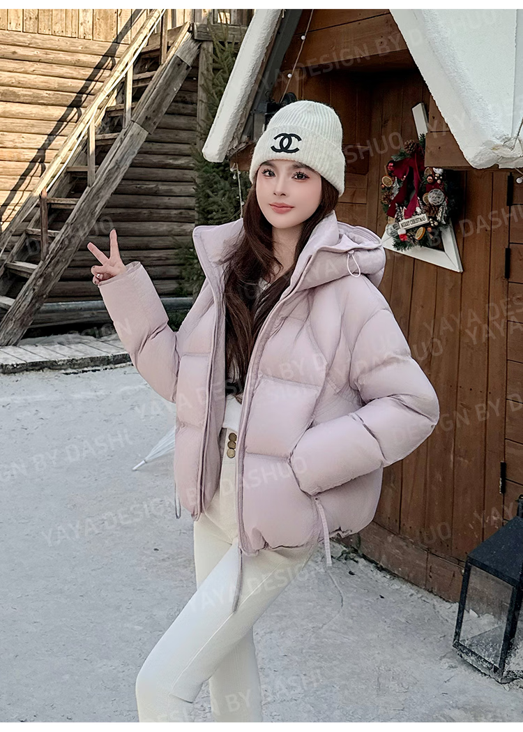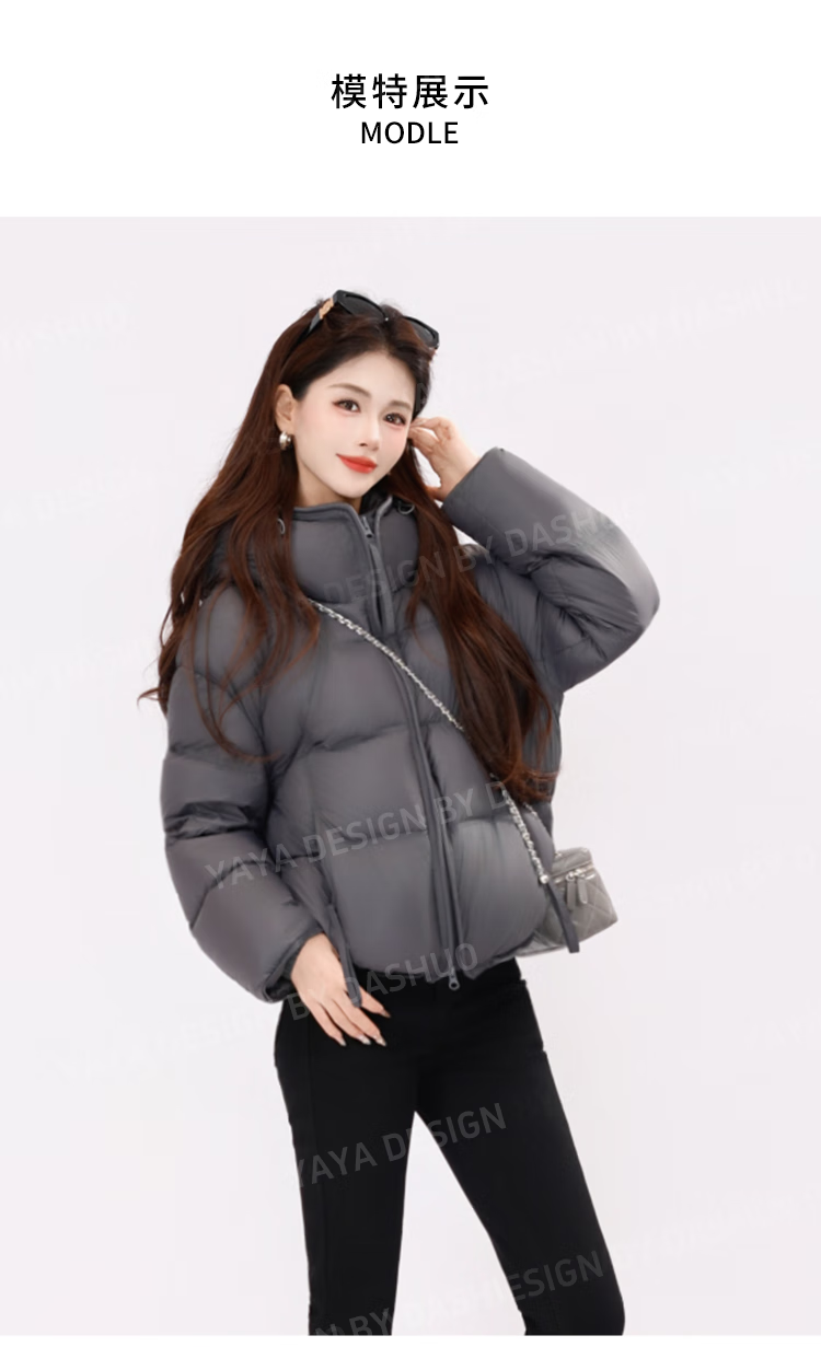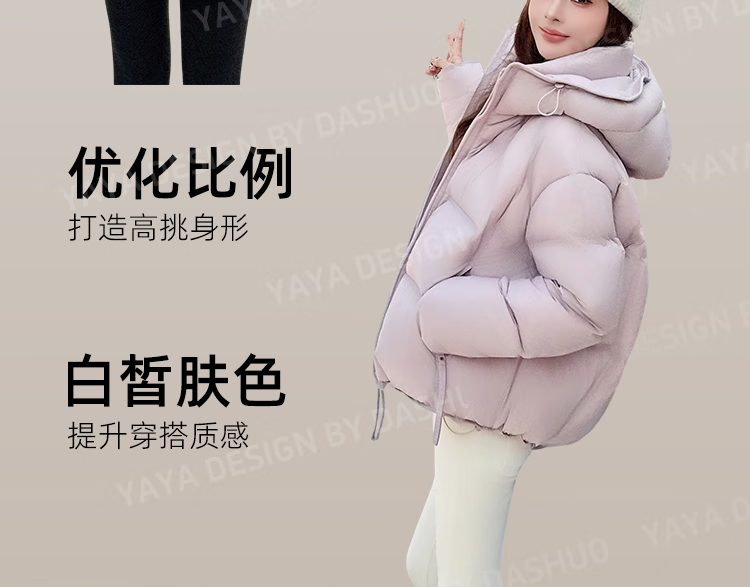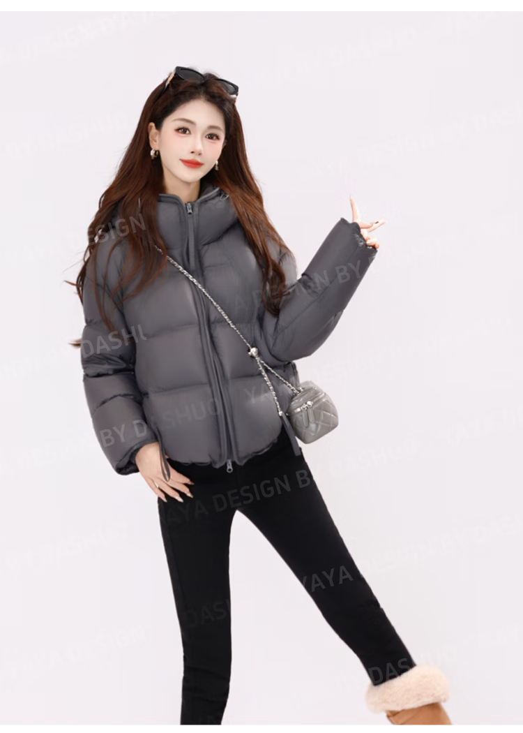Ducky Yunduo Down Jacket Women's Streamer Puff 2025 Winter New Short Style Small Bread Jacket Moonlight Gray M