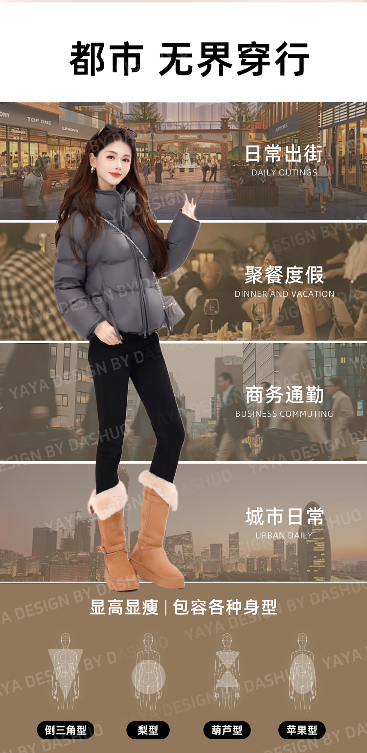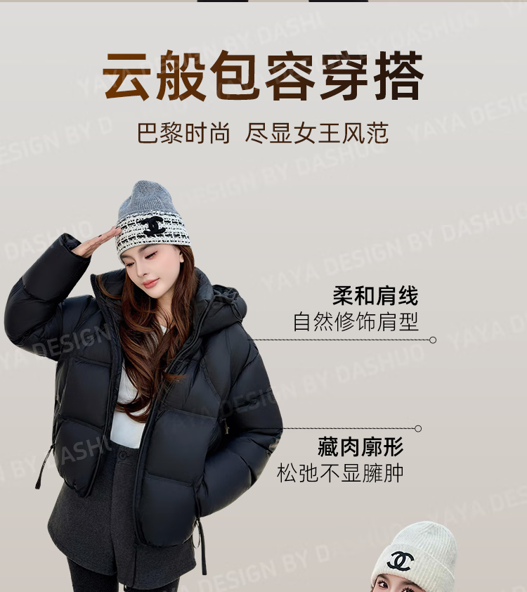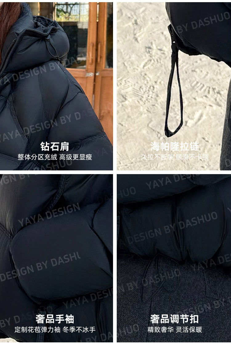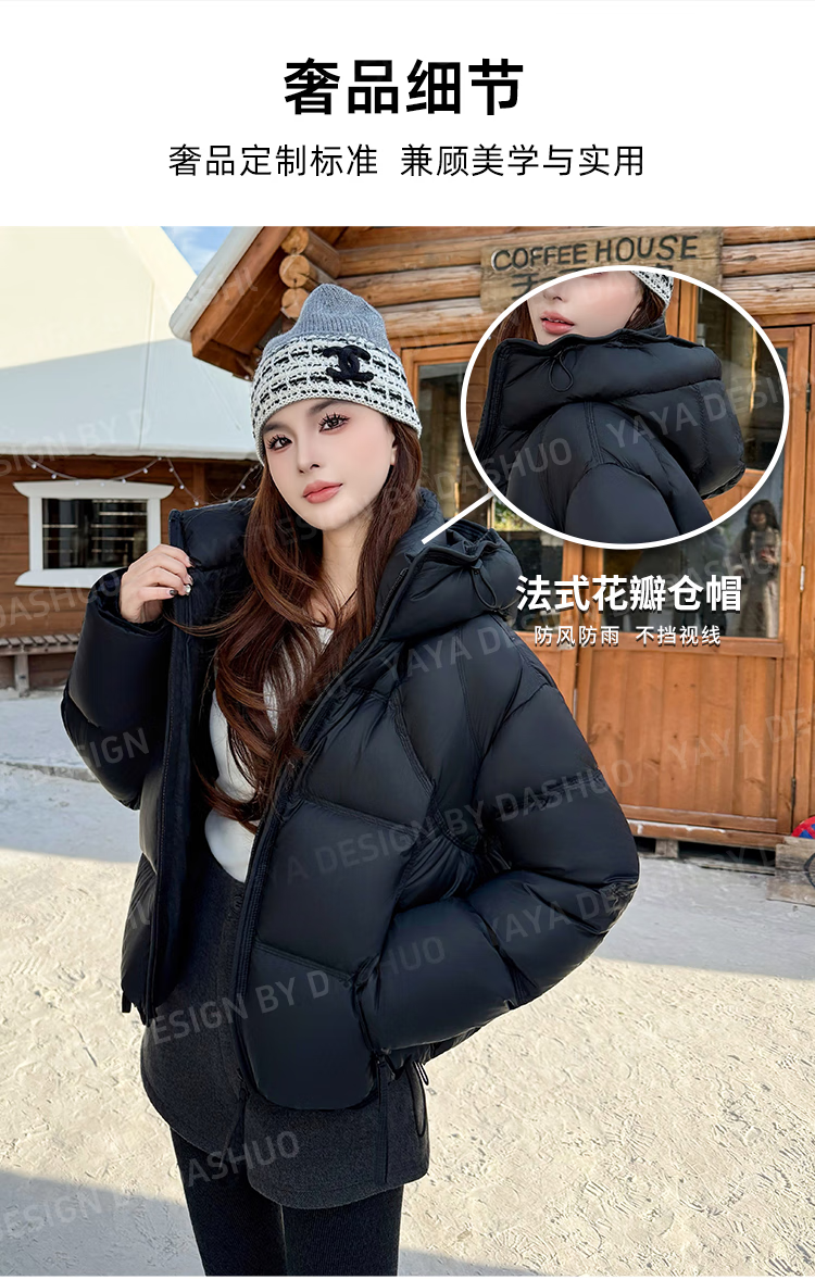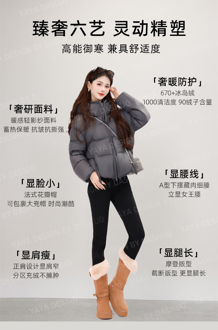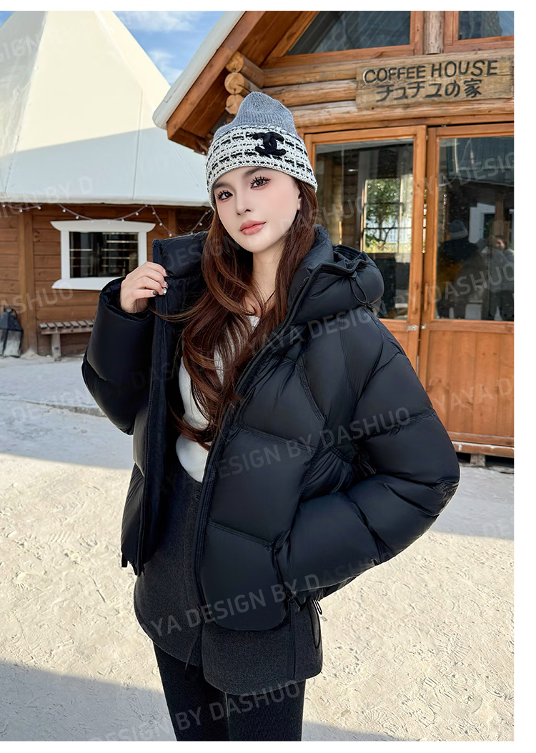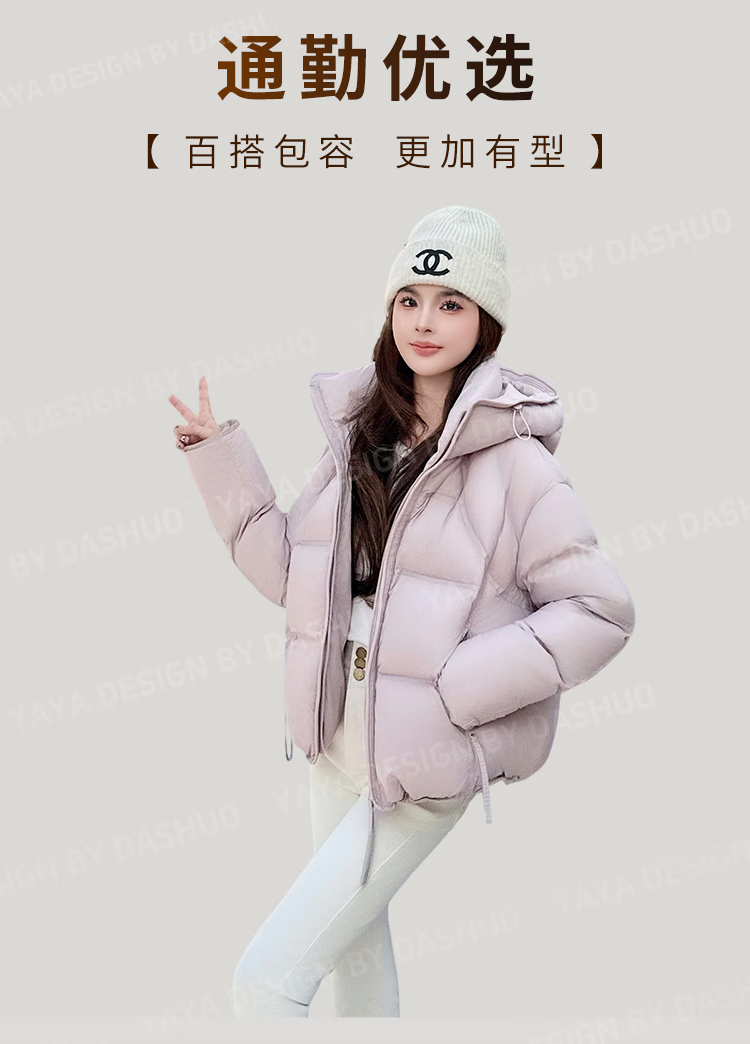 Ducky Yunduo Down Jacket Women's Streamer Puff 2025 Winter New Short Style Small Bread Jacket Moonlight Gray M