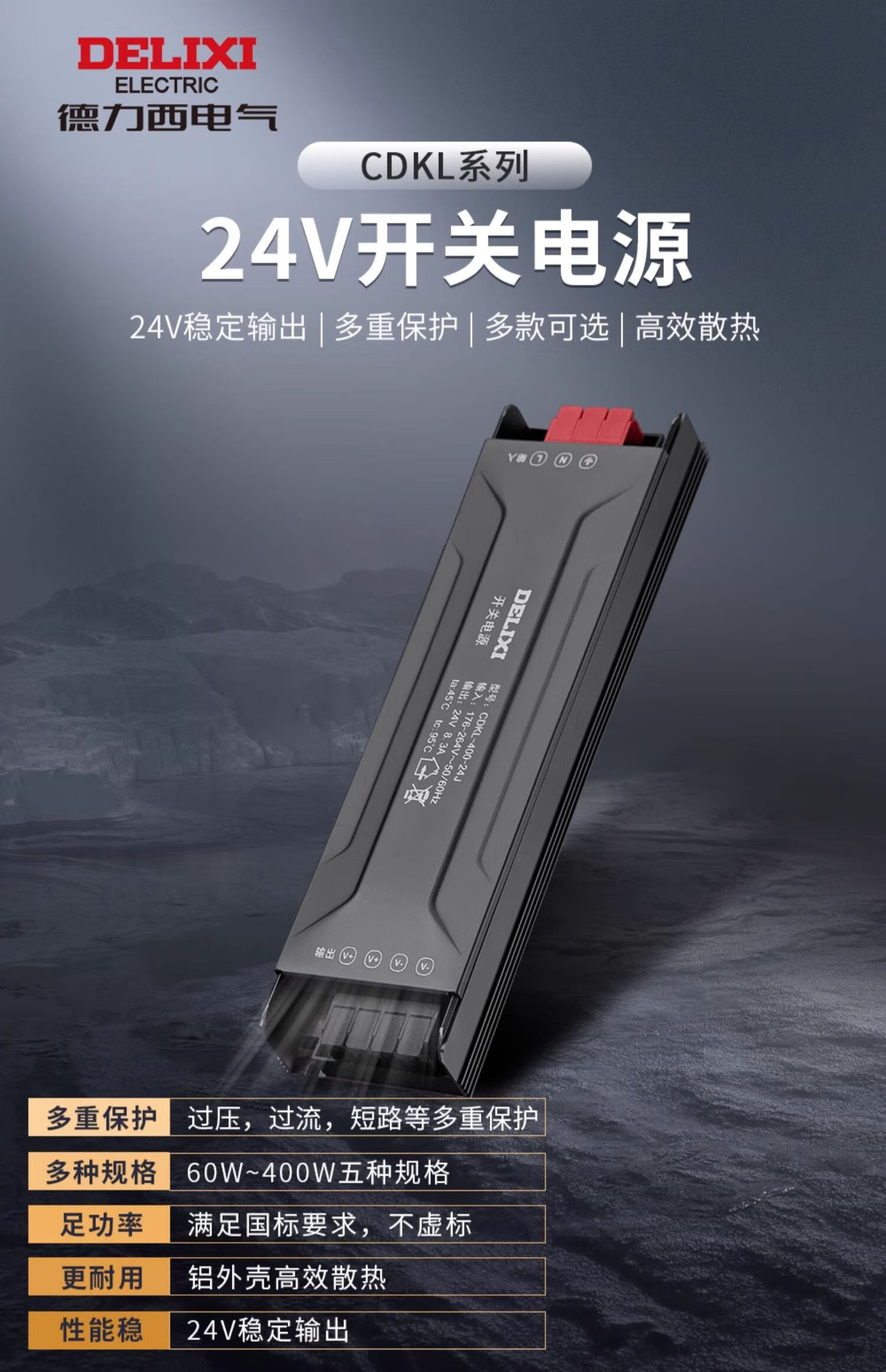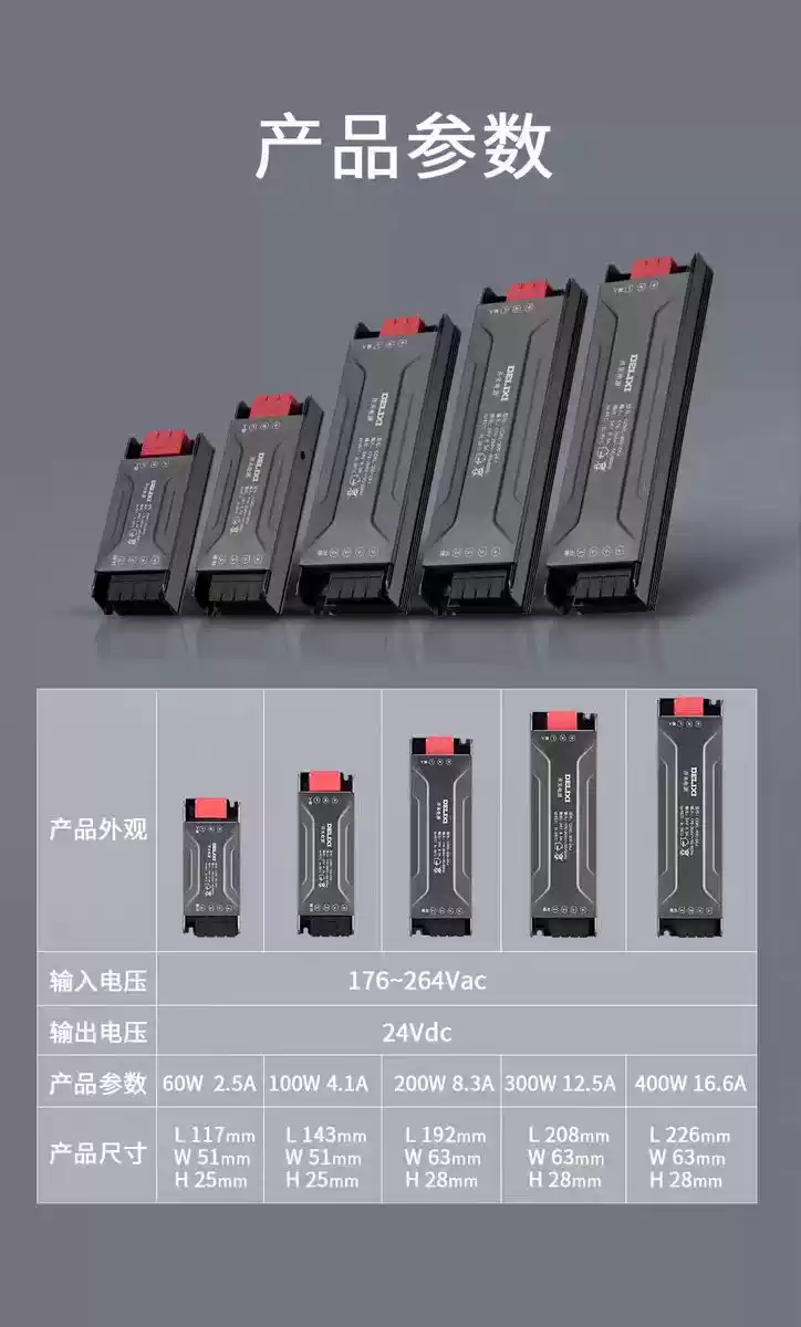 Delixi switching power supply 24V low voltage 12V linear light strip transformer 220V to DC switching power supply 60W24V2.5A switching power supply