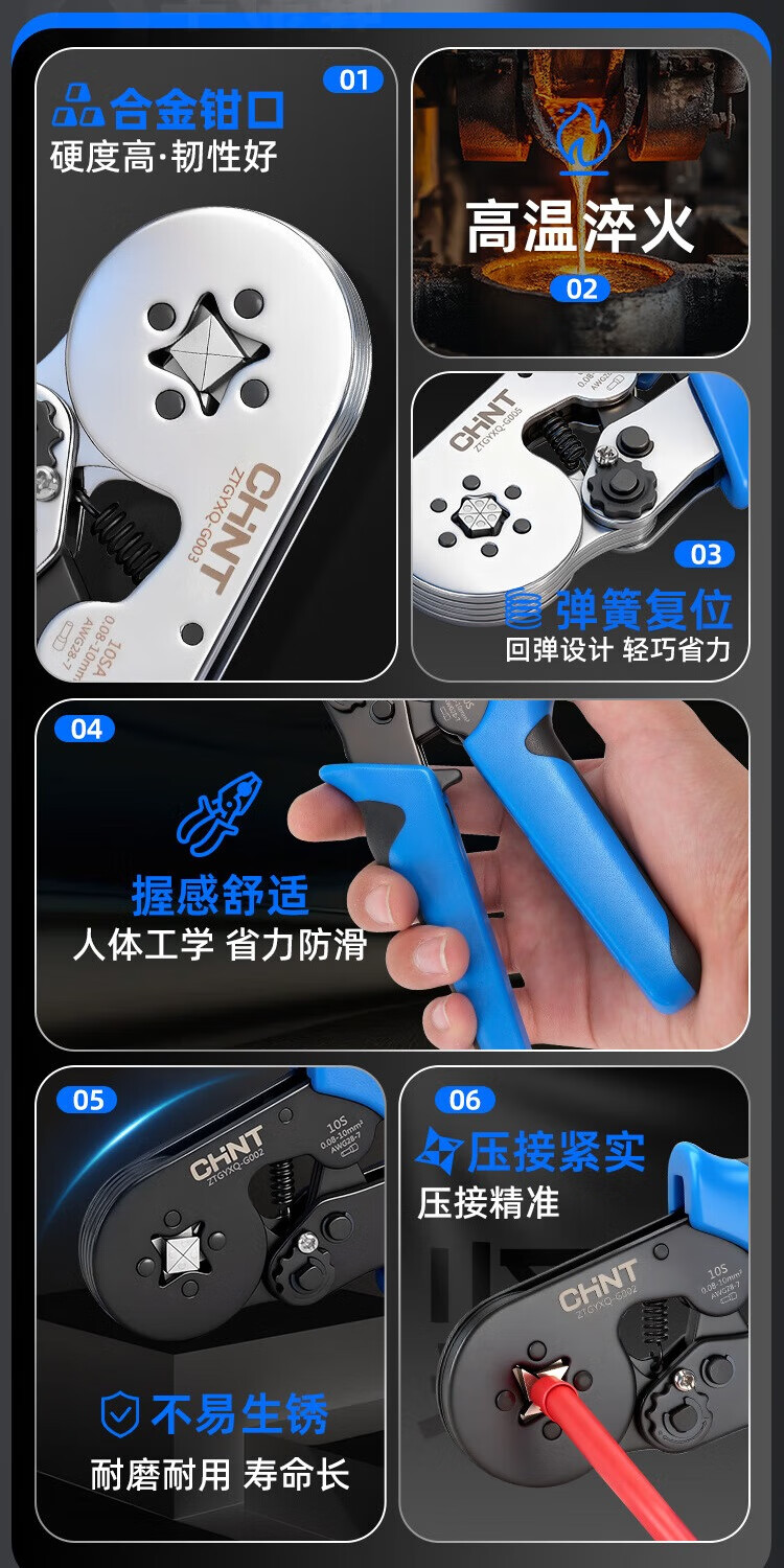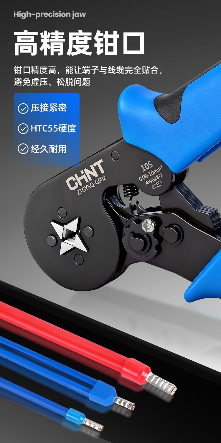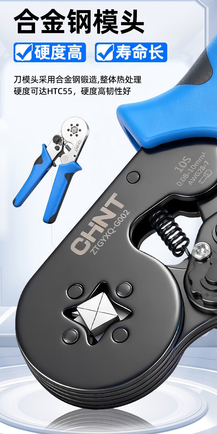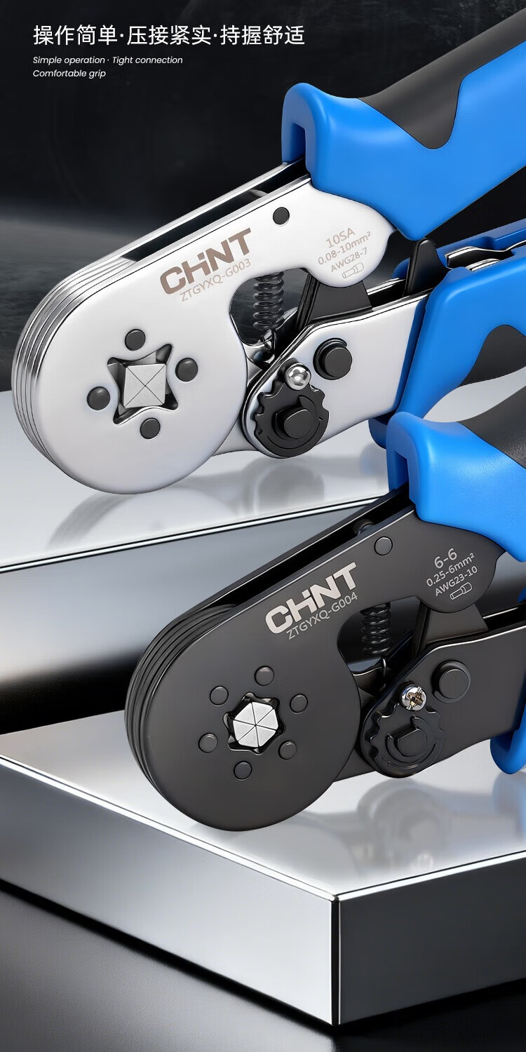 Chint tube type crimping pliers VE needle type cold crimping pliers TE terminal block cold crimping pliers electrician special terminal pliers HSC8 6-4A (range 0.25-10mm) quadrilateral