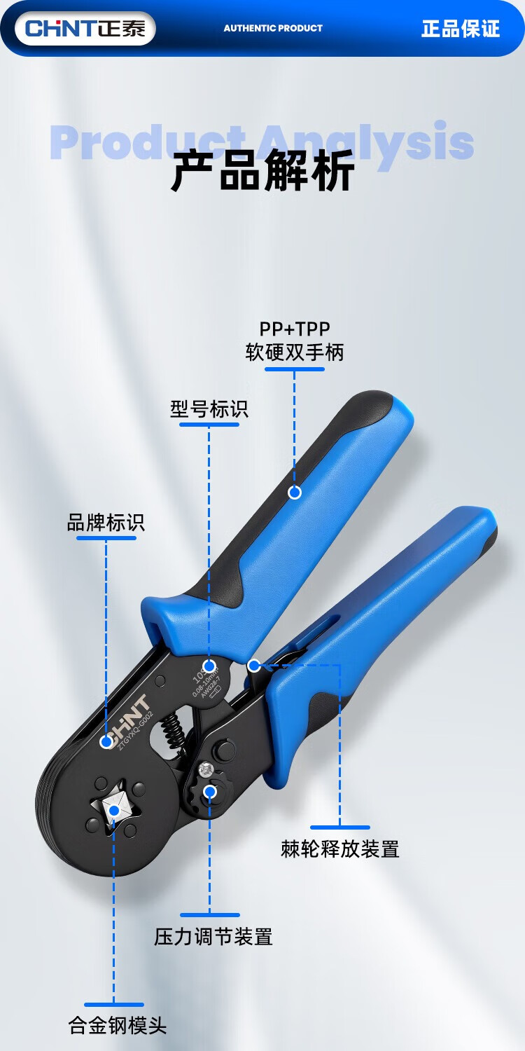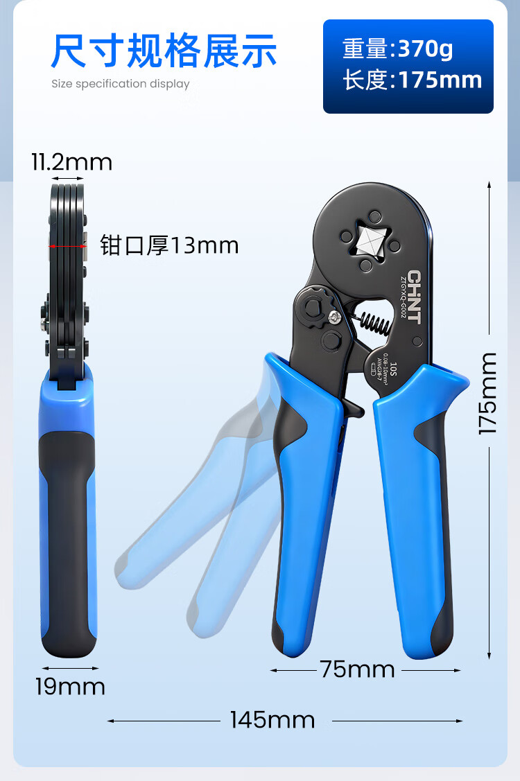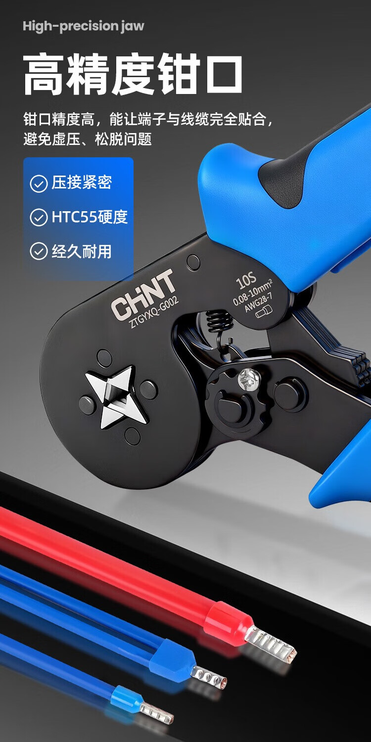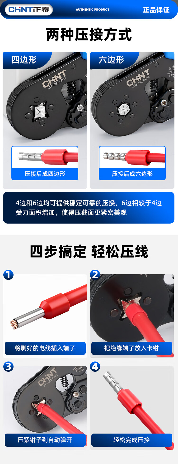 Chint tube type crimping pliers VE needle type cold crimping pliers TE terminal block cold crimping pliers electrician special terminal pliers HSC8 6-4A (range 0.25-10mm) quadrilateral