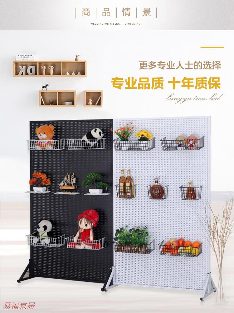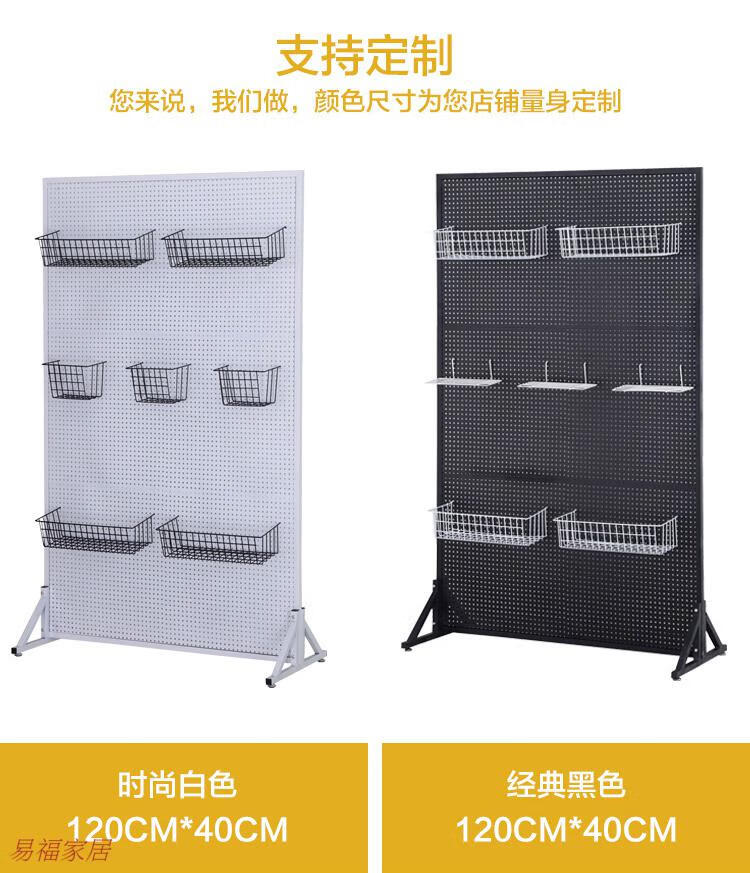 Sailotou vertical iron hole plate floor-standing round hole iron plate shelf jewelry display kitchen accessories storage rack supermarket shelf classic black single side high 100 wide 40CM free hook