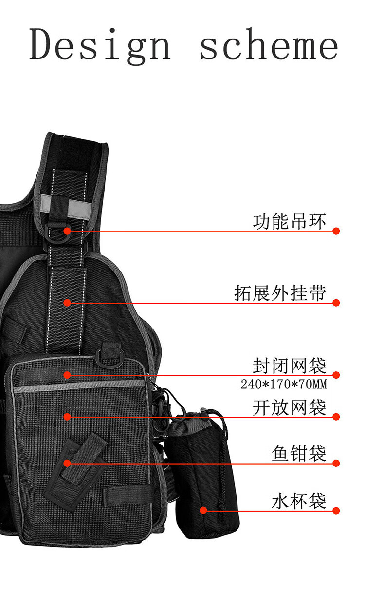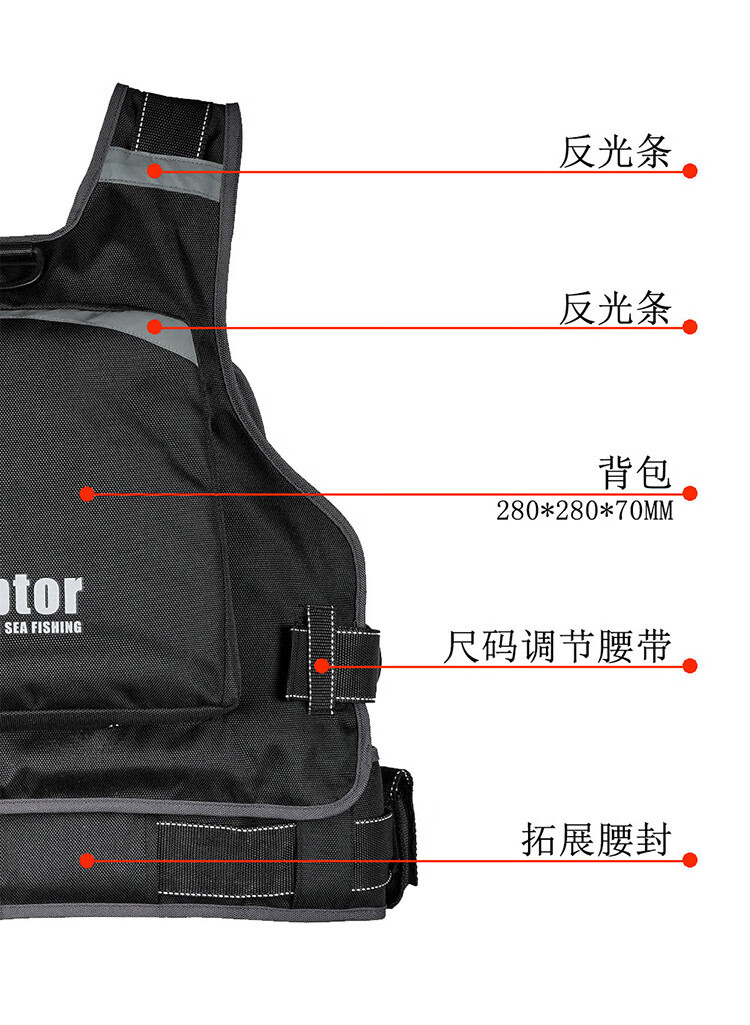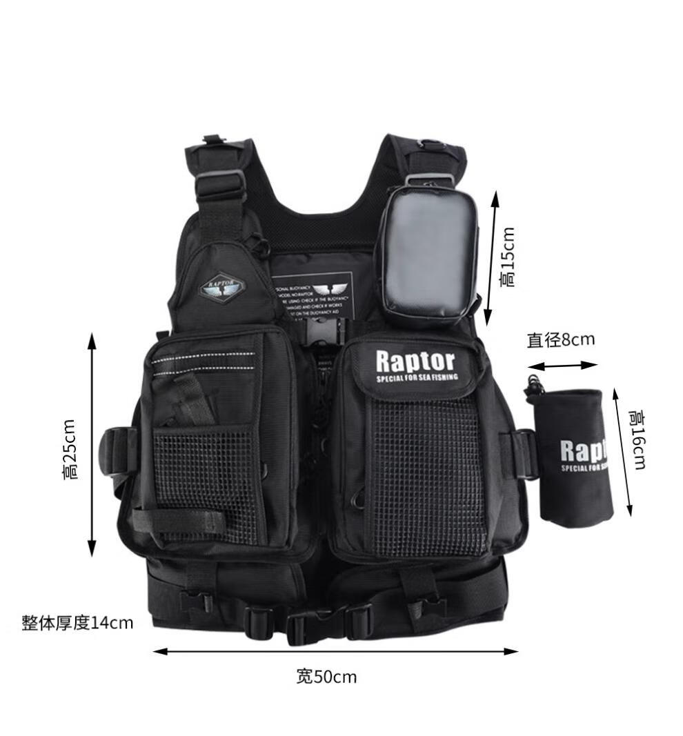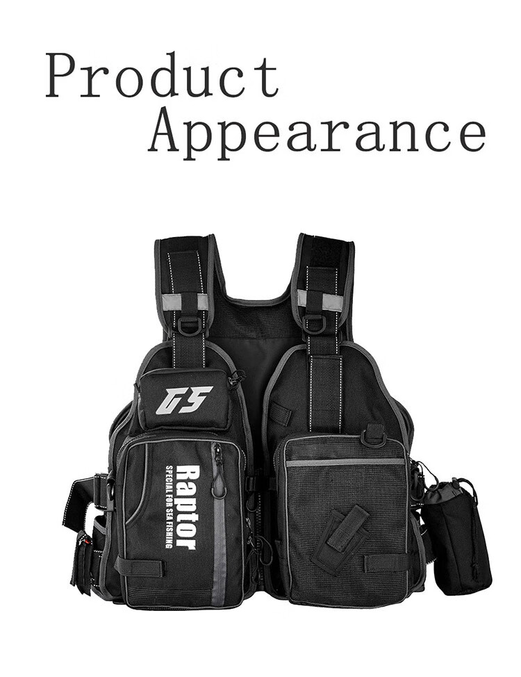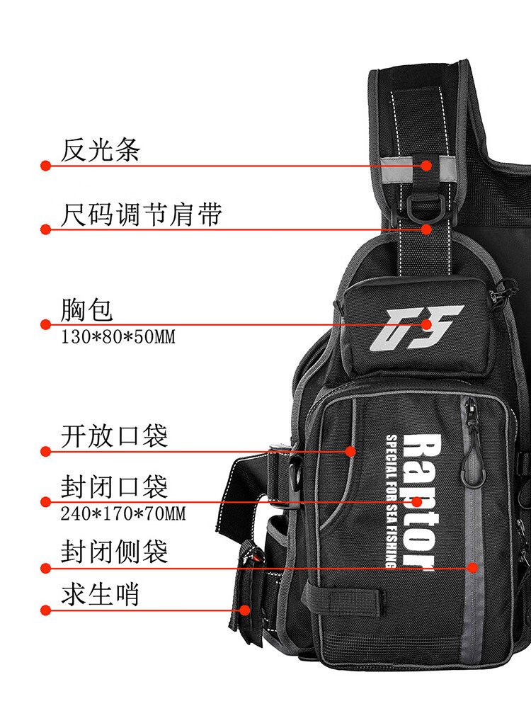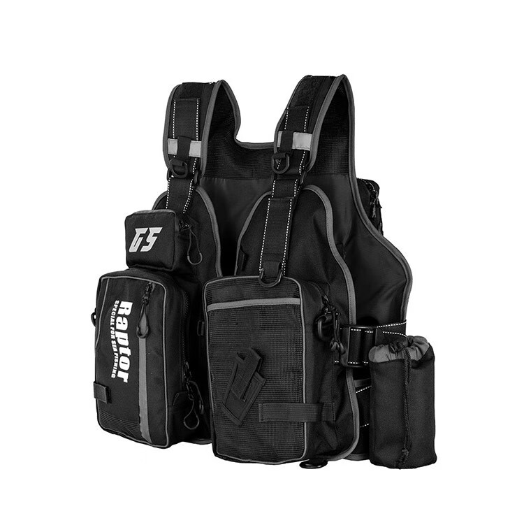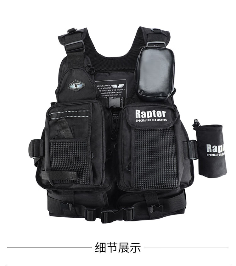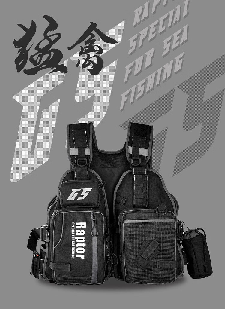 Raptor G5 fishing life jacket, rock fishing clothing, lure multi-functional fishing vest, sea fishing large buoyancy back, black (Raptor G5), one size fits all, 50KG-110KG