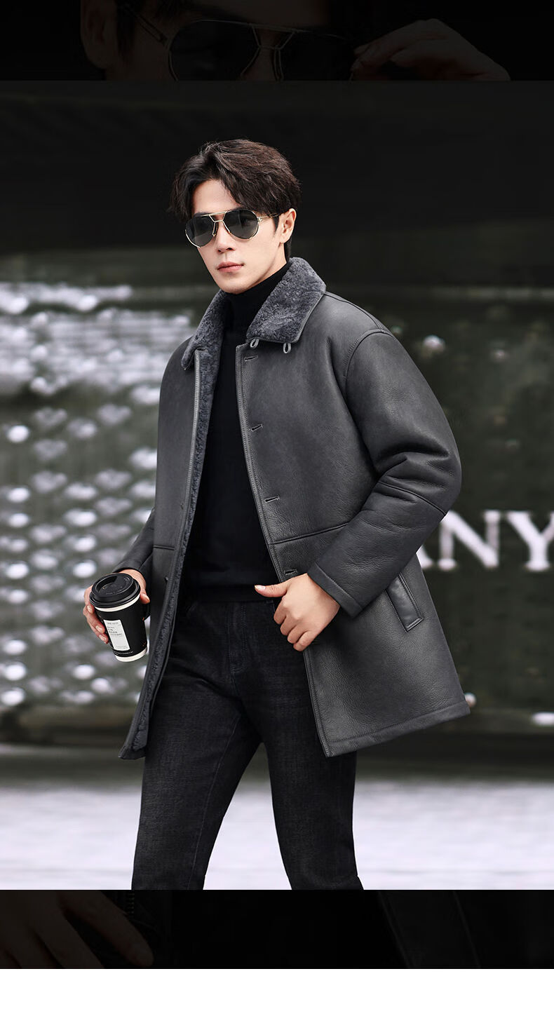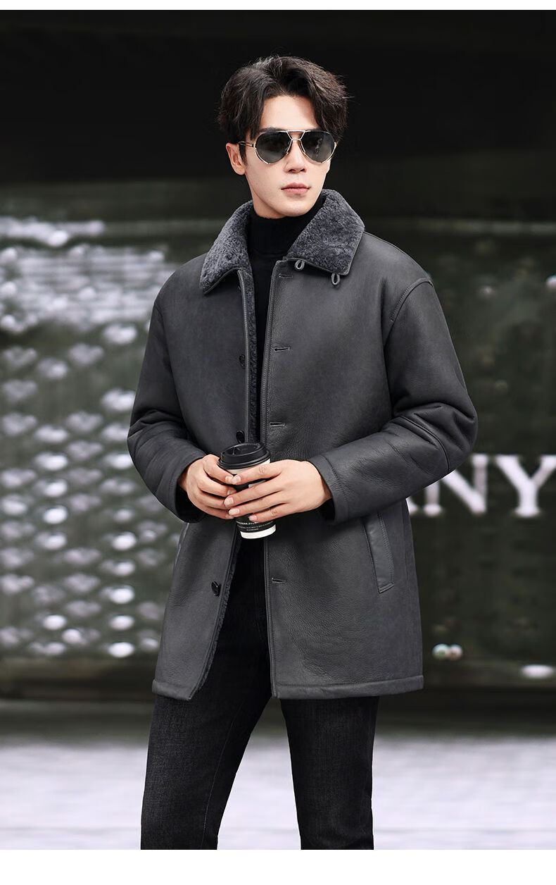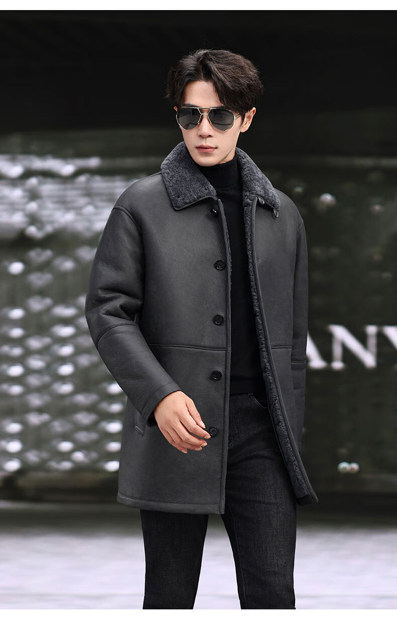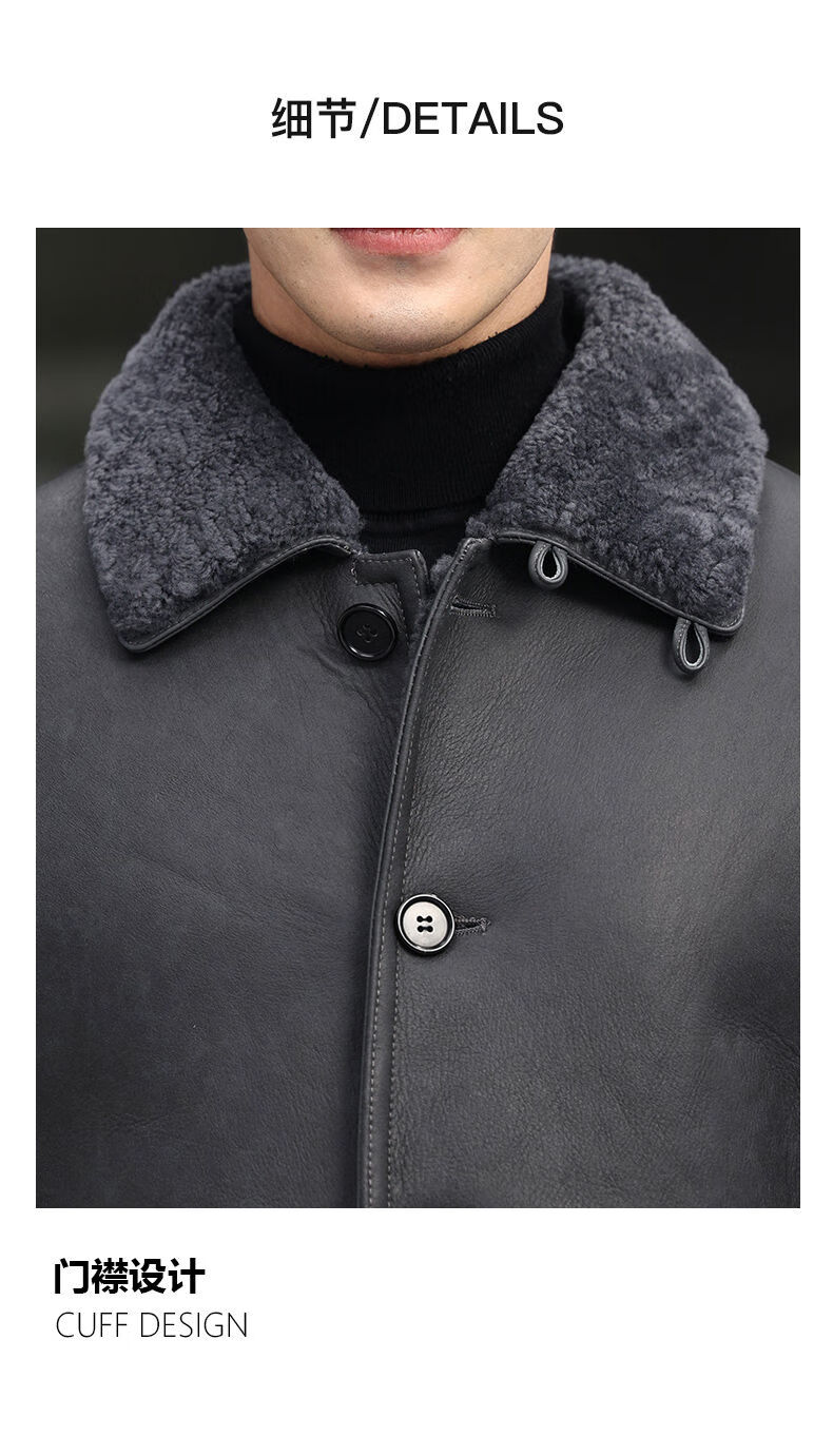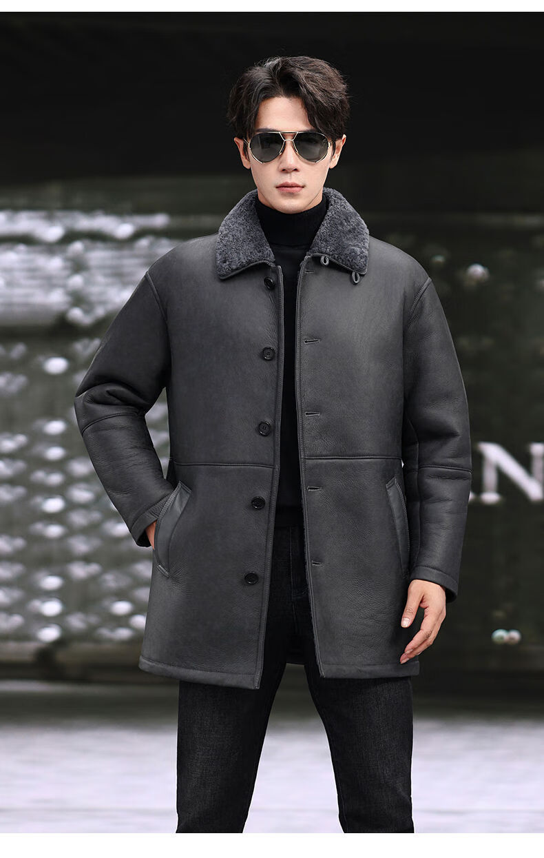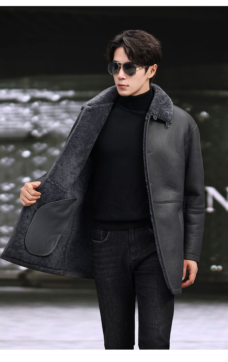 Yiwo Clothing New Original Ecological Fur One-piece Men's Genuine Leather Jacket Mid-Length Windbreaker Lapel Casual Warm Fur Jacket Winter Gray M 165M