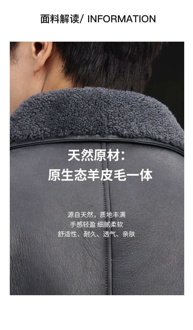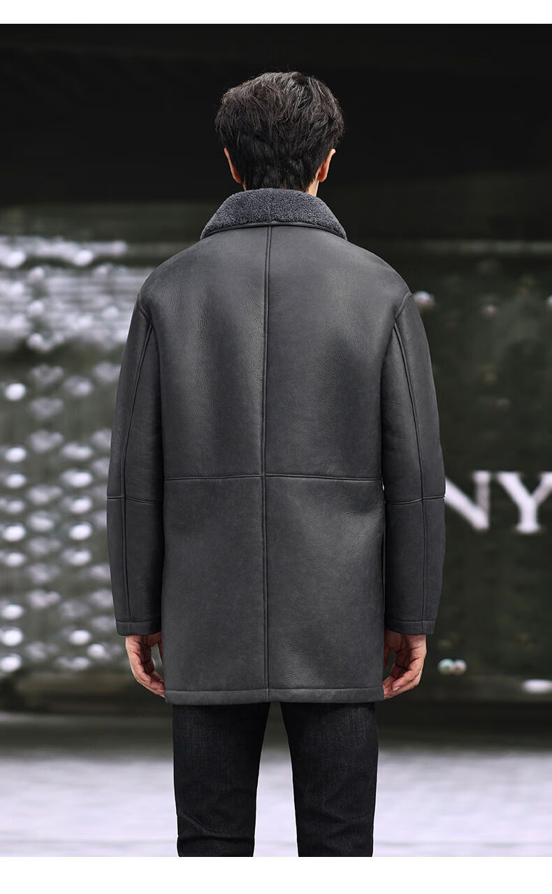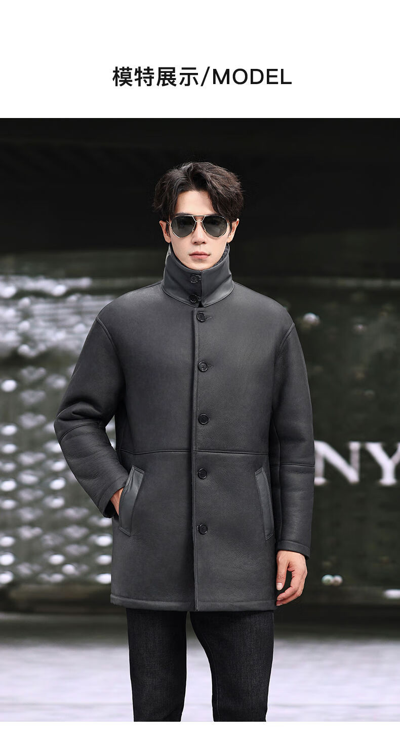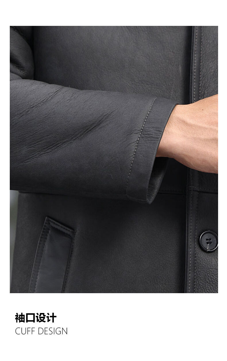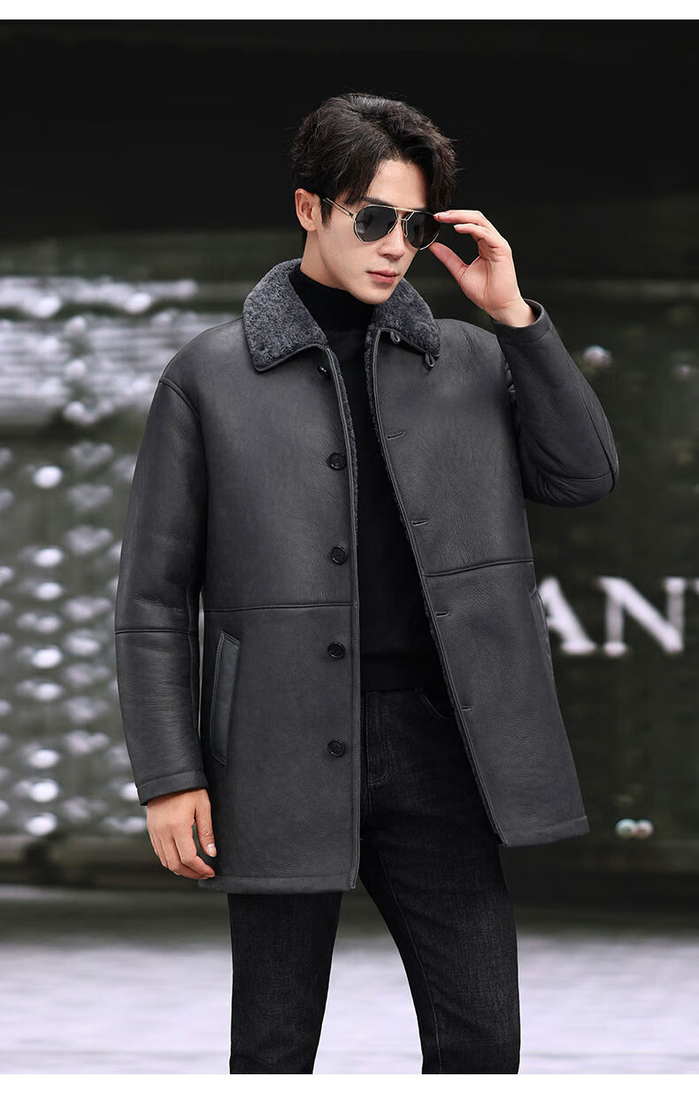 Yiwo Clothing New Original Ecological Fur One-piece Men's Genuine Leather Jacket Mid-Length Windbreaker Lapel Casual Warm Fur Jacket Winter Gray M 165M