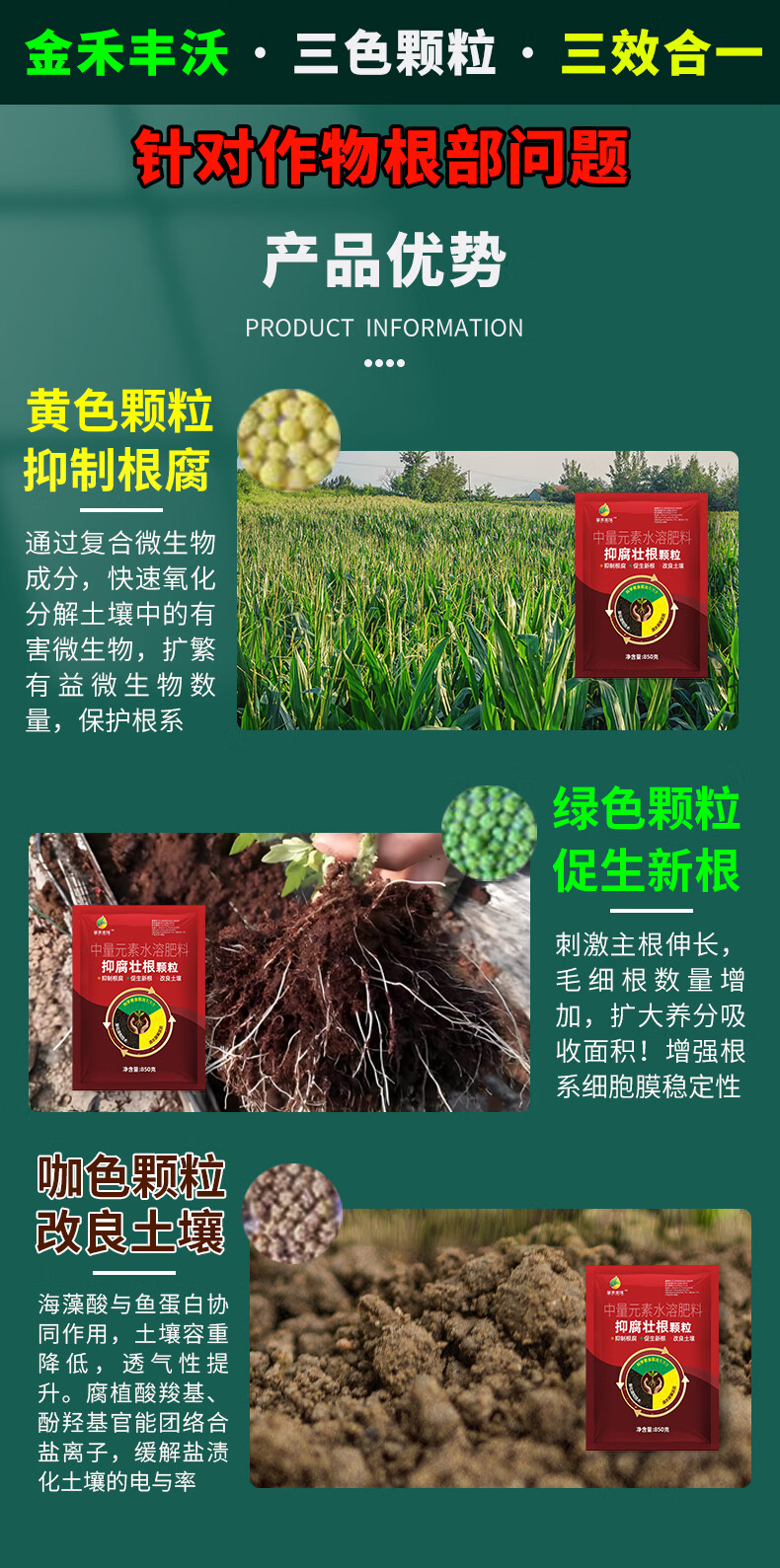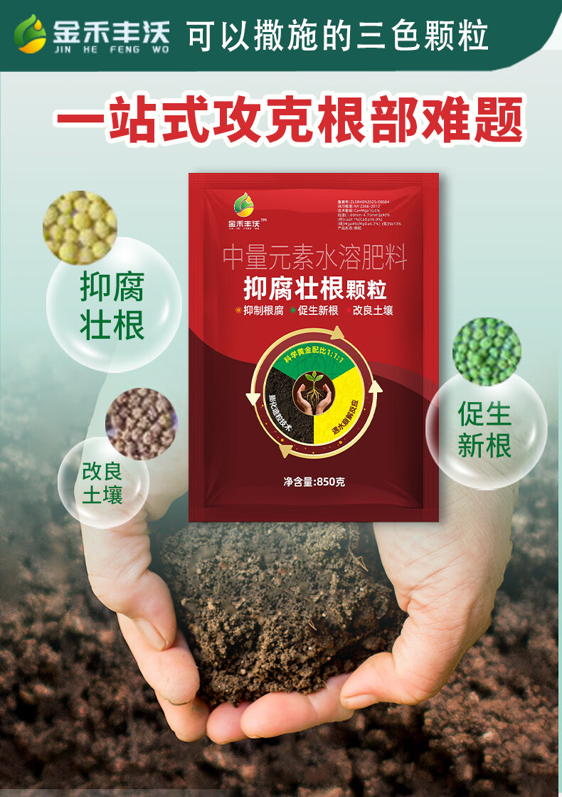 Jinhe Fengwo Anti-corrosion and Root-Strengthening Granules, three-in-one to prevent root rot, lift green seedlings, strengthen roots and improve soil, 3 bags - Affordable Pack