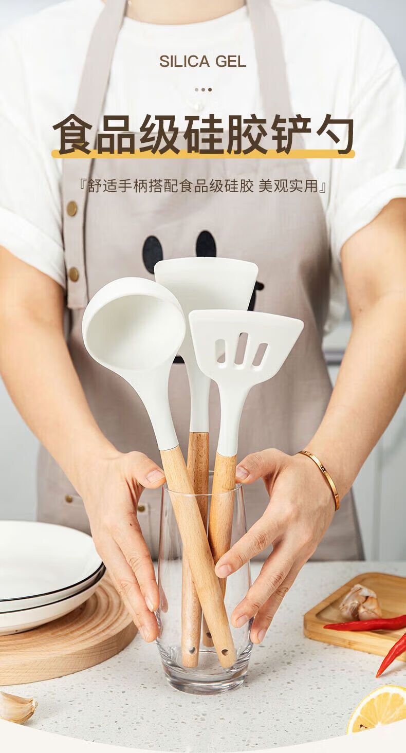 Yuqixi silicone spatula, non-stick cooking spatula, soup spoon, leaking spatula, household food-grade high-resistant spatula/high temperature resistance/no odor