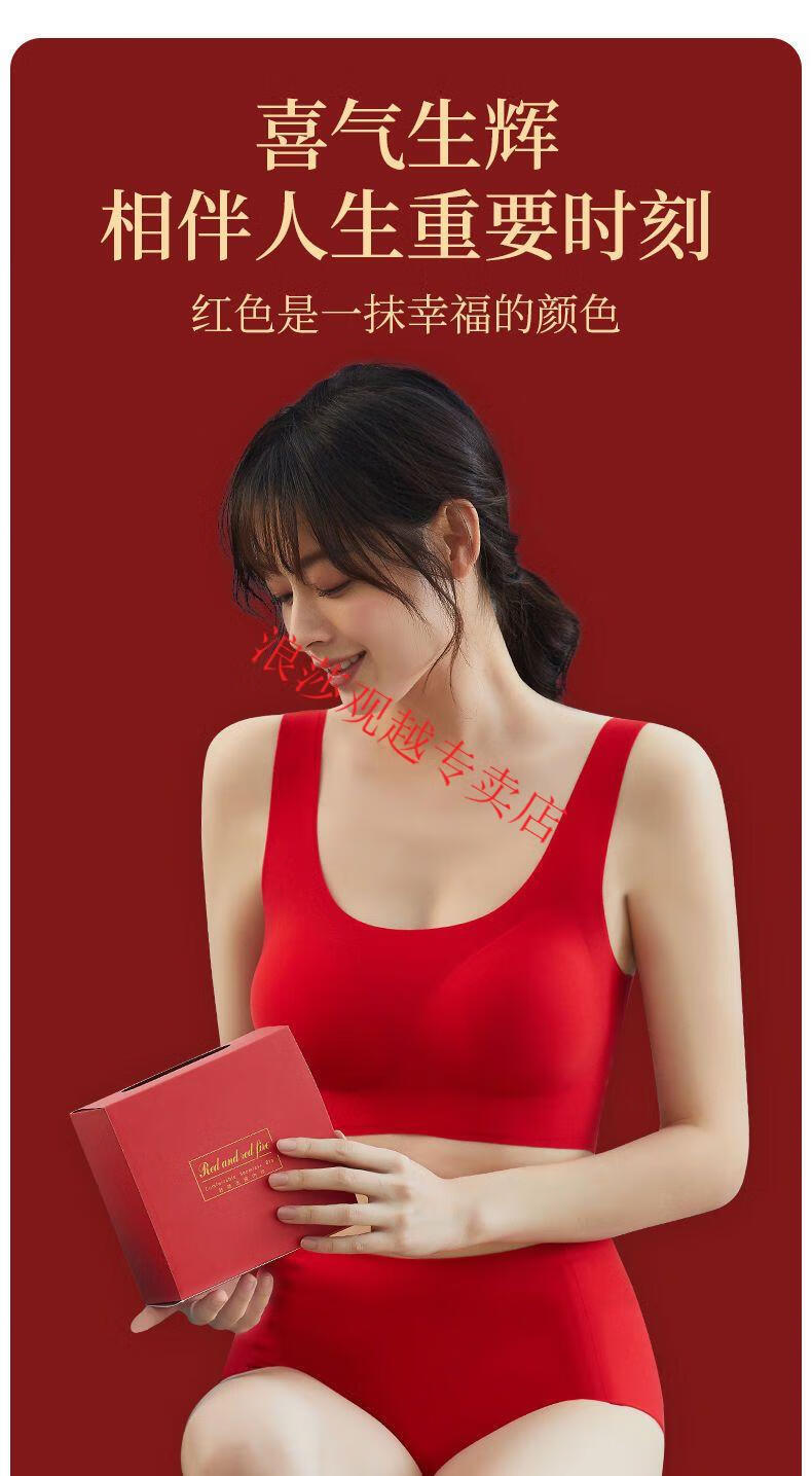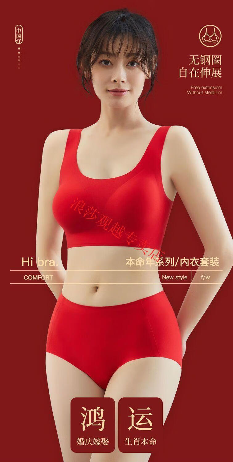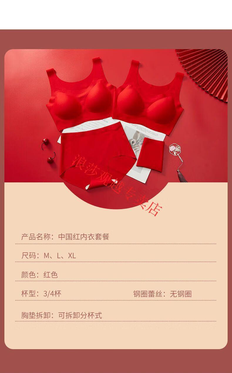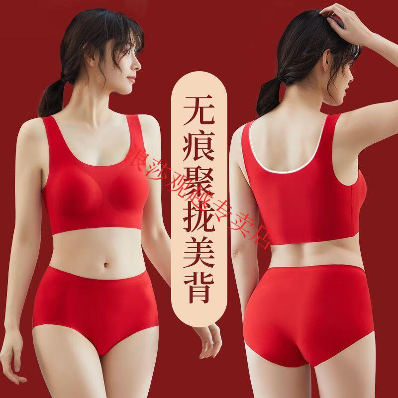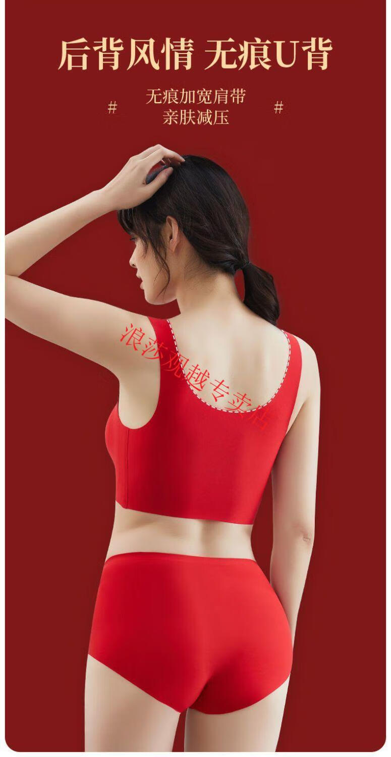 LangSha (LangSha) Big Red Zodiac Year Underwear Women's Push-Up Seamless Wireless Beautiful Vest Style Bra Set Wedding Year of the Horse Two-piece Set Zodiac Red Suit*2 L Recommendation 100-125Jin Jin is equal to 0.5 kg