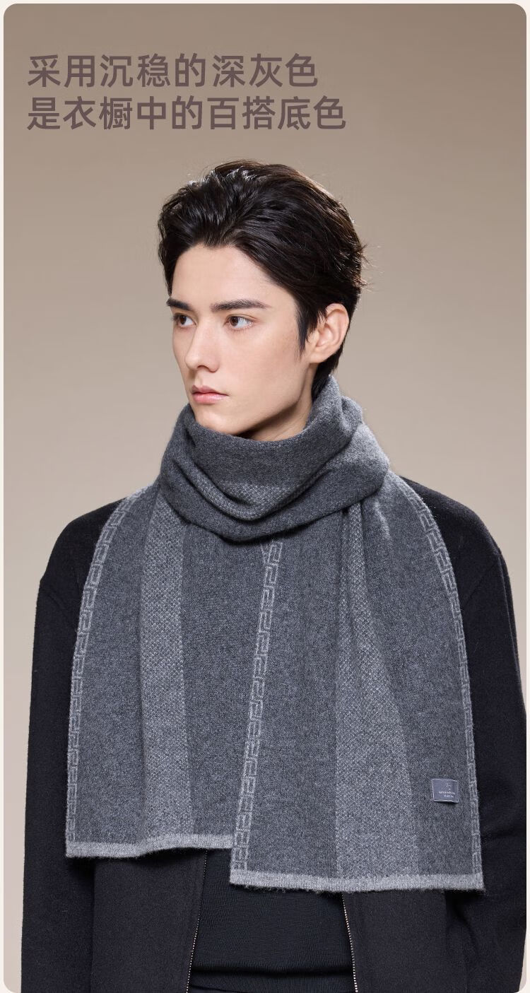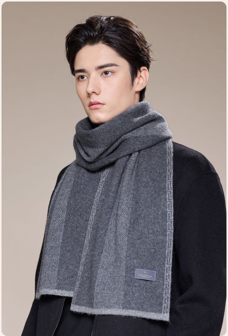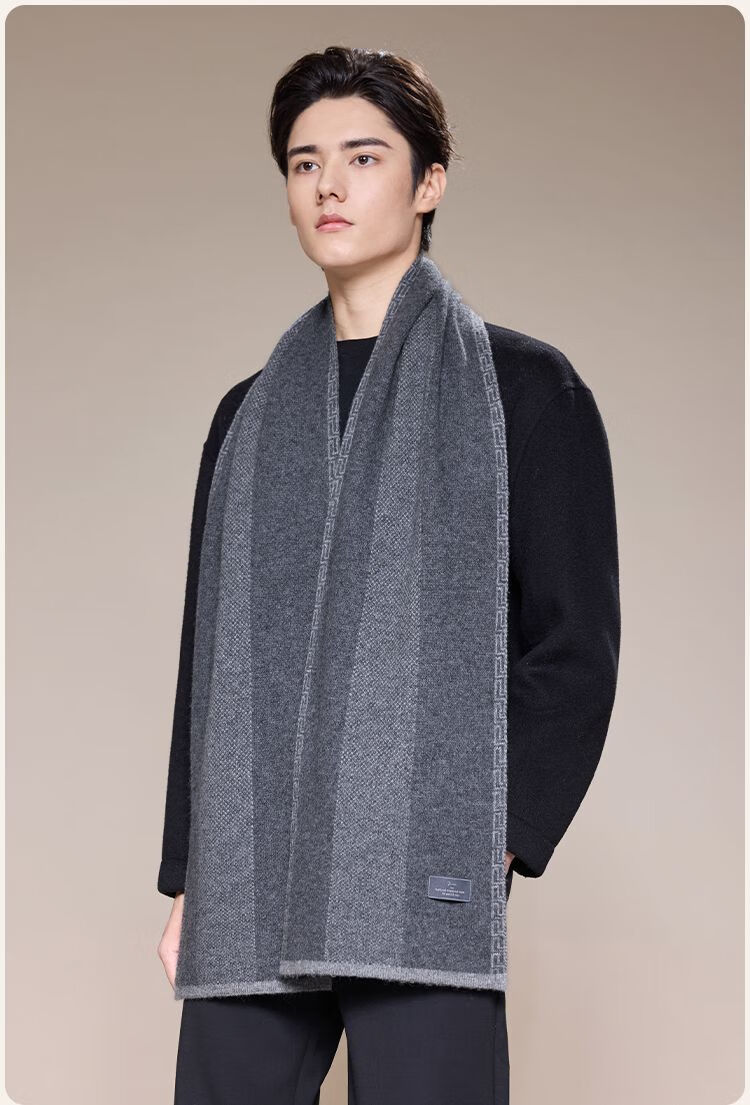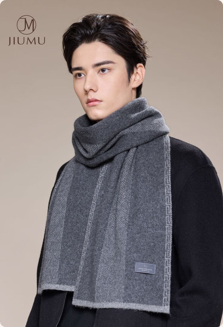 Jiumu Men's Scarf Autumn and Winter Thickened Wool Warm Scarf for Boys' Birthday Gift Box Gray