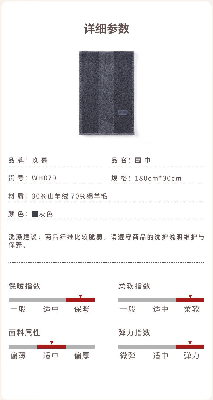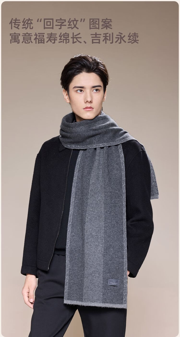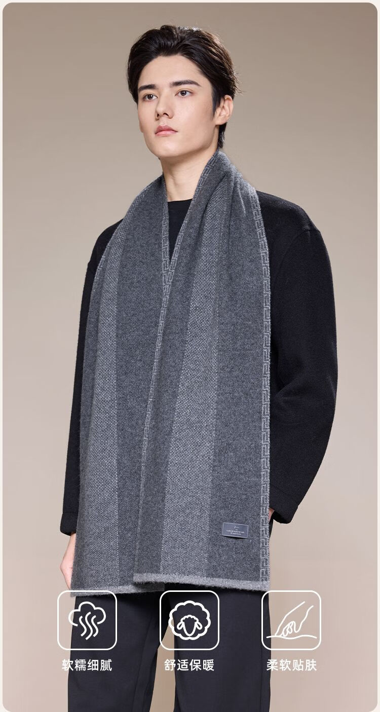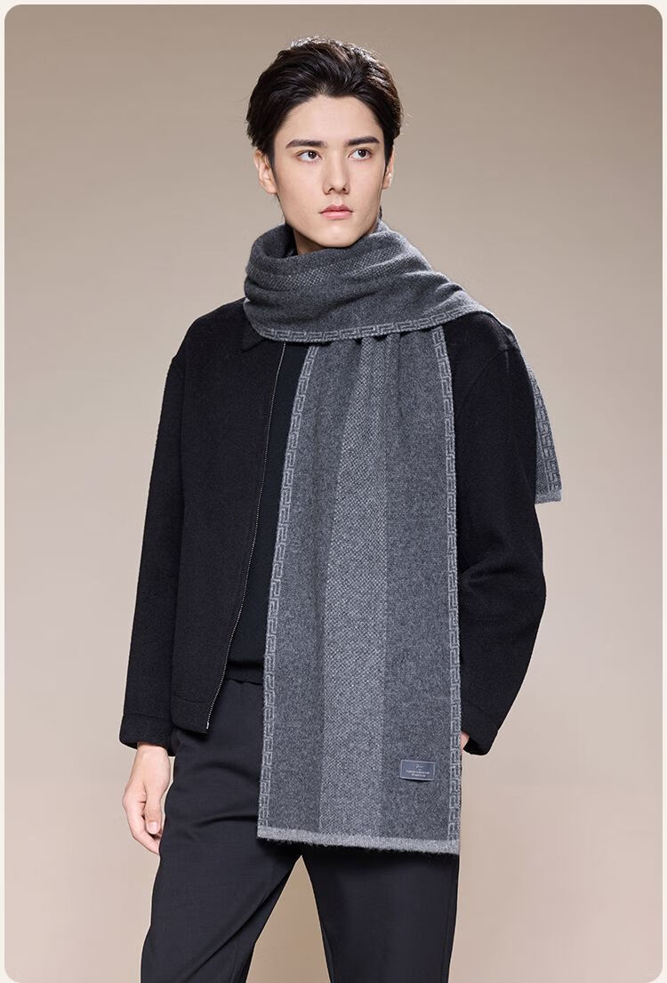 Jiumu Men's Scarf Autumn and Winter Thickened Wool Warm Scarf for Boys' Birthday Gift Box Gray
