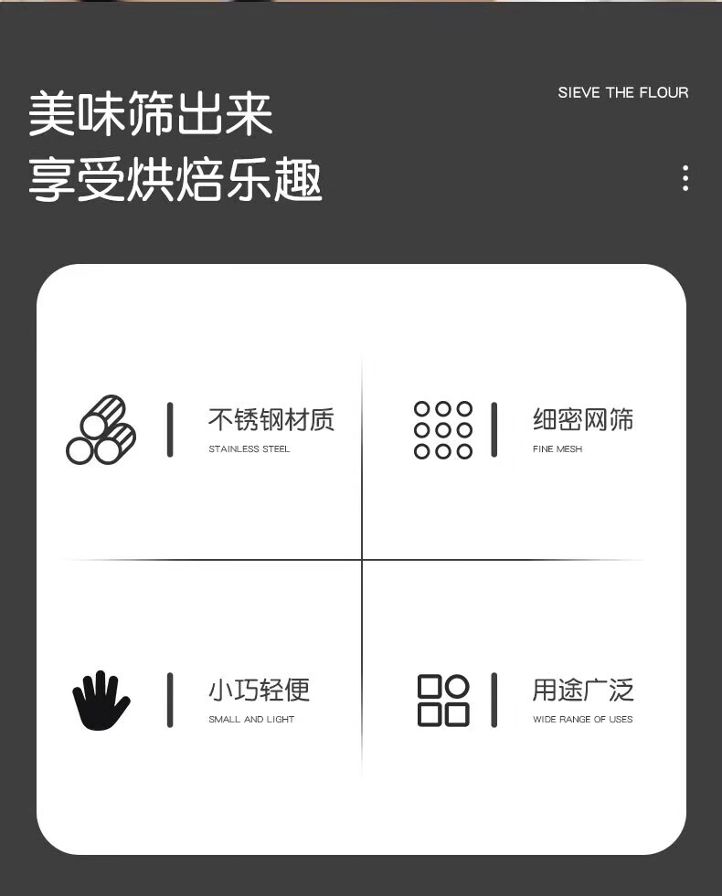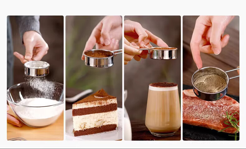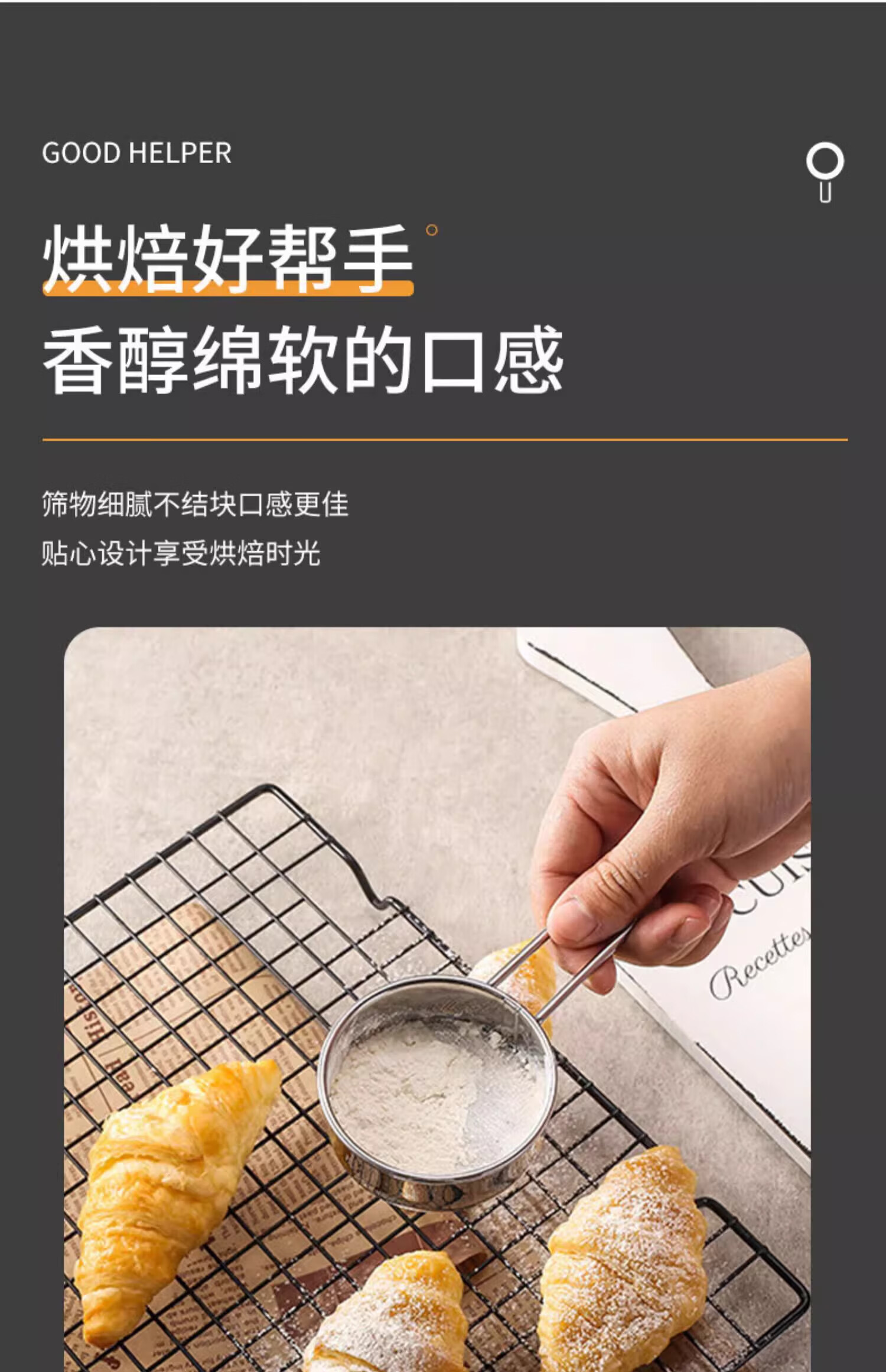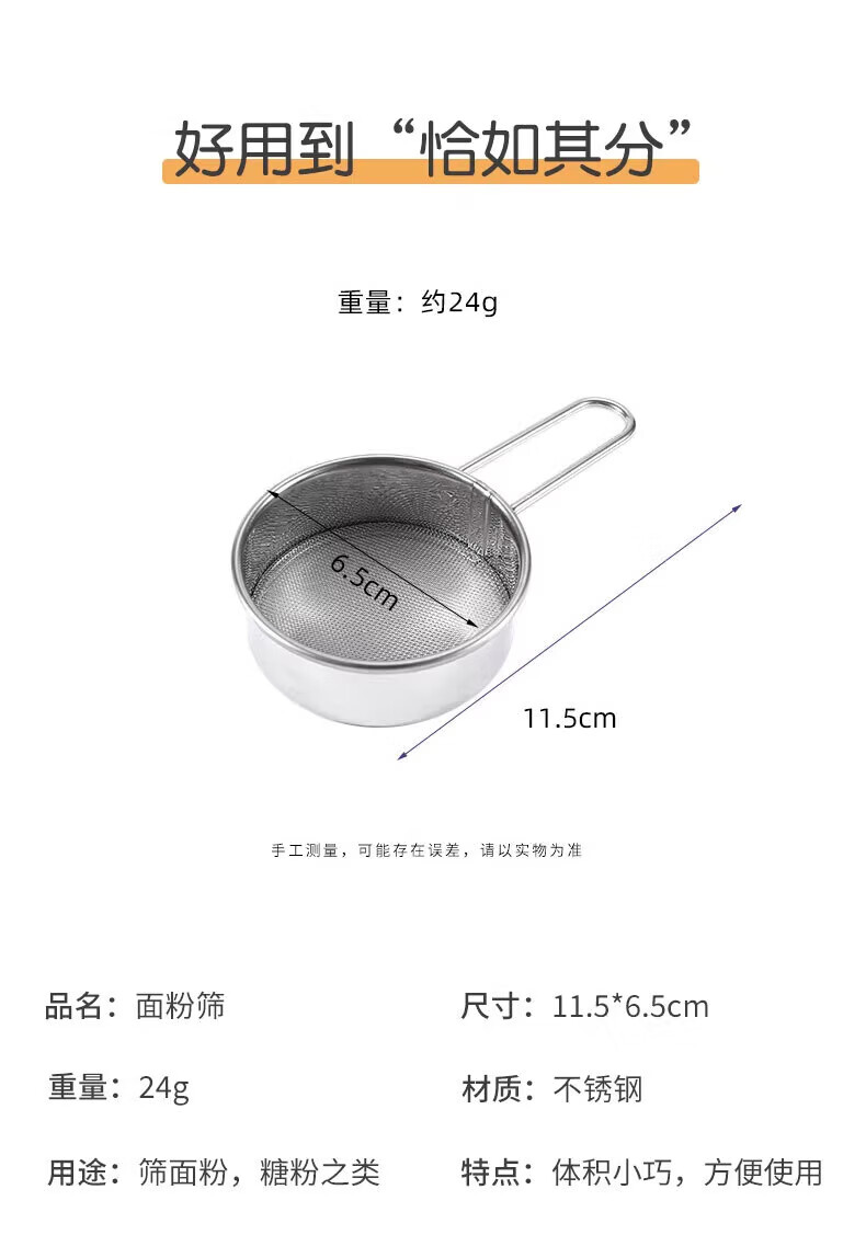 OIMG German stainless steel flour sieve handheld powder spreader fine mesh sieve cocoa powder sugar powder special household mini sugar powder sieve one pack 304 stainless steel sieve
