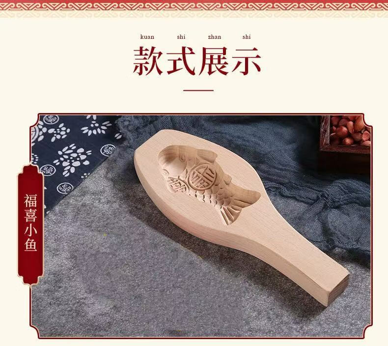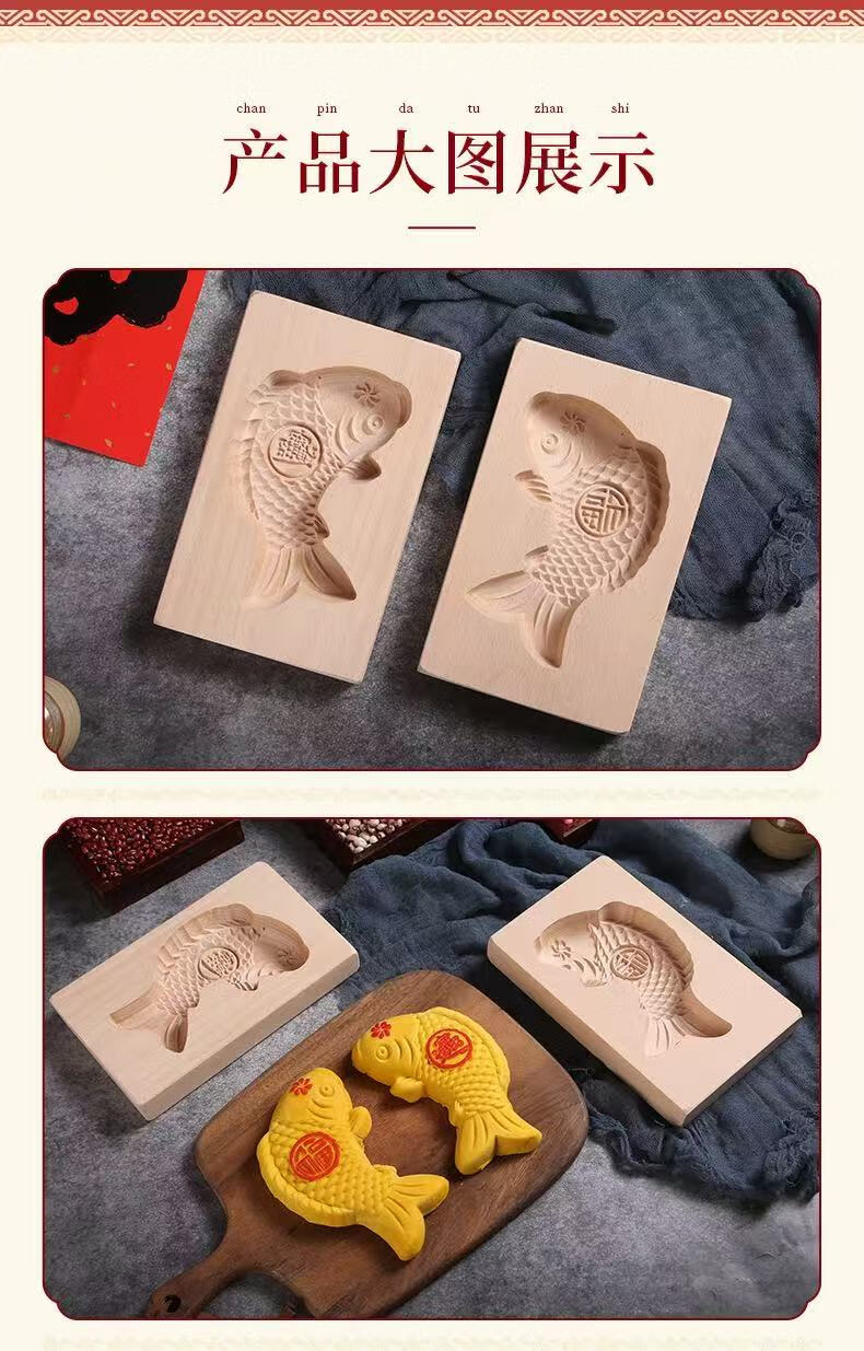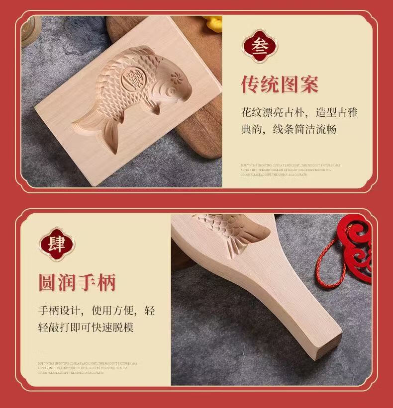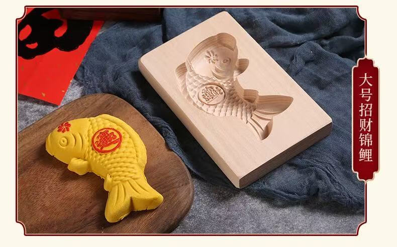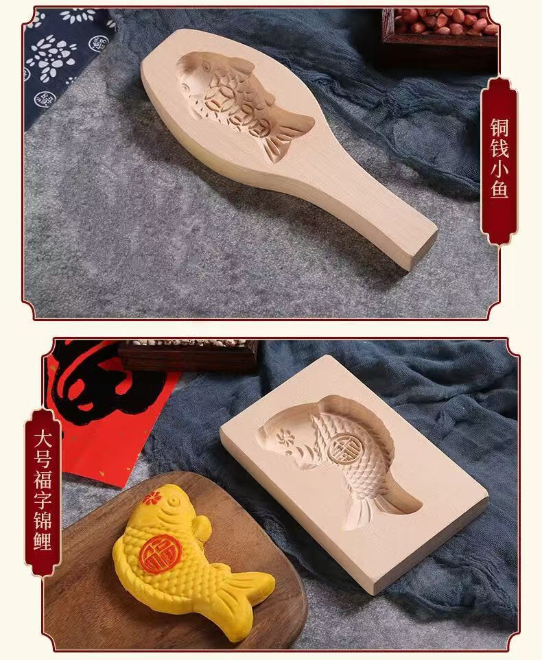 New wooden baking mold for Chinese New Year steamed steamed buns with fish-knocked noodles and fish-printed steamed buns wooden molds. Defective items - random styles - mind taking photos with caution.
