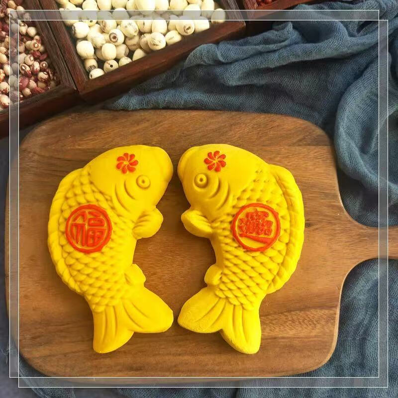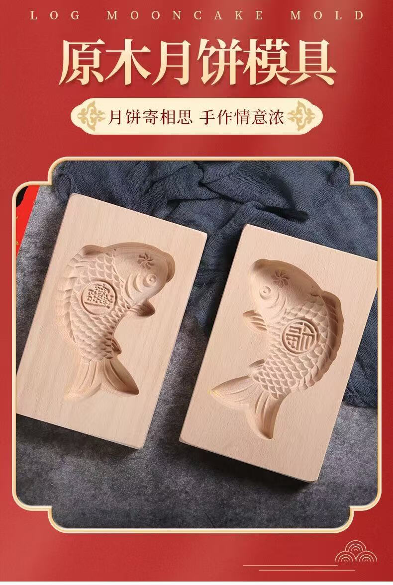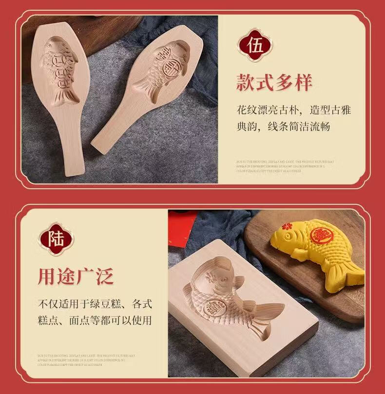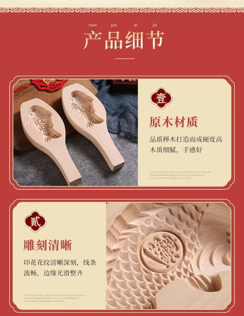 New wooden baking mold for Chinese New Year steamed steamed buns with fish-knocked noodles and fish-printed steamed buns wooden molds. Defective items - random styles - mind taking photos with caution.
