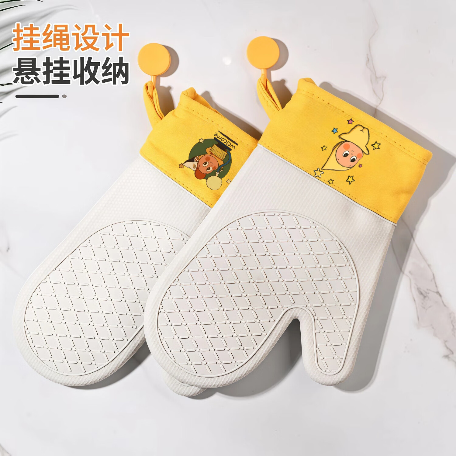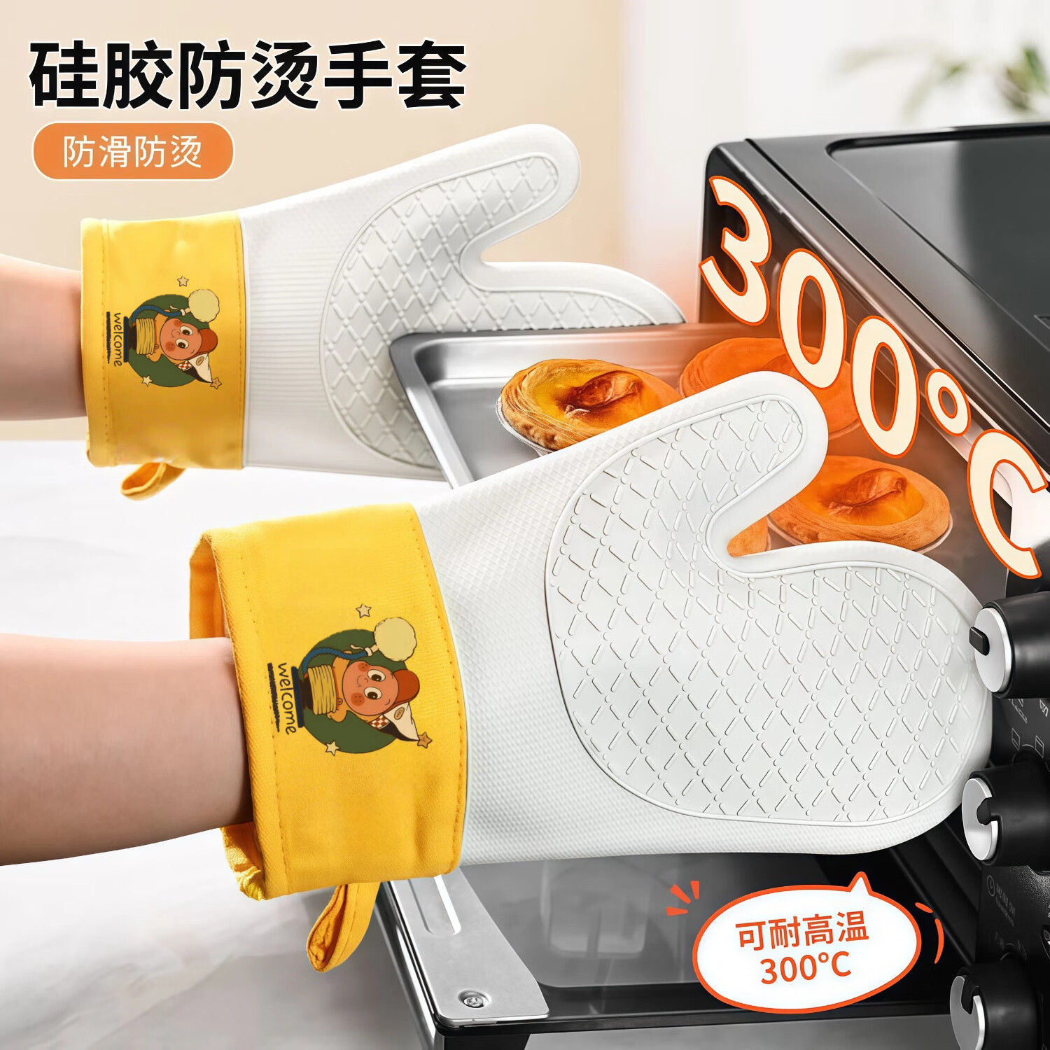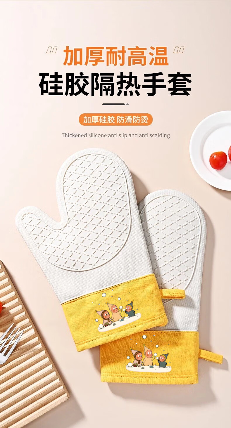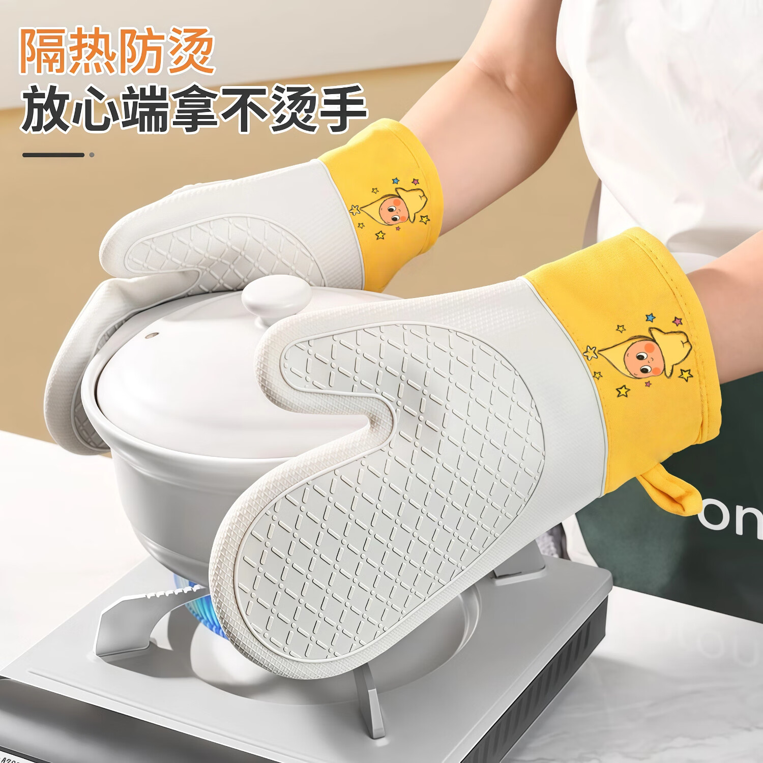 Anti-scalding gloves, heat-insulating, high-temperature resistant, thickened kitchen oven, baking, microwave oven casserole special non-slip silicone gloves, Dream Star Man, single