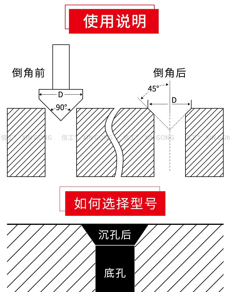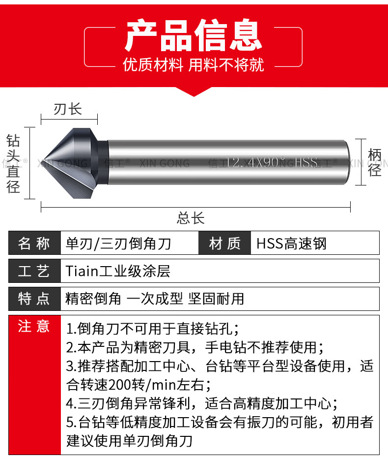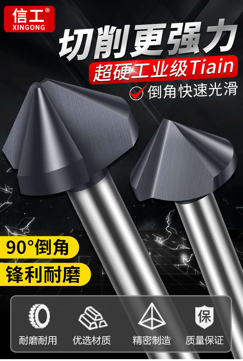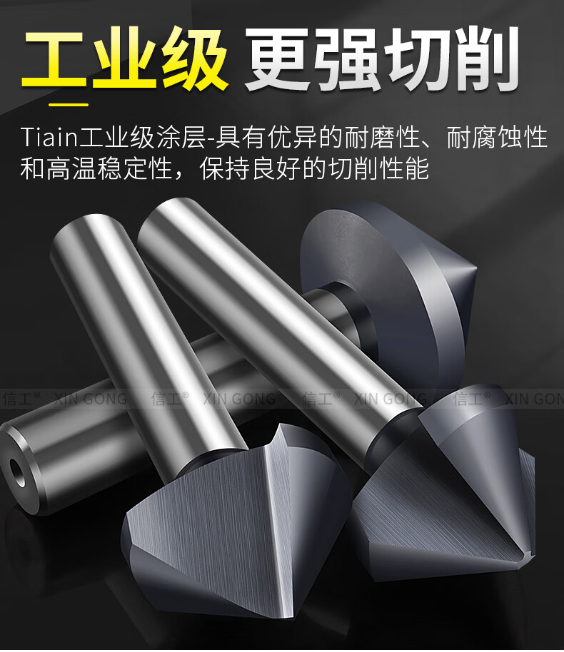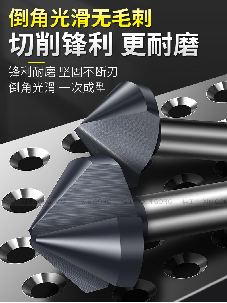 XinGong chamfering knife 90 degrees new nano-coated single-edged three-edged chamfering tool stainless steel countersunk head enlarged countersink drill bit containing cobalt and hardened three-edged 4.5*90 degrees