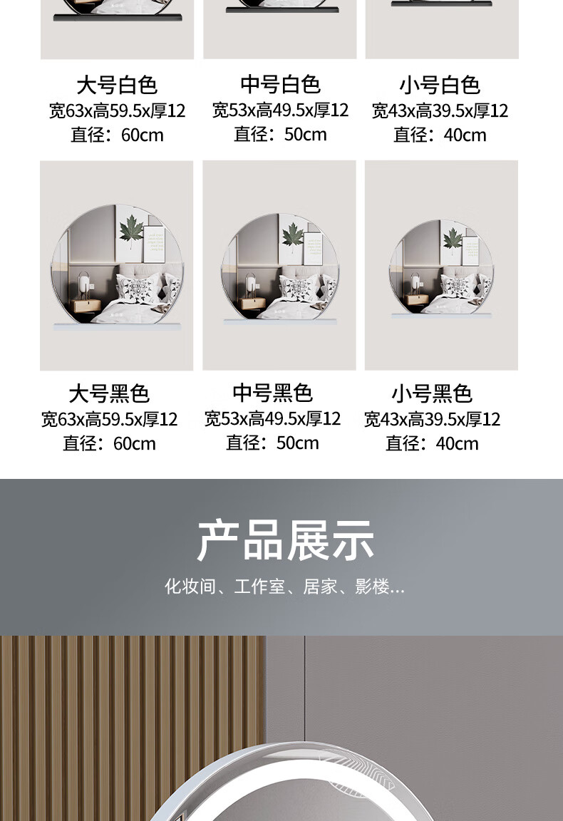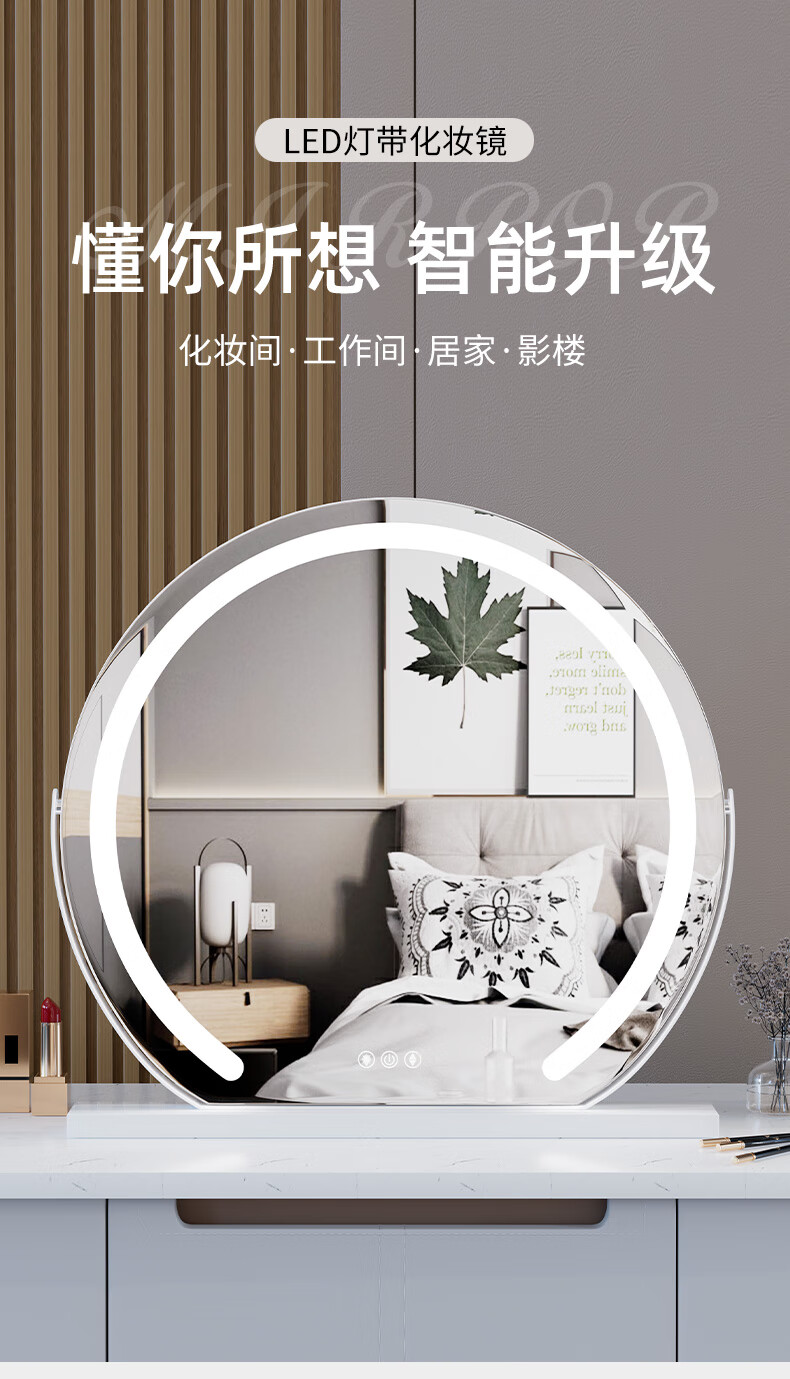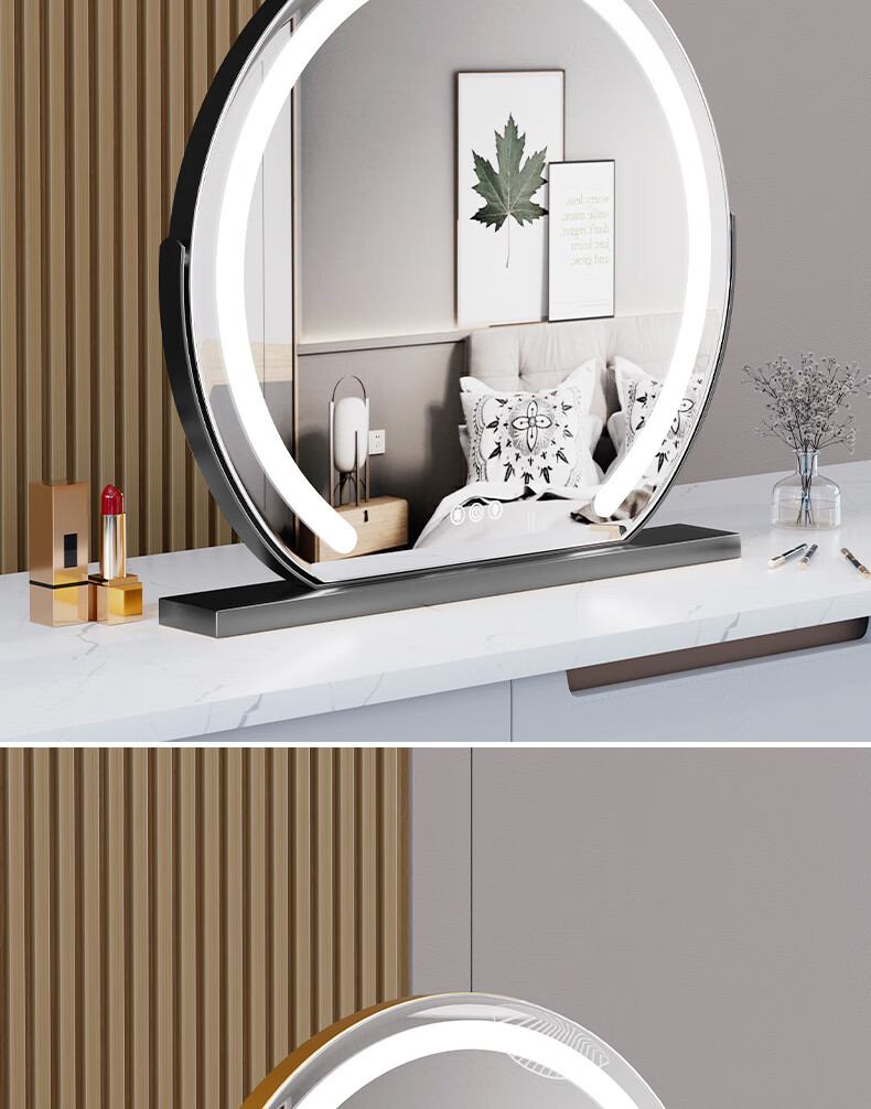 Shantou Lincun makeup mirror with light semi-circle lamp with desktop desktop rotatable fill-light smart vanity mirror touch control beauty mirror rotating semi-circle lamp with black 40cm rechargeable